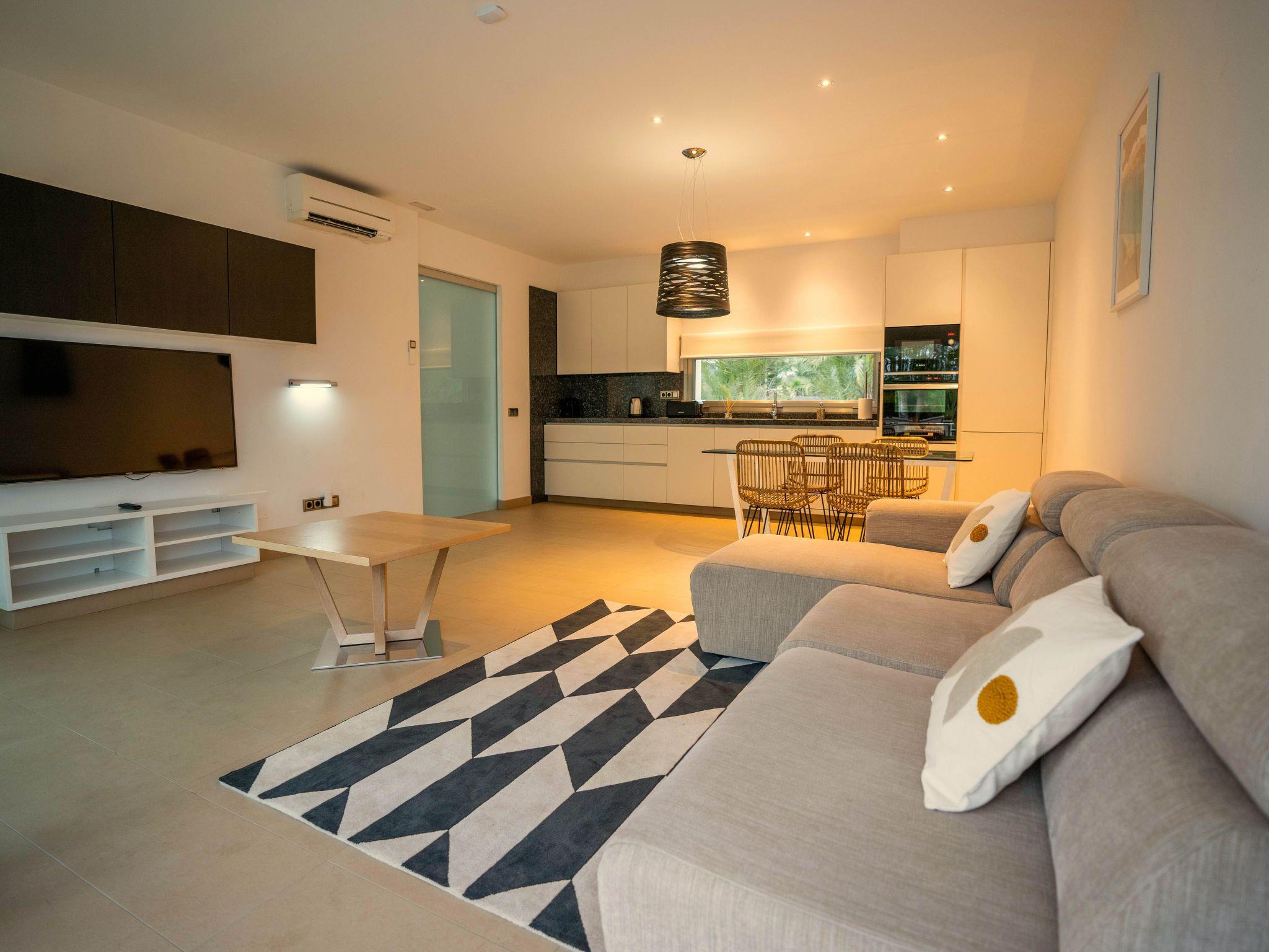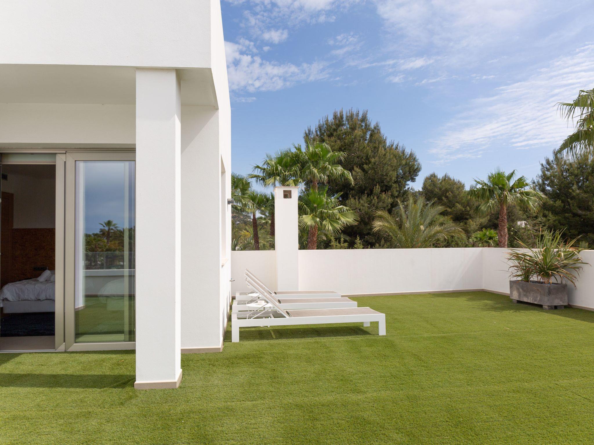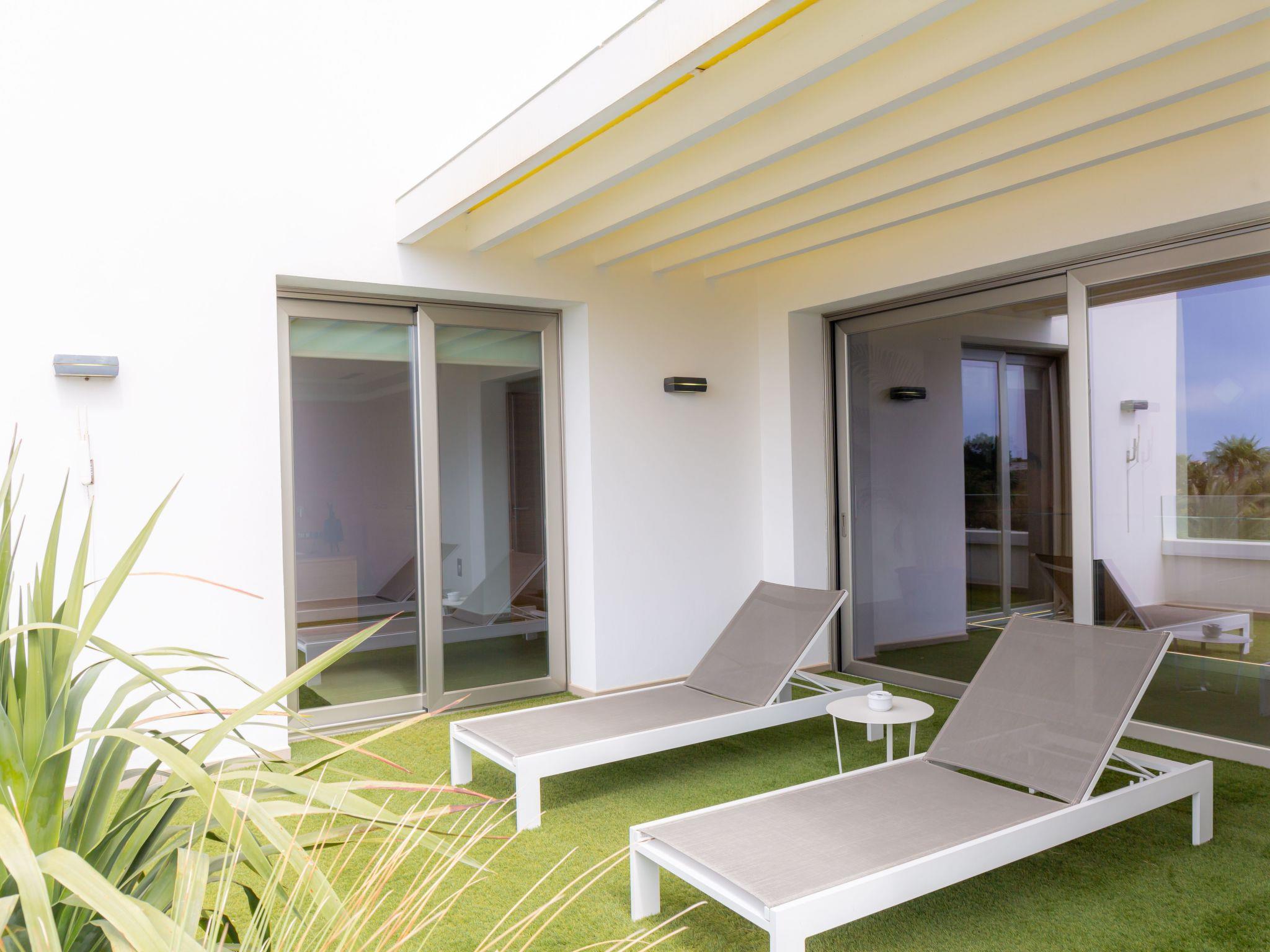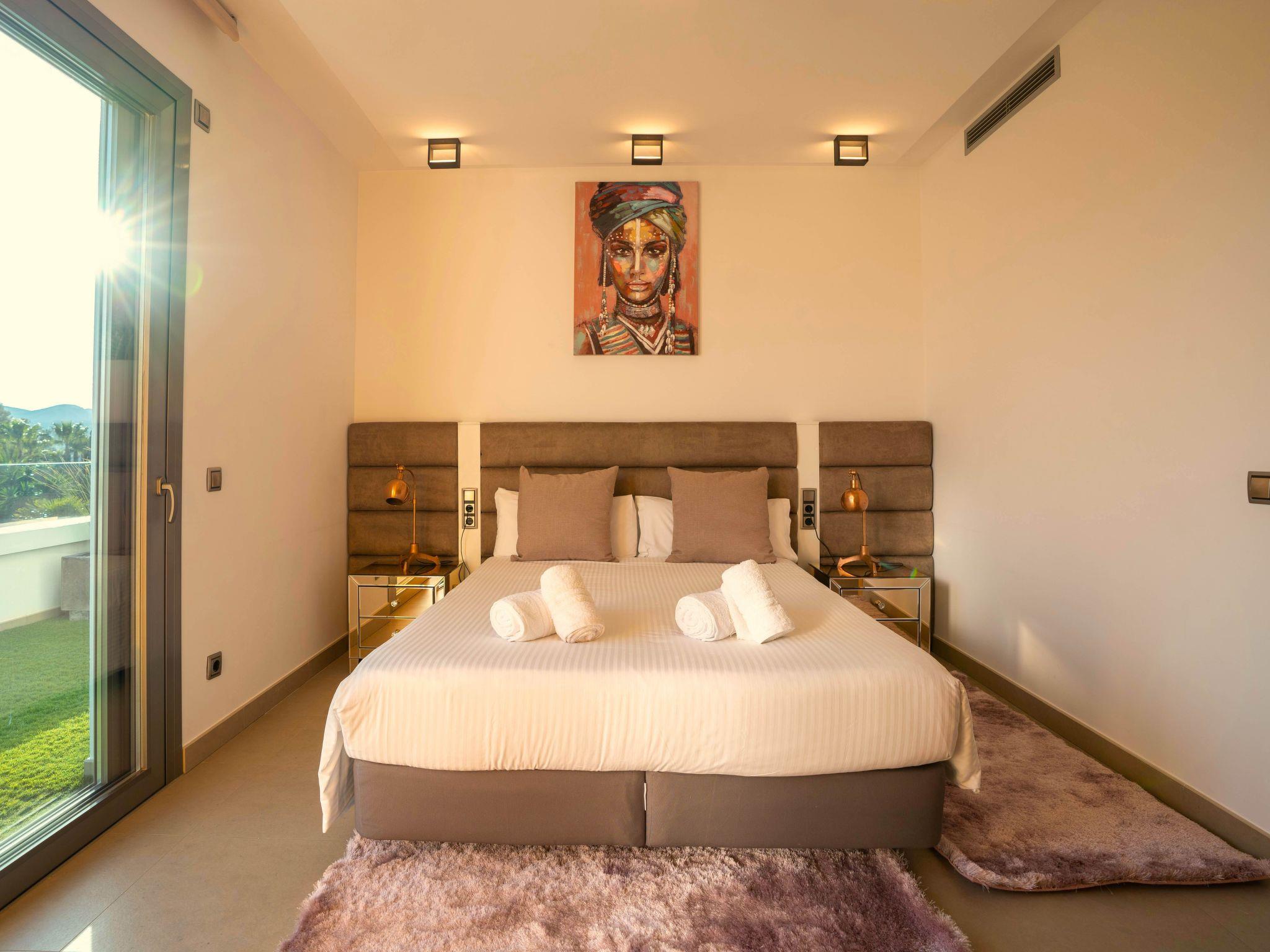 The exterior of the property is no less impressive, boasting a swimming pool for exclusive use surrounded by spacious terraces and a private garden that invites you to relax in the Ibiza sunshine. For those arriving in electric vehicles, a charging station is provided, highlighting the villa's commitment to comfort and sustainability. Enjoy a private roof terrace, the perfect place for moments of tranquillity and disconnection.