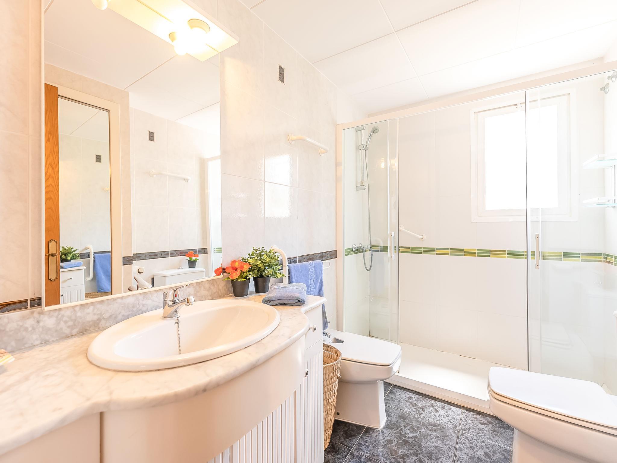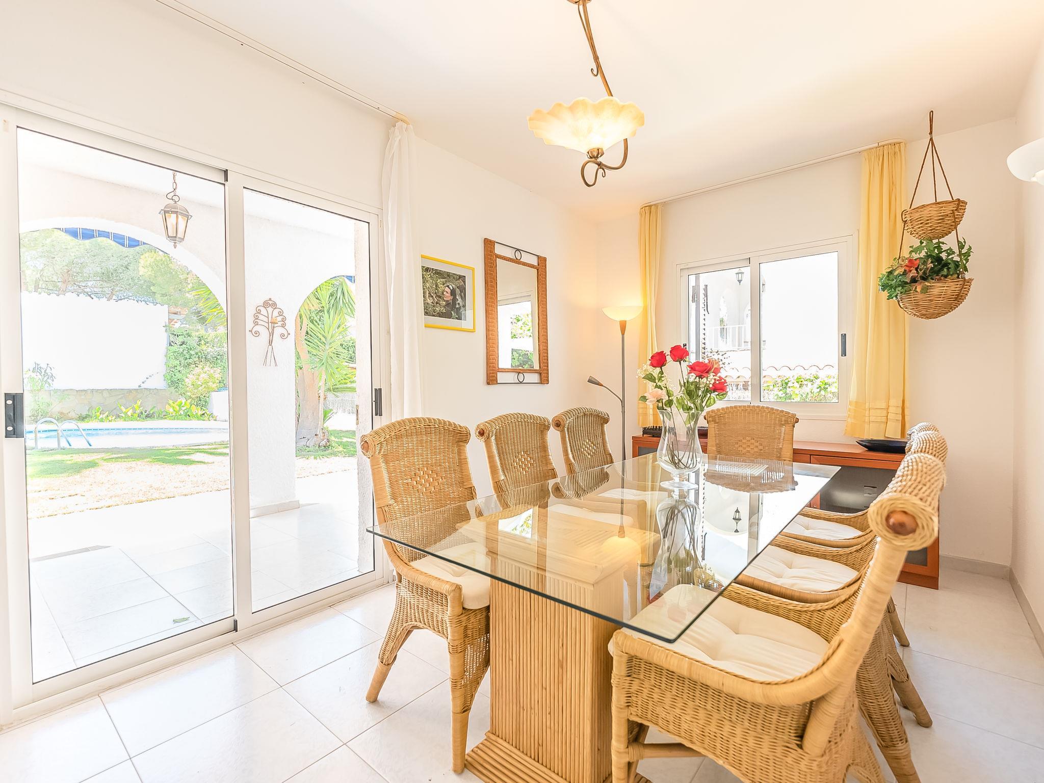 Comfortable single-family house "Santiago". In the district of Barrà 600 m from the centre of Roda de Barrà, 10 km from the centre of Torredembarra/Calafell, 25 km from the centre of Tarragona, on top of a hill, in the residential district, 800 m from the sea. Private: property 600 m2 (fenced), well-kept garden with lawn and trees, swimming pool kidney shaped (30 m2, seasonal availability: 01.Apr. - 30.Sep.). Pool house, terrace (25 m2), garden furniture, barbecue, pool maintenance by the owner/gardener. Public parking on the road. Supermarket 1 km, restaurant 100 m, bus stop "Sant Vicenc de Calders" 6 km, railway station "Sant vicenc de Calders" 6 km, sandy beach "Playa Llarga" 800 m. The owner does not accept any youth groups. Neighbourhood highly sensitive to noise. Quietness and good behaviour expected.