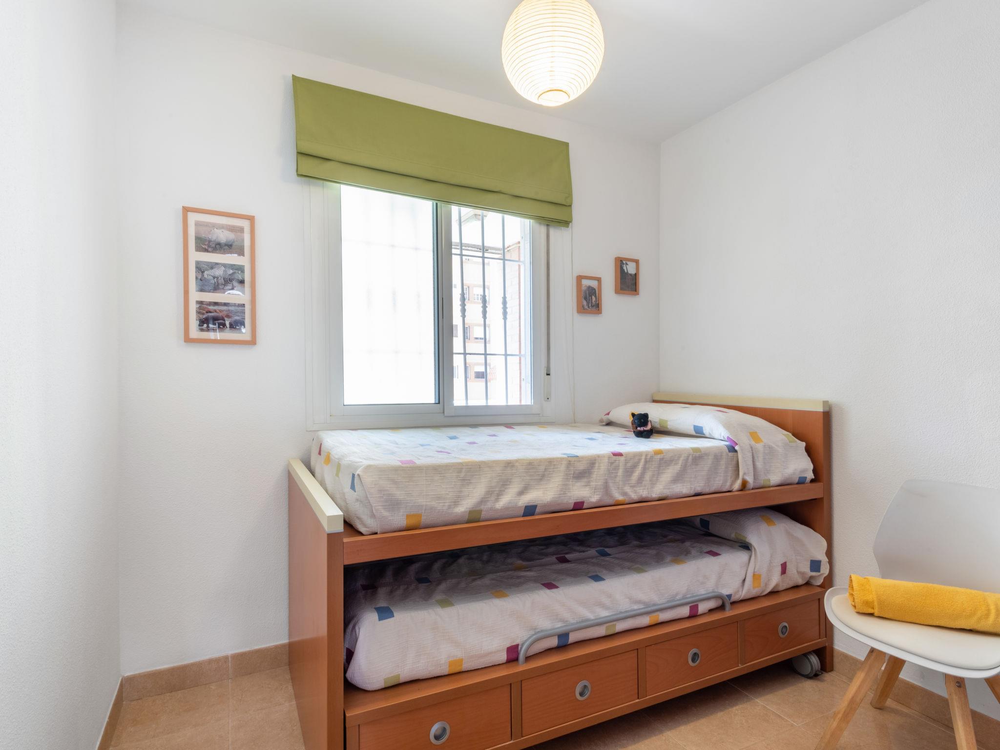 "Las Mariposas", 3-room apartment 60 m2 on 1st floor. Practical and comfortable furnishings: living/dining room with dining table, digital TV, flat screen, air conditioning and forced-air heating. Exit to the terrace. 1 room with 1 french bed (150 cm, length 190 cm), air conditioning and forced-air heating. 1 room with 2 beds (90 cm, length 190 cm), air conditioning and forced-air heating. Open kitchen (oven, dishwasher, 4 ceramic glass hob hotplates, microwave, freezer) with bar. Shower/bidet/WC. Large terrace 14 m2. Terrace furniture. View of the swimming pool. Facilities: washing machine, iron, hair dryer. Internet (WiFi, free). Parking (roofed) at the house. Please note: suitable for families. Non-smokers only. Maximum 1 pet/ dog allowed. VFT/AL/09026 // Reg. Nr.: ESFCTU0000040140008282700000000000000000VFT/AL/090262