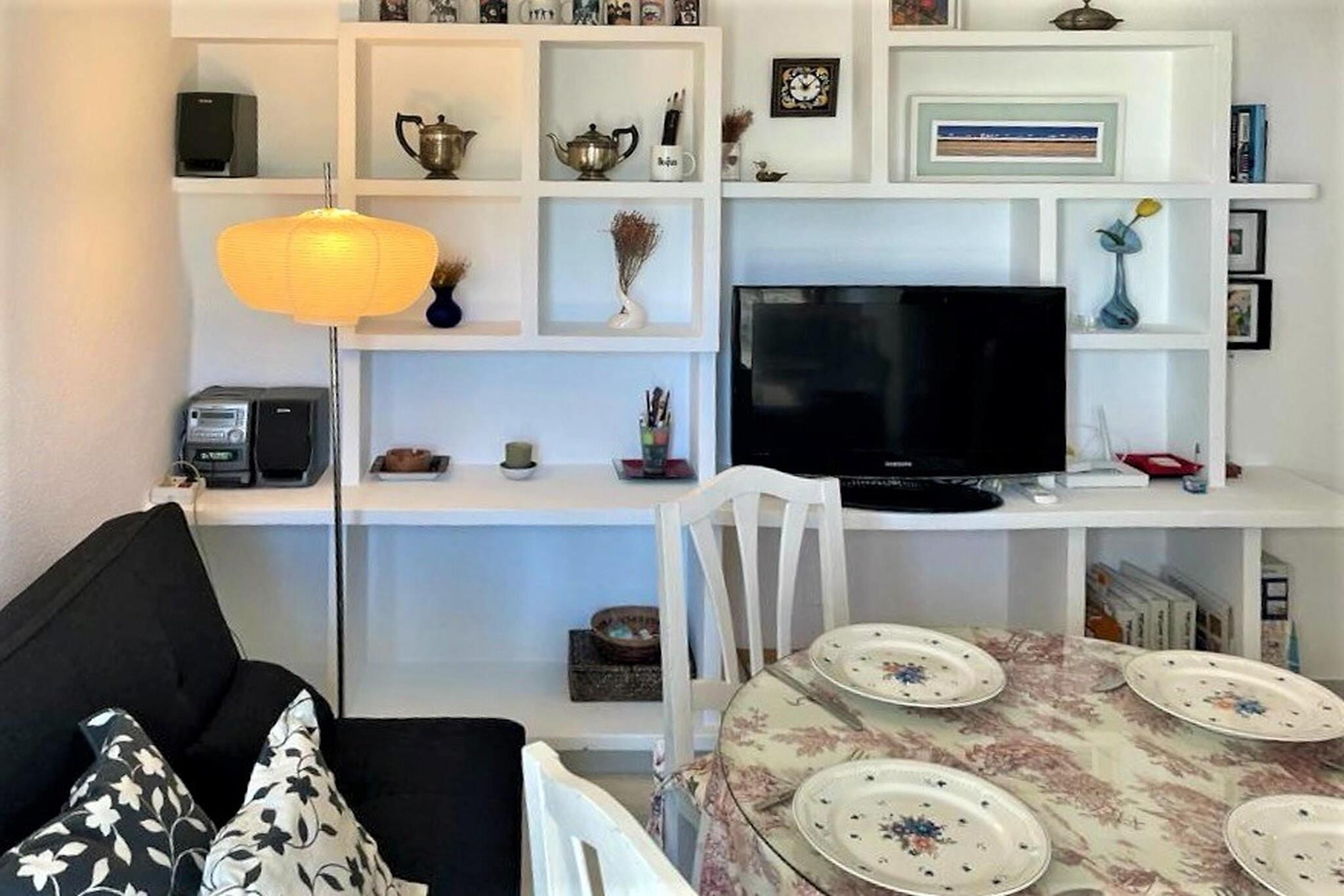 Stueetage: (Indgang (deles med andre gæster, adgang udefra)(elevator)) På 1. etage: (Indgang , Stue(dobbeltsovesofa(135 x 200 cm), Fjernsyn(fladskærm), spisebord, sofahjørne), åbent køkken(kogeplade, emhætte, kaffemaskine, ovn, mikrobølgeovn, køle-fryseskab, vaskemaskine), soveværelse(dobbeltseng(135 x 190 cm)), badeværelse(bruser, håndvask, toilet), balkon eller terrasse, klimaanlæg, terrasse(privat), luft til luft-varmepumpe) have(deles med andre gæster), havemøbler, parking lot(public), swimmingpool(deles med andre gæster, udendørs, opened from 1/2 Jun upto and including 1/2 Sep), strygebræt, strygejern