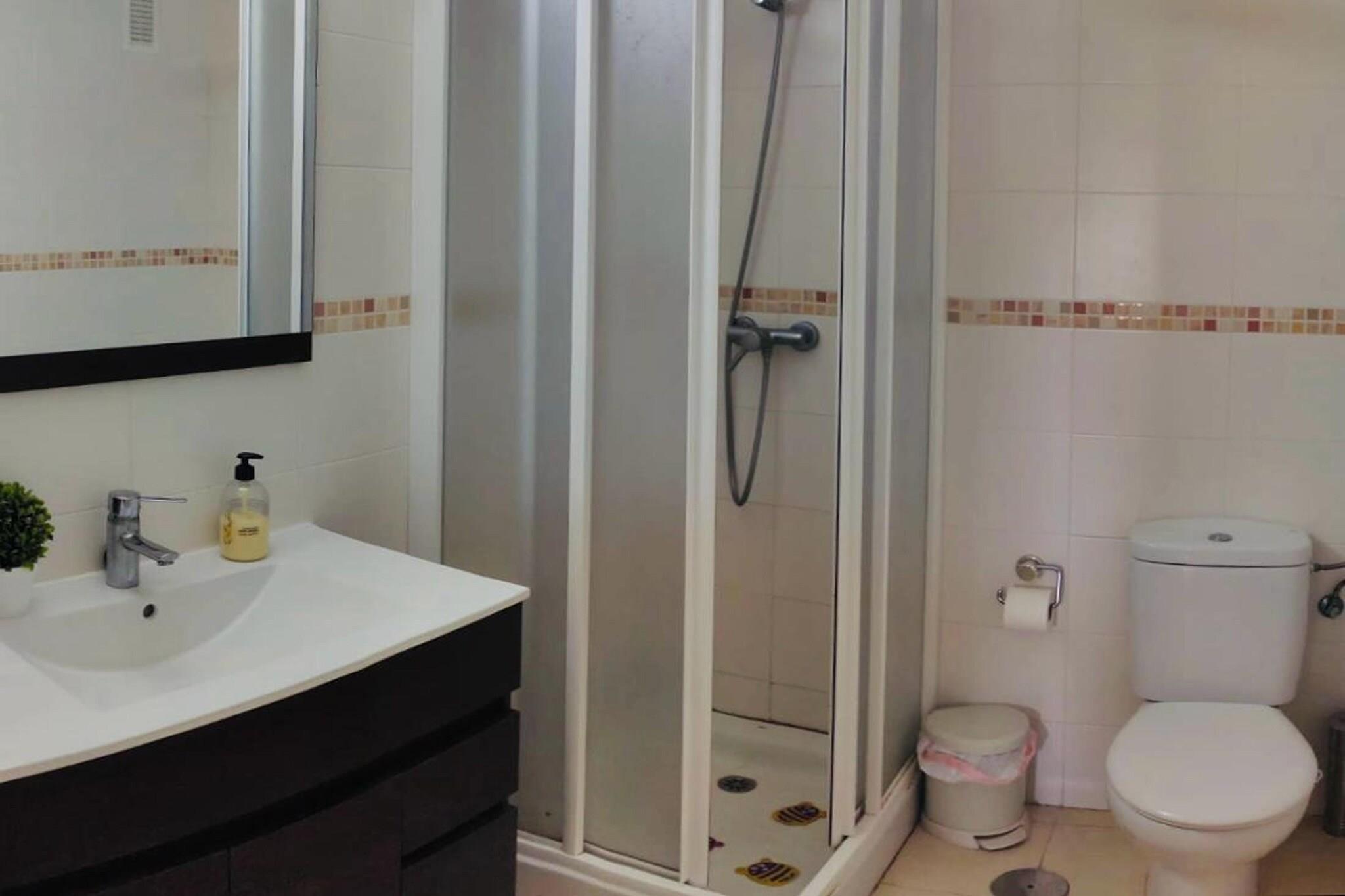Stueetage: (Indgang (deles med andre gæster, adgang udefra), elevator) På 2. etage: (Indgang , Køkken(kogeplade, elkedel, brødrister, emhætte, kaffemaskine, ovn, mikrobølgeovn, opvaskemaskine , køle-fryseskab, vaskemaskine), stue / spisestue(dobbeltsovesofa, Fjernsyn(fladskærm), spisebord, sofahjørne, balkon eller terrasse), soveværelse(enkeltseng, enkeltseng), soveværelse(dobbeltseng), Soveværelse med badeværelse(dobbeltseng, badekar med bruser, håndvask, toilet), badeværelse(bruser, håndvask, toilet), klimaanlæg, ) garage(fælles indgang), have(deles med andre gæster, oplyst), swimmingpool(deles med andre gæster, udendørs, herunder en del for børn (maks. dybde 50 cm), opened from Jul upto and including Sep), swimmingpool(deles med andre gæster, udendørs, opvarmes, herunder en del for børn (maks. dybde 50 cm), opened from Jun upto and including Sep)