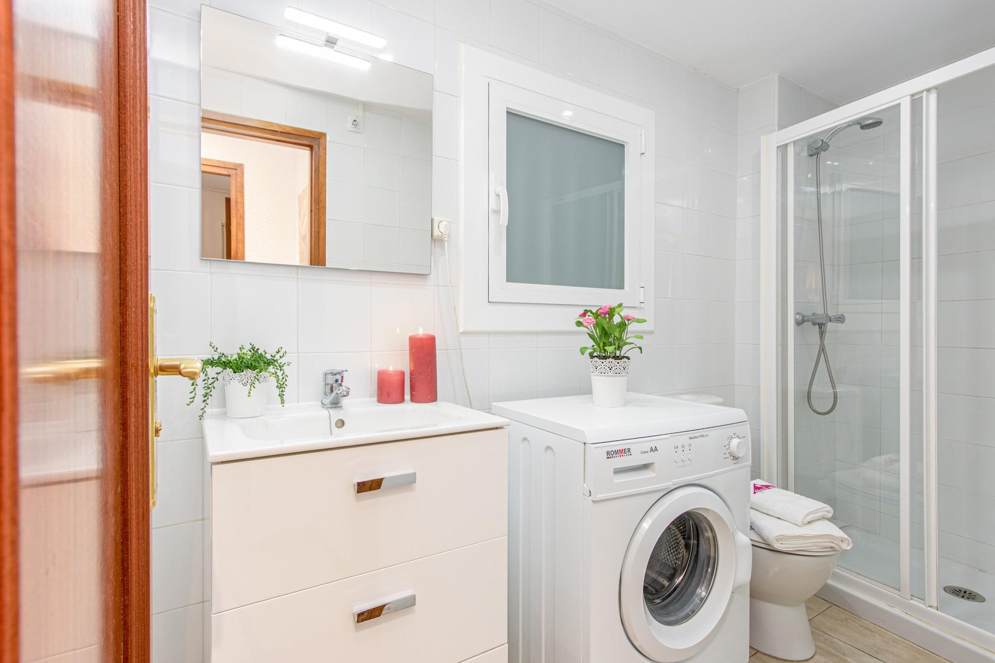 Denne moderne lejlighed har komfortabel plads til op til fire gæster. Den har et soveværelse med to enkeltsenge og en dobbelt sovesofa i opholdsstuen. Stuen er udstyret med en sofa og et tv, hvilket giver et hyggeligt sted at afslapning. En balkon tilbyder et behageligt sted at nyde naturen. Lejligheden har aircondition i stuen og inkluderer Wi-Fi-adgang. Overdækket parkering er tilgængelig i nærheden, hvilket sikrer gæsternes bekvemmelighed. Bemærk venligst, at kæledyr ikke er tilladt, og ungdomsgrupper accepteres ikke. Valgfrie tjenester såsom slutrengøring, sengelinned og håndklæder er tilgængelige mod et ekstra gebyr. Lejligheden ligger kun 50 meter fra Nova Sandy Beach og tilbyder nem adgang til havet. Der ligger et supermarked 500 meter væk, hvilket giver bekvemmelighed for indkøb. Bymidten ligger inden for gåafstand og tilbyder et udvalg af butikker og restauranter. For dem, der er interesserede i kulturelle og historiske steder, er de nærliggende Ciutadella de Roses og Castell de la Trinitat bemærkelsesværdige attraktioner. Lejligheden ligger cirka 30 km fra Figueres AVE/TGV-togstationen og 70 km fra Girona Lufthavn, hvilket gør den tilgængelig for rejsende. Lejligheden har et åbent køkken udstyret med moderne apparater, herunder køleskab, mikrobølgeovn, ovn, fryser og opvaskemaskine. Der er nødvendigt køkkenudstyr såsom tallerkener, bestik og køkkenredskaber samt kaffemaskine og brødrister for ekstra bekvemmelighed. Badeværelset har bruser, og yderligere faciliteter omfatter vaskemaskine og strygejern. Lejligheden ligger på tredje sal og er tilgængelig via elevator, hvilket sikrer nem adgang.
