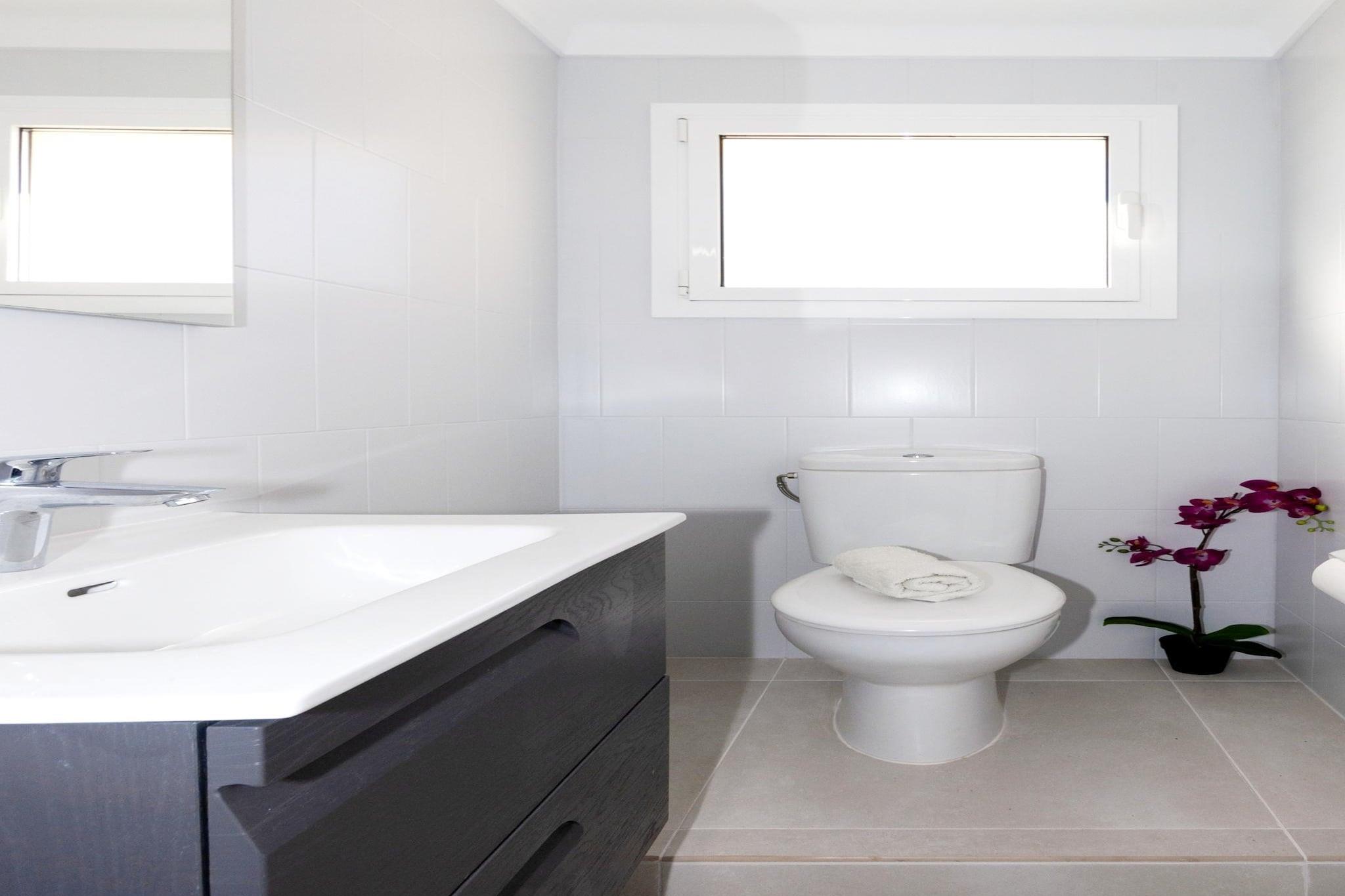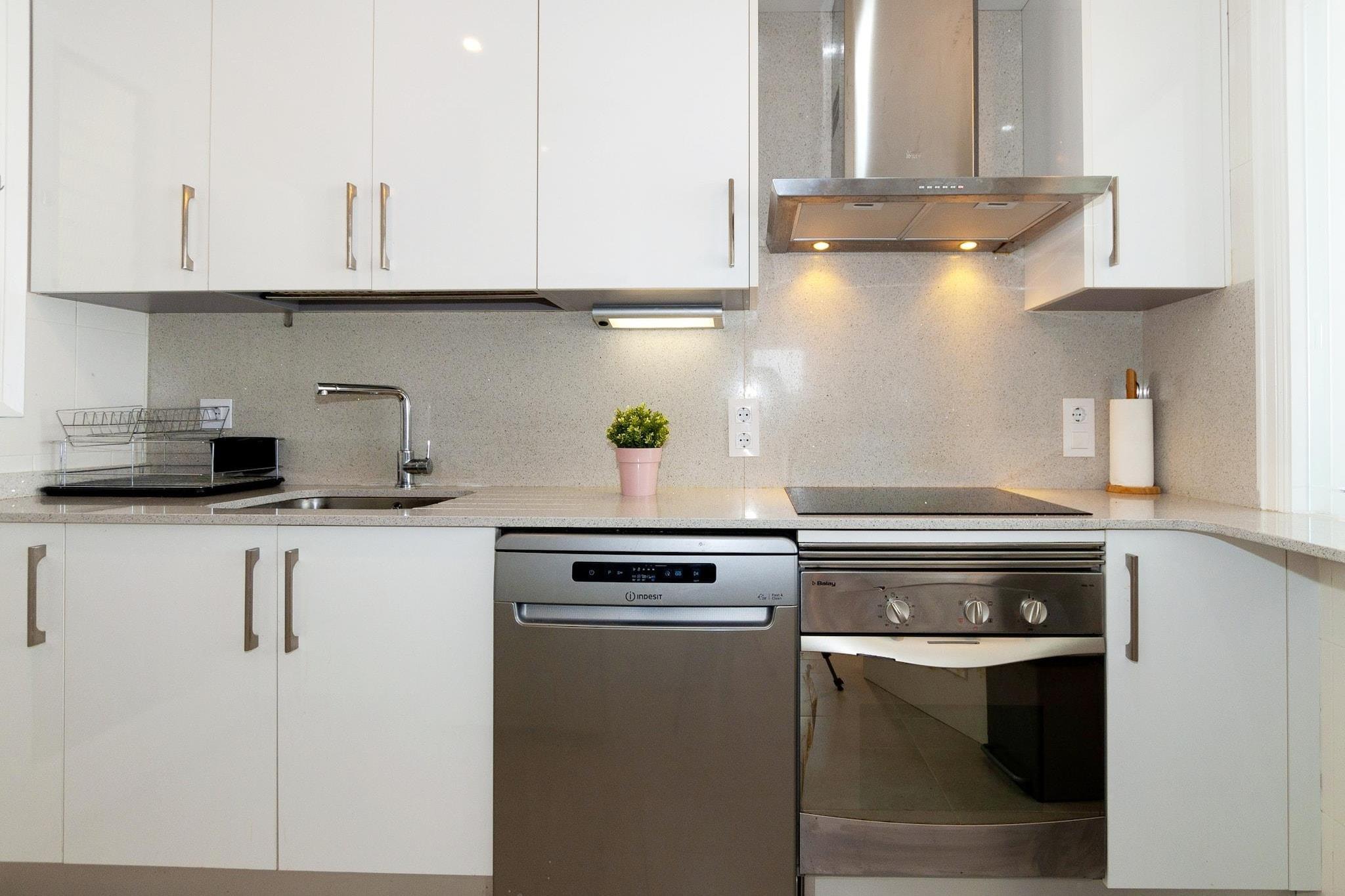 Velkommen til denne smukke og lyse lejlighed på 80 m² i Roses, med en fantastisk havudsigt og med plads til op til 5 gæster. Beliggende kun 300 meter fra den charmerende by Canyelles, er denne bolig perfekt for dem, der søger en blanding af afslapning og udforskning. Du finder sandstranden Canyelles kun 500 meter væk, såvel som busstationen Estarriol - Canyelles og den berømte Restaurante El Berganti, perfekt til at prøve det lokale køkken. Yderligere faciliteter inden for rækkevidde omfatter et supermarked (700 meter), den pulserende by Roses (3 km) og den betagende Parc Natural Cap de Creus (3 km). For familiehygge ligger vandlandet Aqua Brava kun 6 km i bil. Golfentusiaster vil nyde nærheden til Golf Perelada, som ligger 20 km derfra, mens togstationen AVE-TGV Figueres også ligger 20 km fra lejligheden. Girona Lufthavn ligger 65 km derfra, og Barcelona Lufthavn ligger 165 km derfra. Beliggende i et boligområde ved havet giver denne beliggenhed et roligt tilflugtssted med nem adgang til attraktioner. Lejligheden har en 11 m² stor terrasse, perfekt til at nyde havbrisen og en fantastisk udsigt. Faciliteterne inkluderer en vaskemaskine, grill, strygejern og internetadgang (WiFi). Det tilbyder også opvarmning via en varmepumpe, aircondition i stuen for at sikre et behageligt ophold, og udendørs parkering tilgængelig i samme bygning. Til underholdning er der to fjernsyn at nyde. Det separate køkken er udstyret med moderne bekvemmeligheder, herunder en keramisk kogeplade, køleskab, mikroovn, ovn, opvaskemaskine og alle nødvendige køkkenredskaber, såsom porcelæn, bestik og en kaffemaskine. Oplev komforten og skønheden i denne dejlige lejlighed i Roses til din næste ferie!