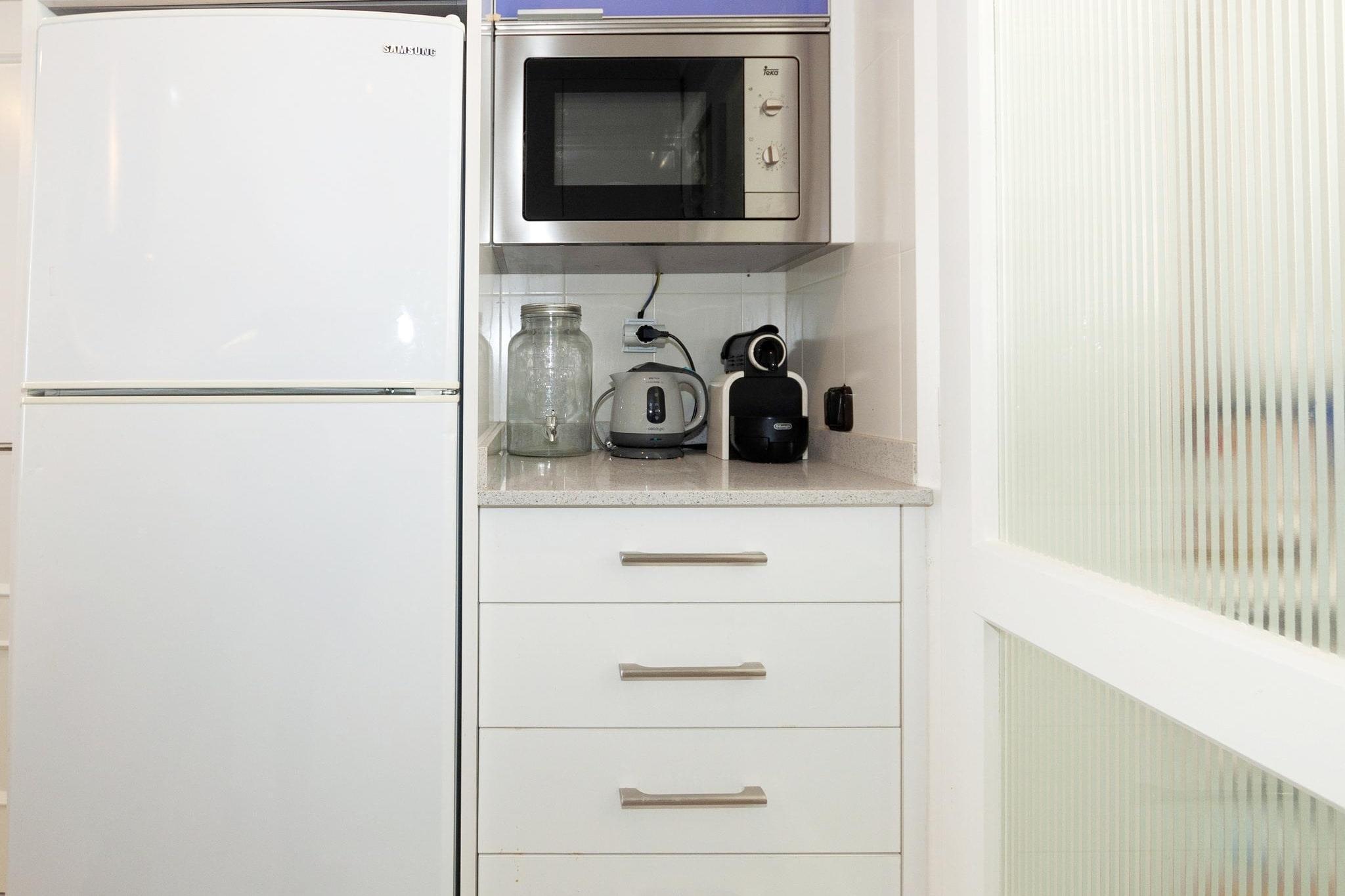 På 3. etage: (åbent køkken(kogeplade(glaskeramisk), kaffemaskine, ovn, mikrobølgeovn, opvaskemaskine , køleskab, ), stue / spisestue(Fjernsyn, spisebord, sofahjørne), soveværelse(enkeltseng, enkeltseng, enkeltseng), soveværelse(enkeltseng, enkeltseng), badeværelse(bruser), toilet(toilet), Internetadgang) Fjernsyn, vaskemaskine, klimaanlæg, terrasse, grill, parkering, strygejern, luft til luft-varmepumpe