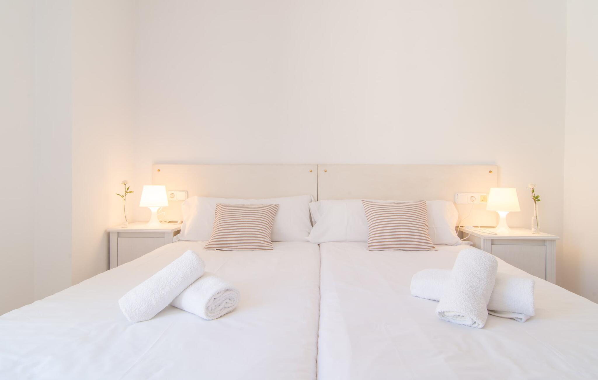 Roser de Artà ligger i hjertet af den maleriske by Artà og er et dejligt rækkehus, der tilbyder den perfekte blanding af komfort og charme. Selvom Artà er en af Mallorcas smukkeste byer, byder denne ejendom på adskillige muligheder for at slappe af, lige fra den hyggelige terrasse ved siden af køkkenet til den fantastiske tagterrasse med en betagende udsigt over byen og de omkringliggende bjerge. Se solnedgangen over Serres de Llevants tinder, mens byen er badet i gyldent lys. Børn skal være under opsyn på tagterrassen. I kan parkere jeres bil få meter fra huset på en af de afmærkede pladser langs gaden. Interiøret er lyst og indbydende og byder på en stille stue med komfortable sofaer og et fladskærms-tv med internationale kanaler. Spiseområdet har komfortabel plads til fire, og det fuldt udstyrede køkken med en lille spiseplads til to har alt hvad I behøver til et hjemmelavet måltid. Et soloplyst badeværelse fuldender første sal. Ovenpå deler to soveværelser med dobbeltsenge og et enkelt soveværelse et andet badeværelse. Denne villa tilbyder en sand flugt for alle, der ønsker at nyde en autentisk mallorcansk ferie. jeres feriehus "Roser de Arta" er beliggende i den smukke by Artà og er kun få minutters gang fra de mange smukke caféer og restauranter, butikker og gallerier, der giver dette sted sin særlige charme. Et stort ugentligt marked finder sted her hver tirsdag jeres rækkehus kan nemt nås til fods eller i bil. De ligger 15 til 20 minutter væk og er det perfekte sted at slappe af.