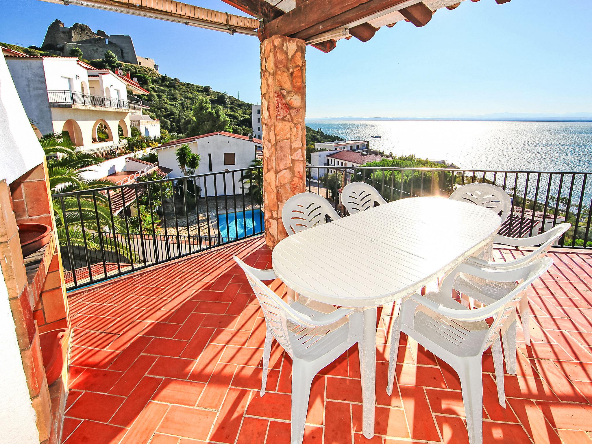 House "Joan Sarda", 3 storeys. In the district of Els Balins 1.5 km from the centre of Roses, in a quiet, sunny position on a slope, traffic calmed area, 300 m from the sea. Private: swimming pool (5 x 6 m, depth 120 cm, seasonal availability: 01.Jun. - 30.Sep.). Terrace, garden furniture. In the house: WiFi, washing machine. Stepped path to the house. Parking (for 2 cars). Grocery 400 m, supermarket 1 km, restaurant 1 km, bar 1 km, café 500 m, bus stop "Moventis estació bus" 2.6 km, railway station "Figueres Renfe Adif" 21 km, sandy beach "Palangres", swimming bay 300 m. Sports harbour 1 km, golf course (12 hole) 15 km, tennis 4 km, minigolf 4 km. Nearby attractions: Parque Acuático Aquabrava Roses 4 km, Túnel del viento y Skydive Empuriabrava 6 km, Cadaqués 16 km, Castillo y festival de Peralada 23 km, Museo Dalí Figueres 21 km, Monasterio de Sant Pere de Rodes 23 km. Please note: car recommended. Groups of teenagers on request only. The keys‘ handover takes place by the agency Interhome in Roses.