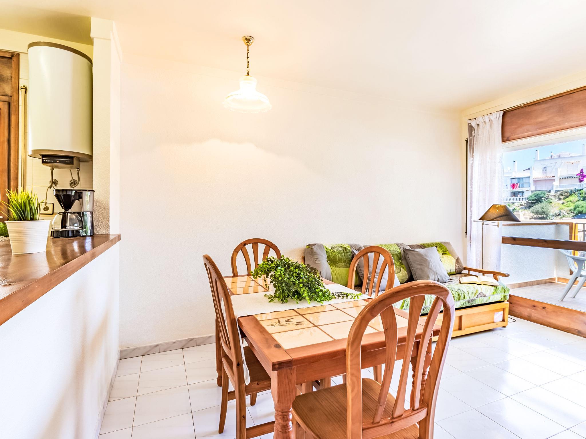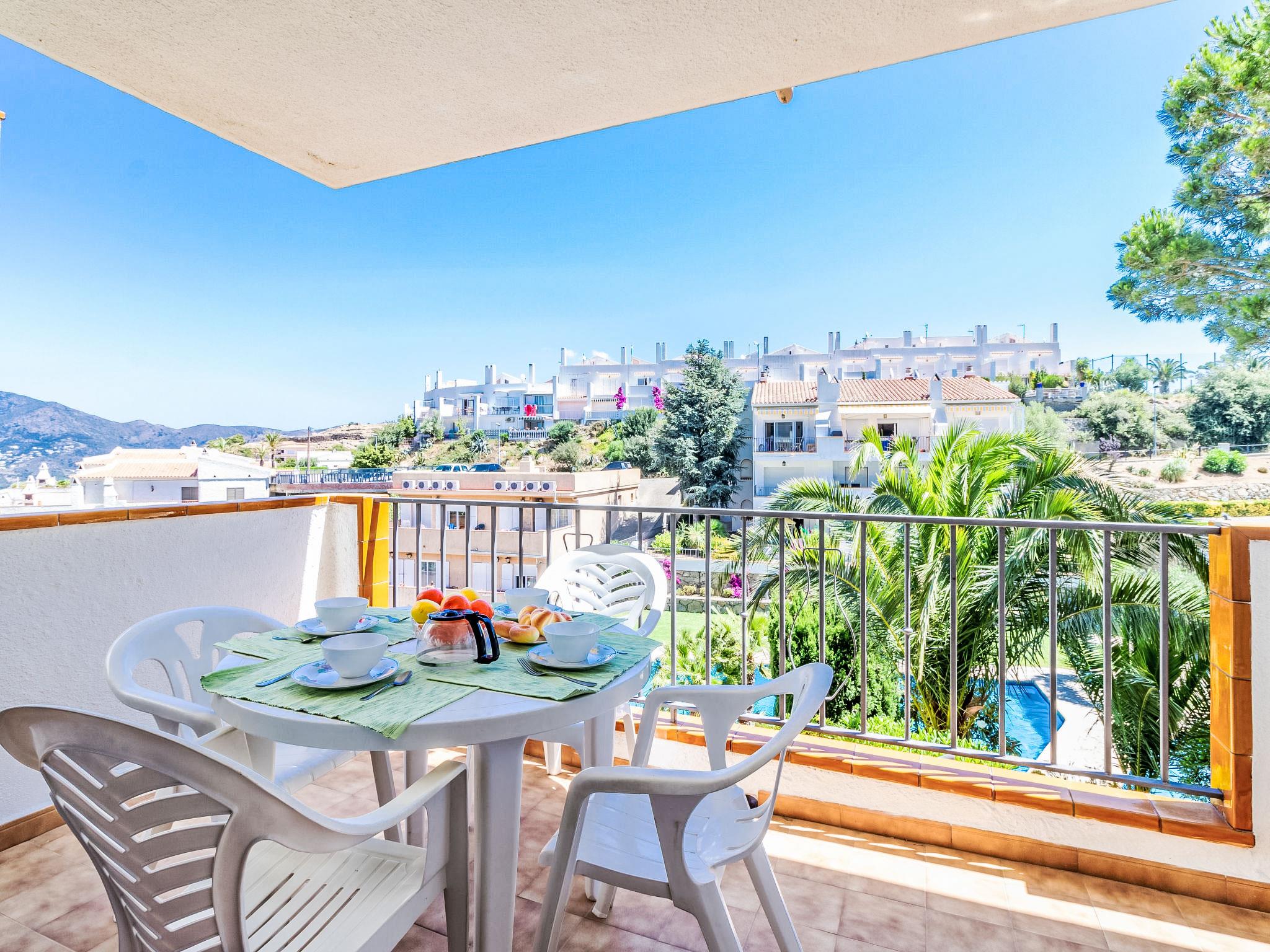 Puigrom: Residence "Els Jardins III". In the district of Puigrom 3 km from the centre of Roses, in a quiet, sunny position on top of a hill, residential area (villas), traffic calmed area, 2 km from the sea. For shared use: garden plants and trees, swimming pool angular (14 x 7 m, seasonal availability: 01.Jun. - 30.Aug.). Children's pool. Supermarket 2.5 km, restaurant 3 km, bus stop 2.5 km, railway station "Figueres" 15 km, sandy beach "Canyelles Petites" 2 km, indoor swimming pool 4 km. Sports harbour 2 km, golf course (18 hole) 23 km, surf school 2.5 km, sailing school 2.5 km, tennis 4 km, sports centre 3.5 km. Nearby attractions: Skydive y túnel del viento Empuriabrava 10 km, Parque Acuático Aquabrava Roses 5 km, Museo Dalí Figueres 24 km, Castillo y casino de Perelada 24 km, Monasterio de Sant Pere de Rodes 23 km, Cadaqués 17 km. Please note: car recommended. The keys‘ handover takes place by the agency -------- in Roses.
