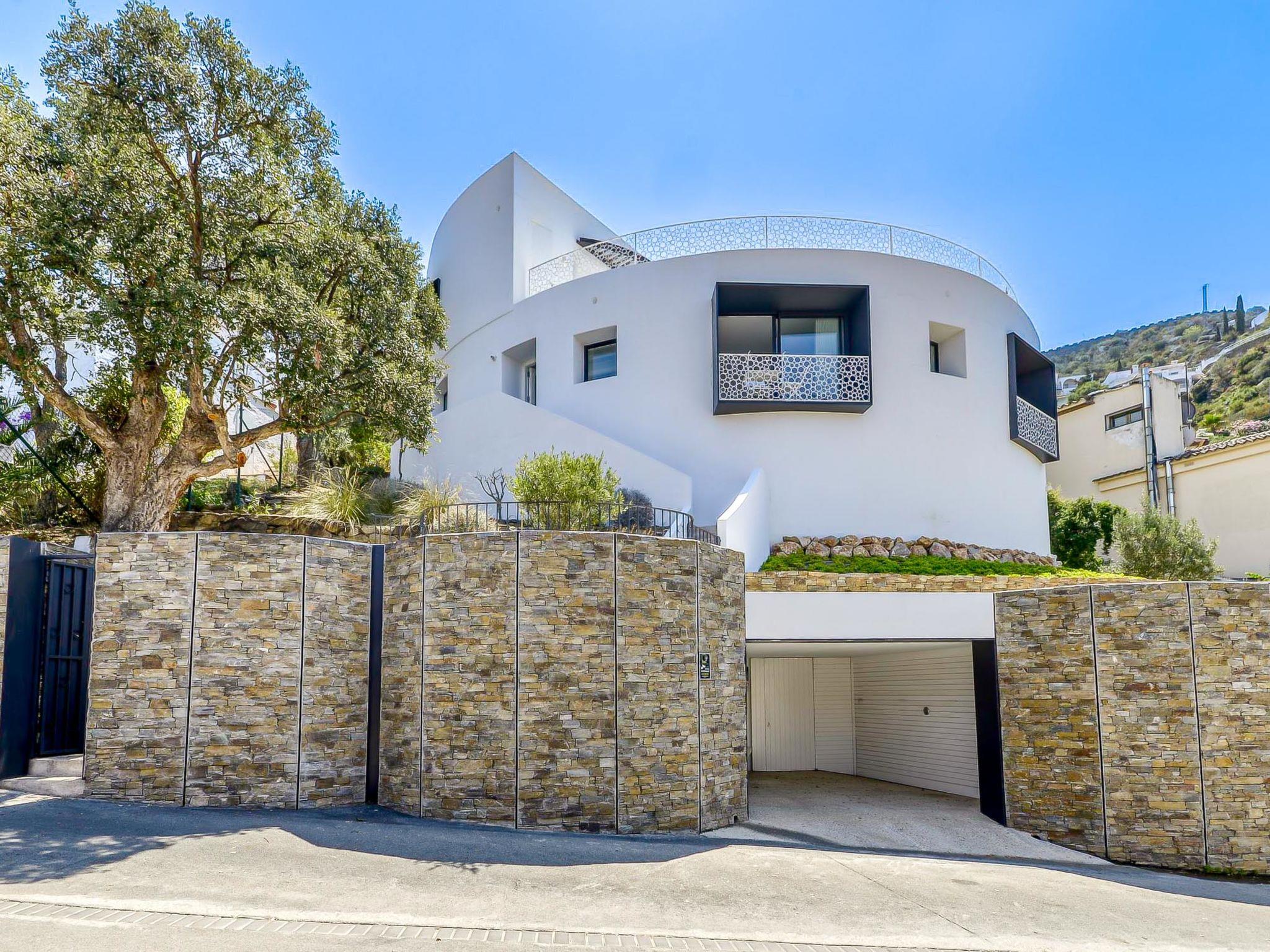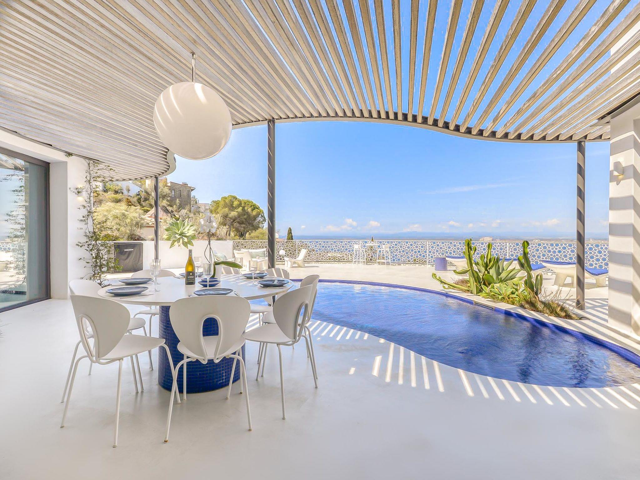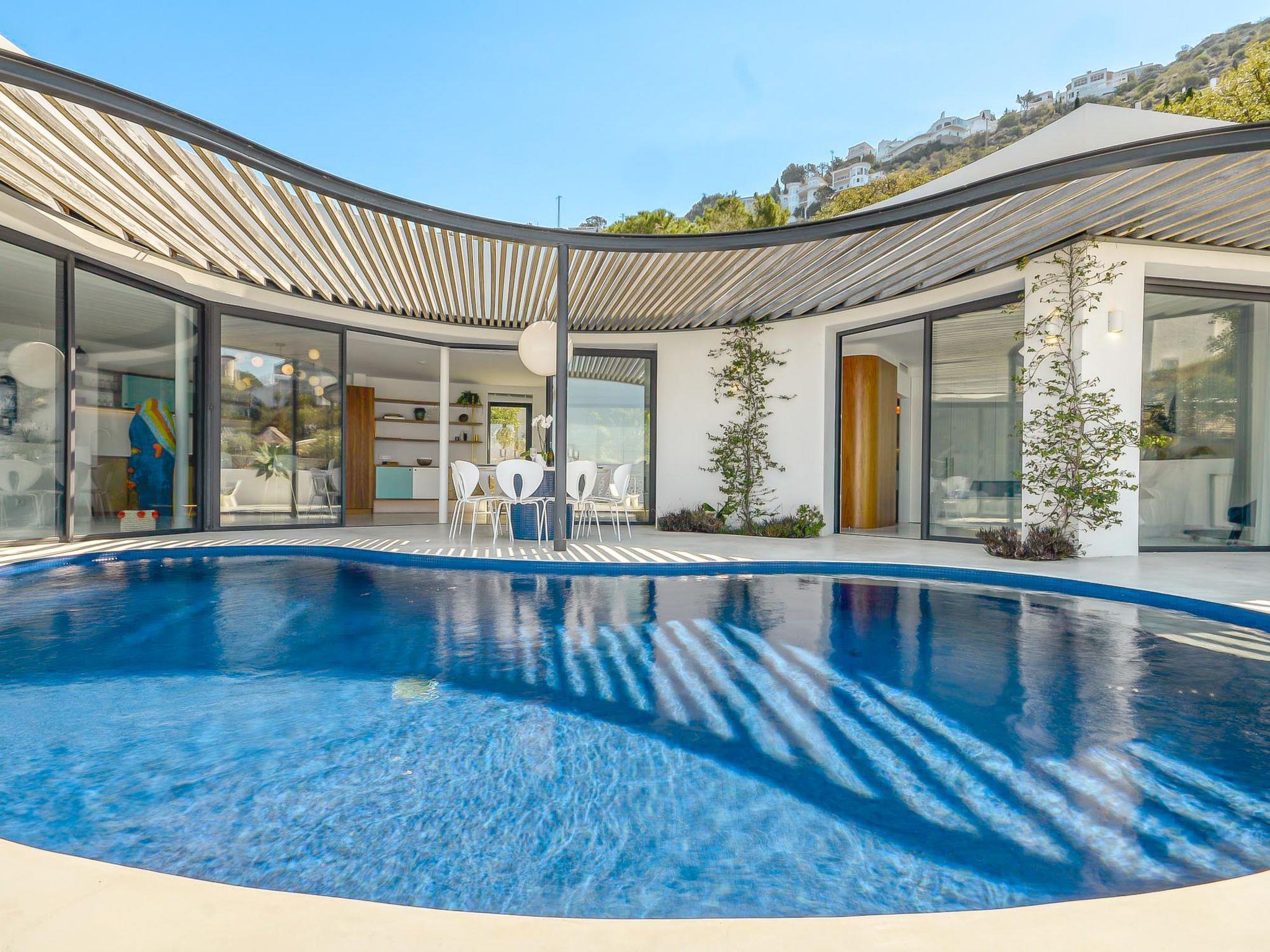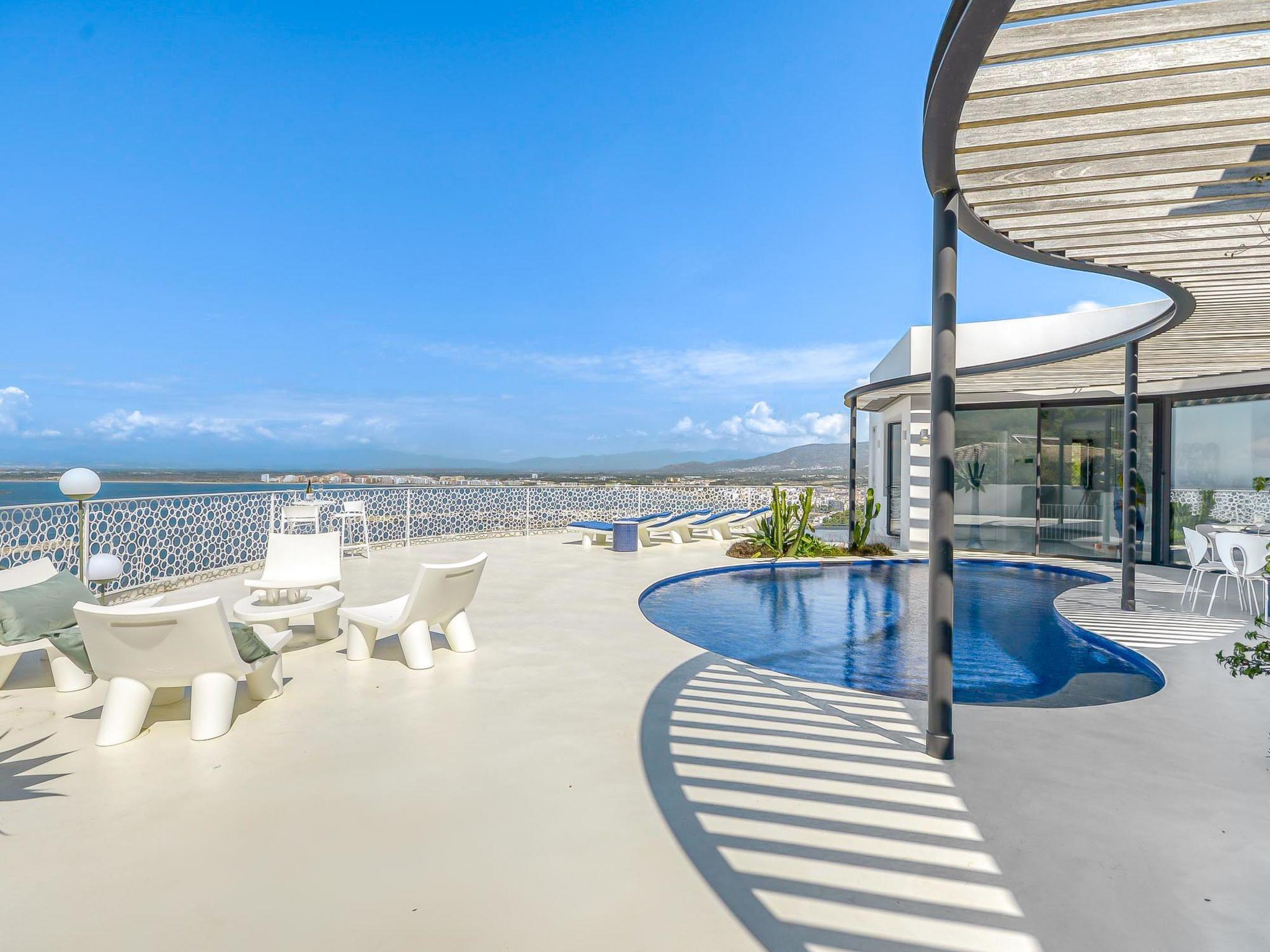 Modern, comfortable, luxurious villa "Donut", 2 storeys, built in 2018. 900 m from the centre of Roses, in a quiet, sunny position on top of a hill, residential area (villas), 400 m from the sea, 400 m from the beach, south-west facing position. Private: swimming pool heated (8 x 4 m, depth 100 - 200 cm, seasonal availability: 15.May. - 30.Oct.) with internal staircase. Unconventional pool shape. WC in the pool area, terrace, garden furniture. In the house: lift, central heating system, air conditioning, laundry. Parking, single garage. Supermarket, restaurant, bar 500 m, bakery 700 m, 5 minute walk to the centre, bus stop "Moventis estació bus" 2.4 km, railway station "Figueres Renfe Adif" 22 km, sandy beach "Cala de Canyelles Petites" 2.2 km, shingle beach "Cala Montjoi" 5 km, rocky beach "Cap de Creus" 10 km, diving center 900 m. Sports harbour 800 m, marina, golf course (15 hole) 14 km, surf school 900 m, sailing school 900 km, indoor tennis centre 2 km, minigolf 2 km, sports centre 2 km, walking paths from the house, cycle lane 400 m. Nearby attractions: Aqua Park 9 km, Casino y Festival de Perelada 15 km, Campo de Golf Perelada 15 km, Ruinas de Empuries 25 km, Museo Dali Figueres 20 km, Cadaqués/ Cap de Creus 25 km. The owner does not accept any groups. The owner does not accept any youth groups. The keys‘ handover takes place by the agency Interhome in Roses.