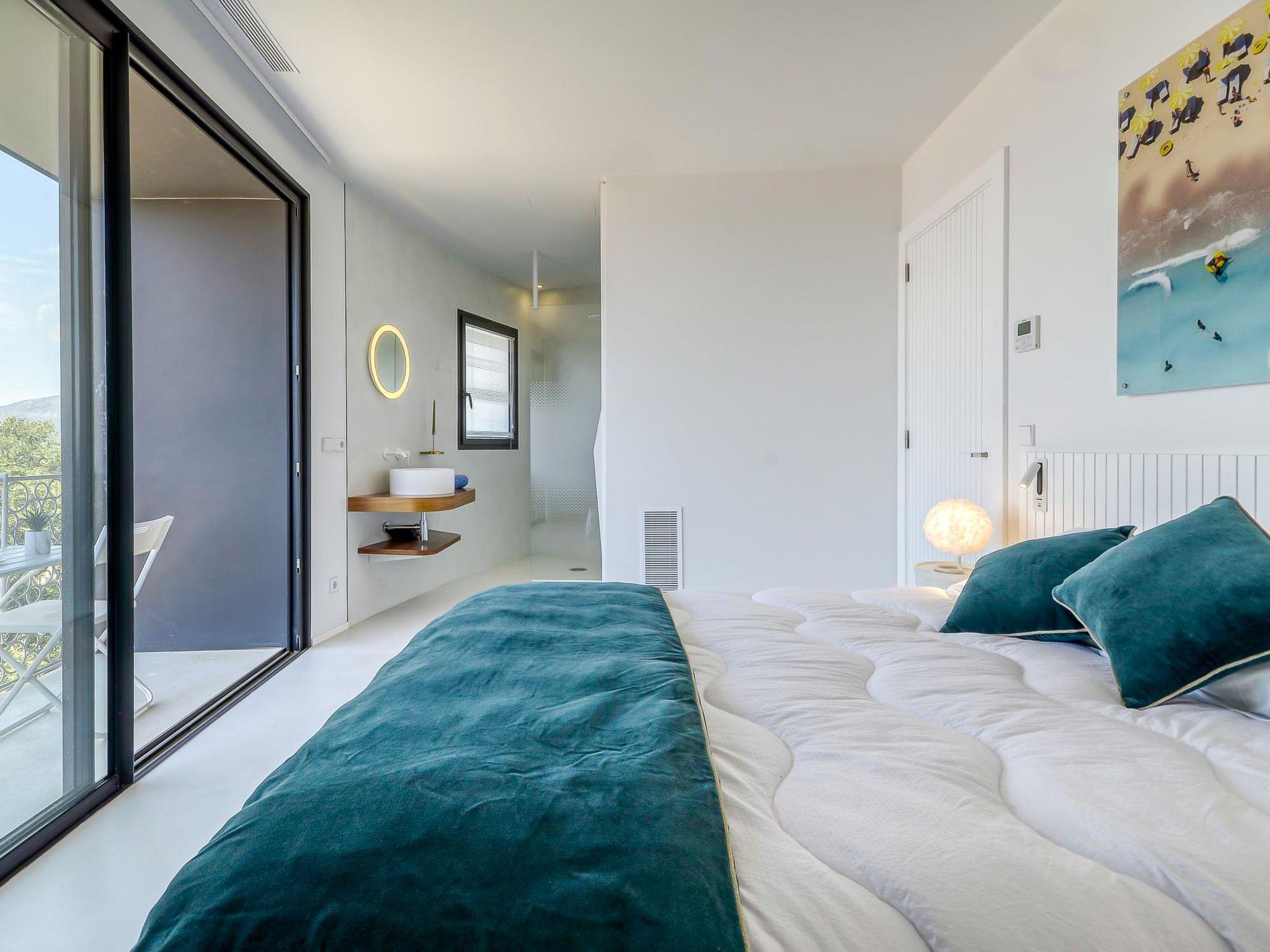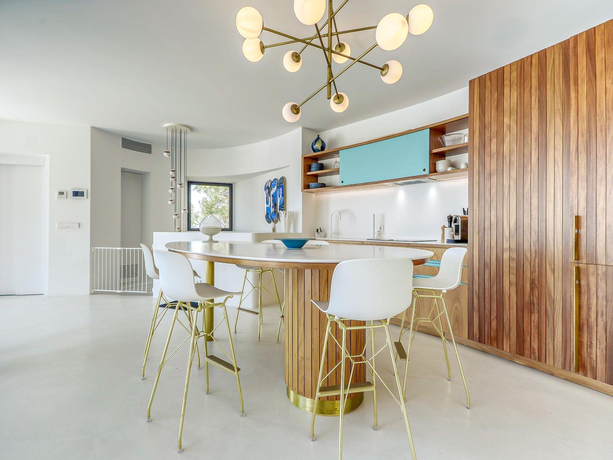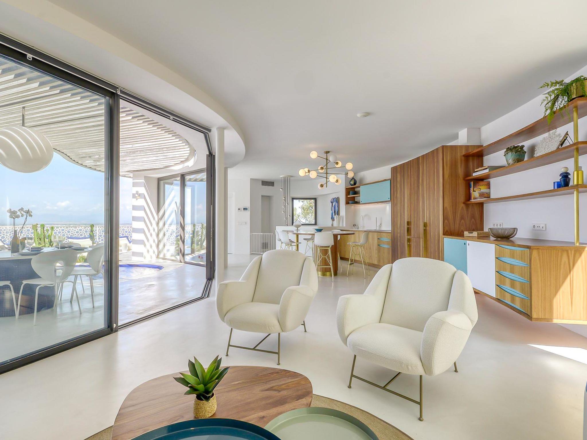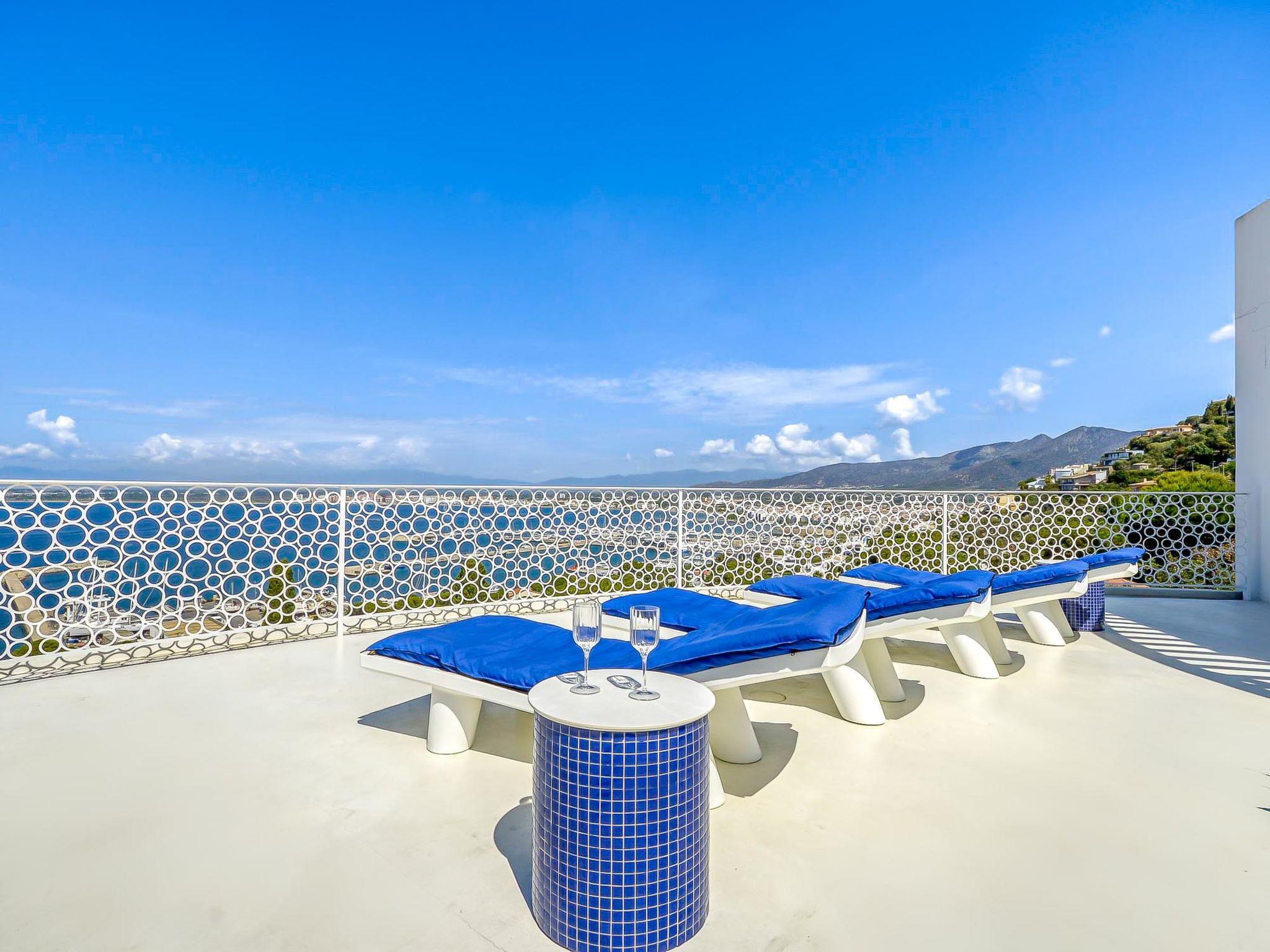 Modern, comfortable, luxurious villa "Donut", 2 storeys, built in 2018. 900 m from the centre of Roses, in a quiet, sunny position on top of a hill, residential area (villas), 400 m from the sea, 400 m from the beach, south-west facing position. Private: swimming pool heated (8 x 4 m, depth 100 - 200 cm, seasonal availability: 15.May. - 30.Oct.) with internal staircase. Unconventional pool shape. WC in the pool area, terrace, garden furniture. In the house: lift, central heating system, air conditioning, laundry. Parking, single garage. Supermarket, restaurant, bar 500 m, bakery 700 m, 5 minute walk to the centre, bus stop "Moventis estació bus" 2.4 km, railway station "Figueres Renfe Adif" 22 km, sandy beach "Cala de Canyelles Petites" 2.2 km, shingle beach "Cala Montjoi" 5 km, rocky beach "Cap de Creus" 10 km, diving center 900 m. Sports harbour 800 m, marina, golf course (15 hole) 14 km, surf school 900 m, sailing school 900 km, indoor tennis centre 2 km, minigolf 2 km, sports centre 2 km, walking paths from the house, cycle lane 400 m. Nearby attractions: Aqua Park 9 km, Casino y Festival de Perelada 15 km, Campo de Golf Perelada 15 km, Ruinas de Empuries 25 km, Museo Dali Figueres 20 km, Cadaqués/ Cap de Creus 25 km. The owner does not accept any groups. The owner does not accept any youth groups. The keys‘ handover takes place by the agency Interhome in Roses.