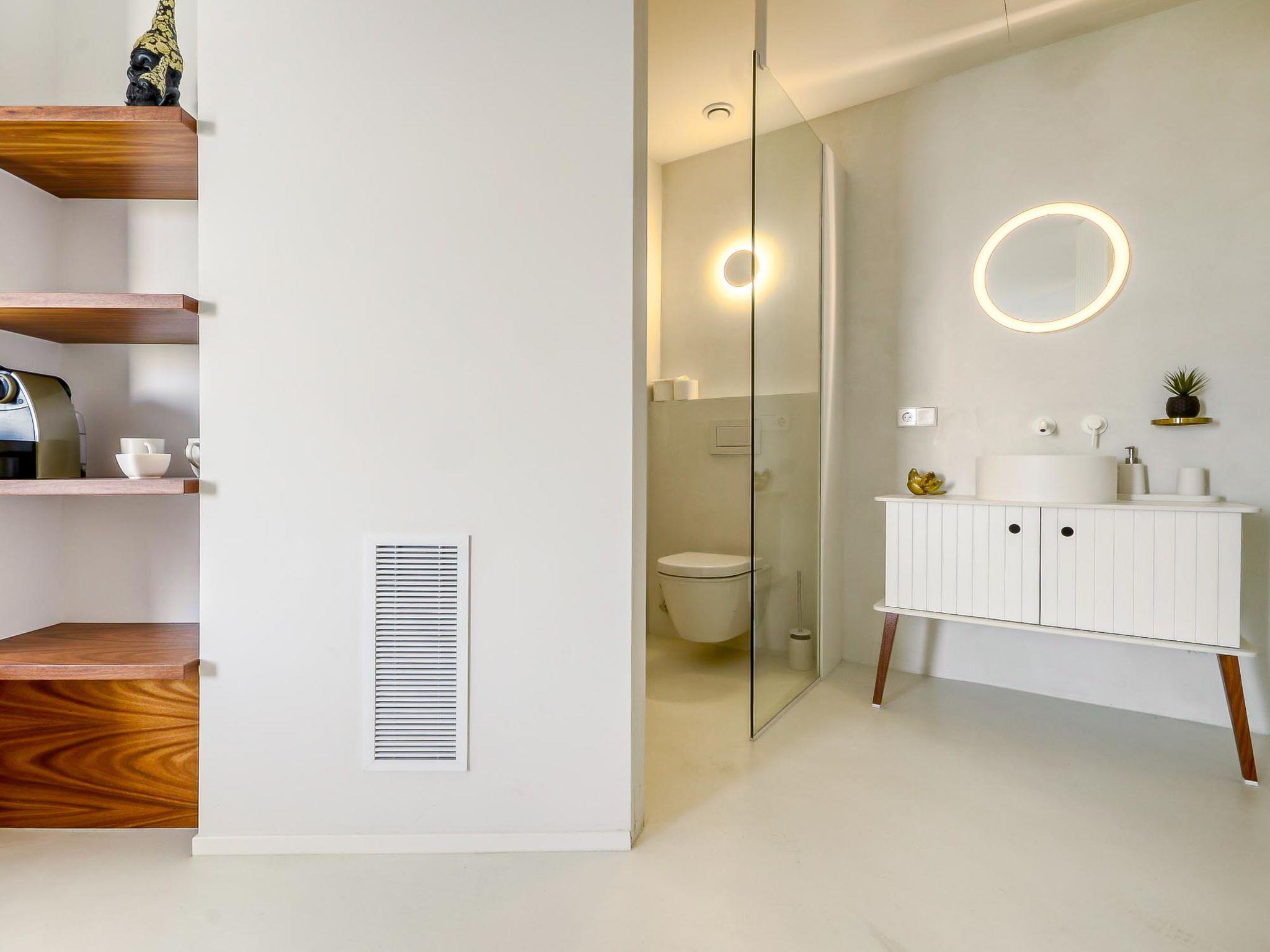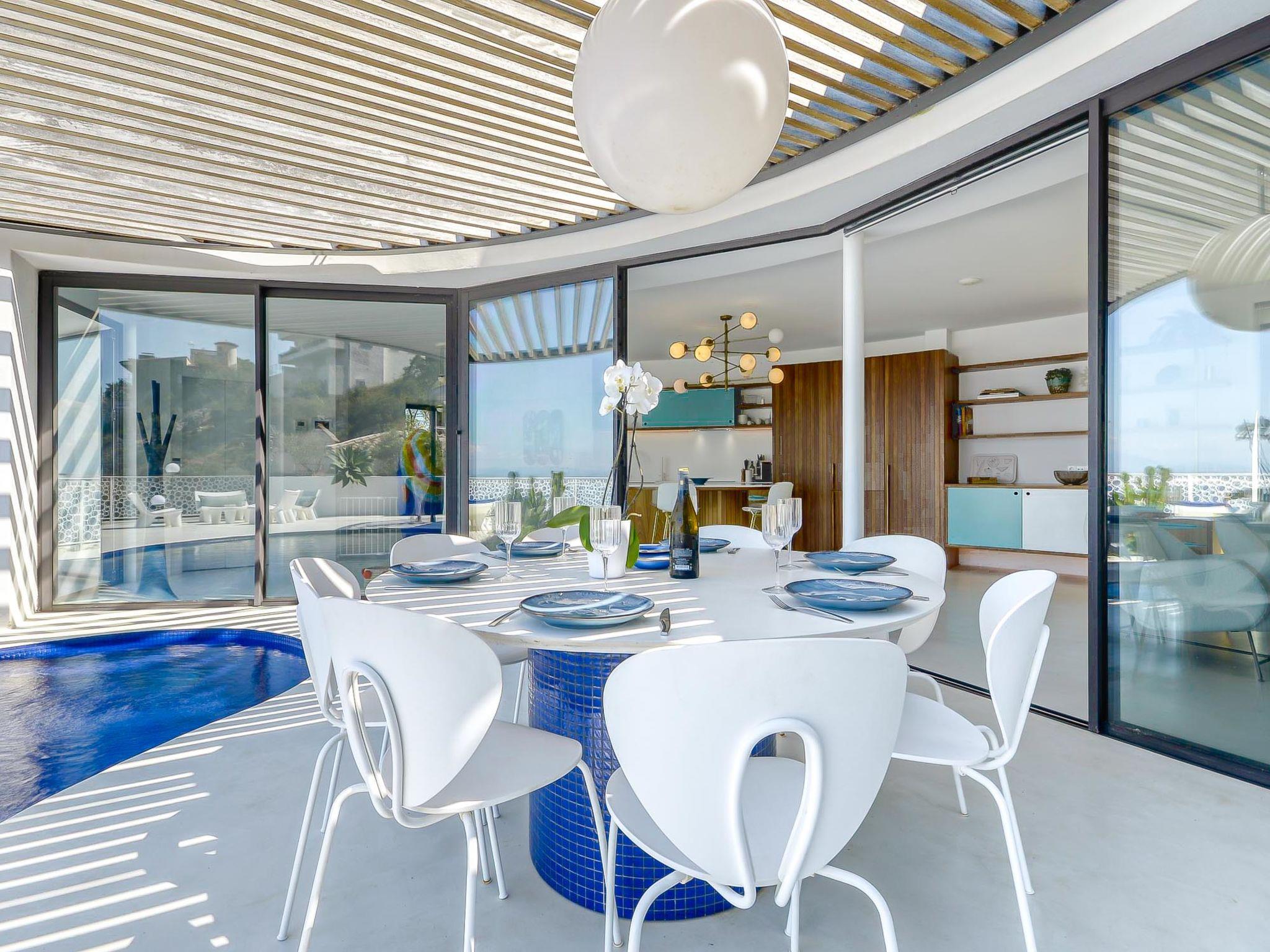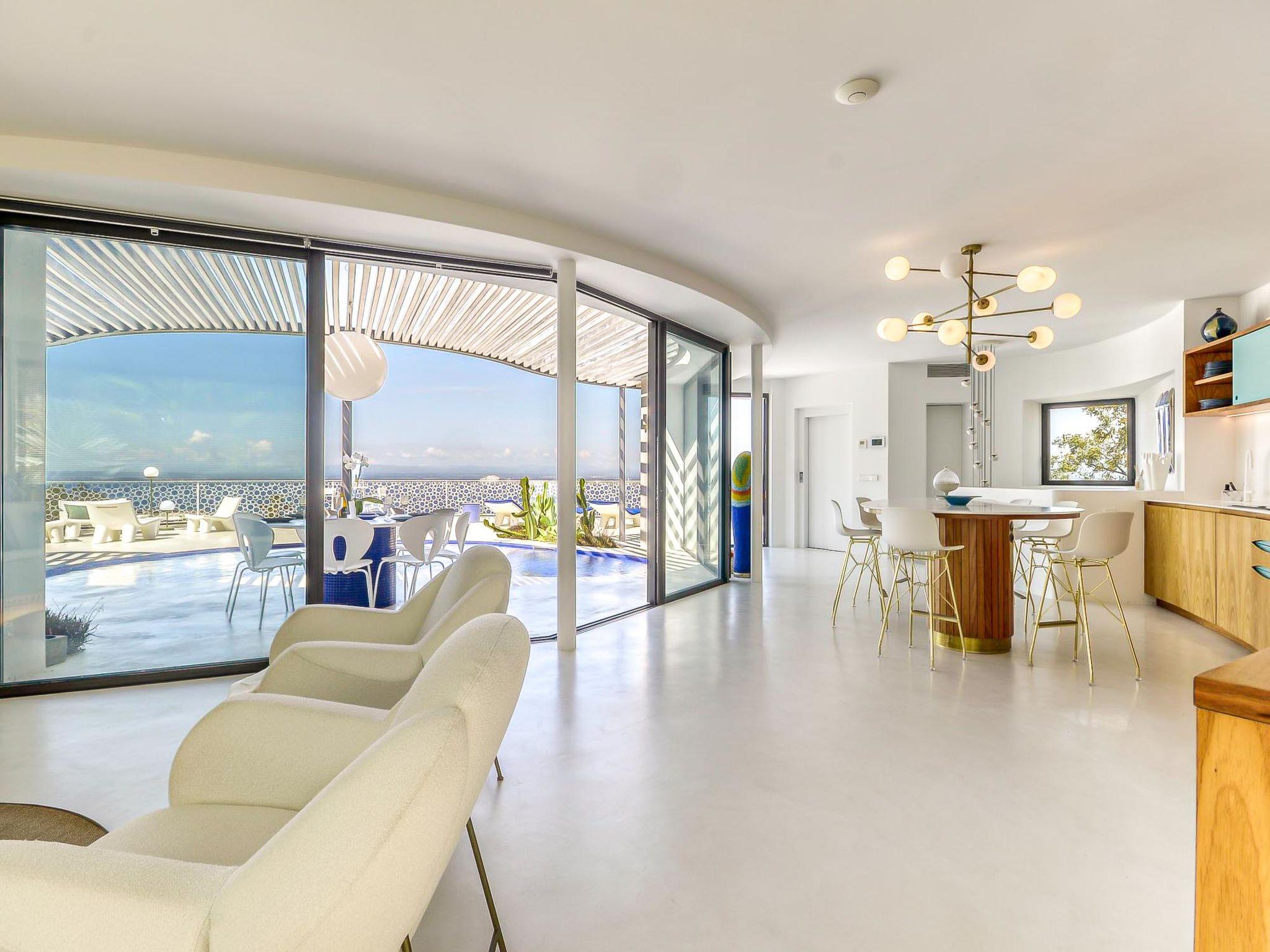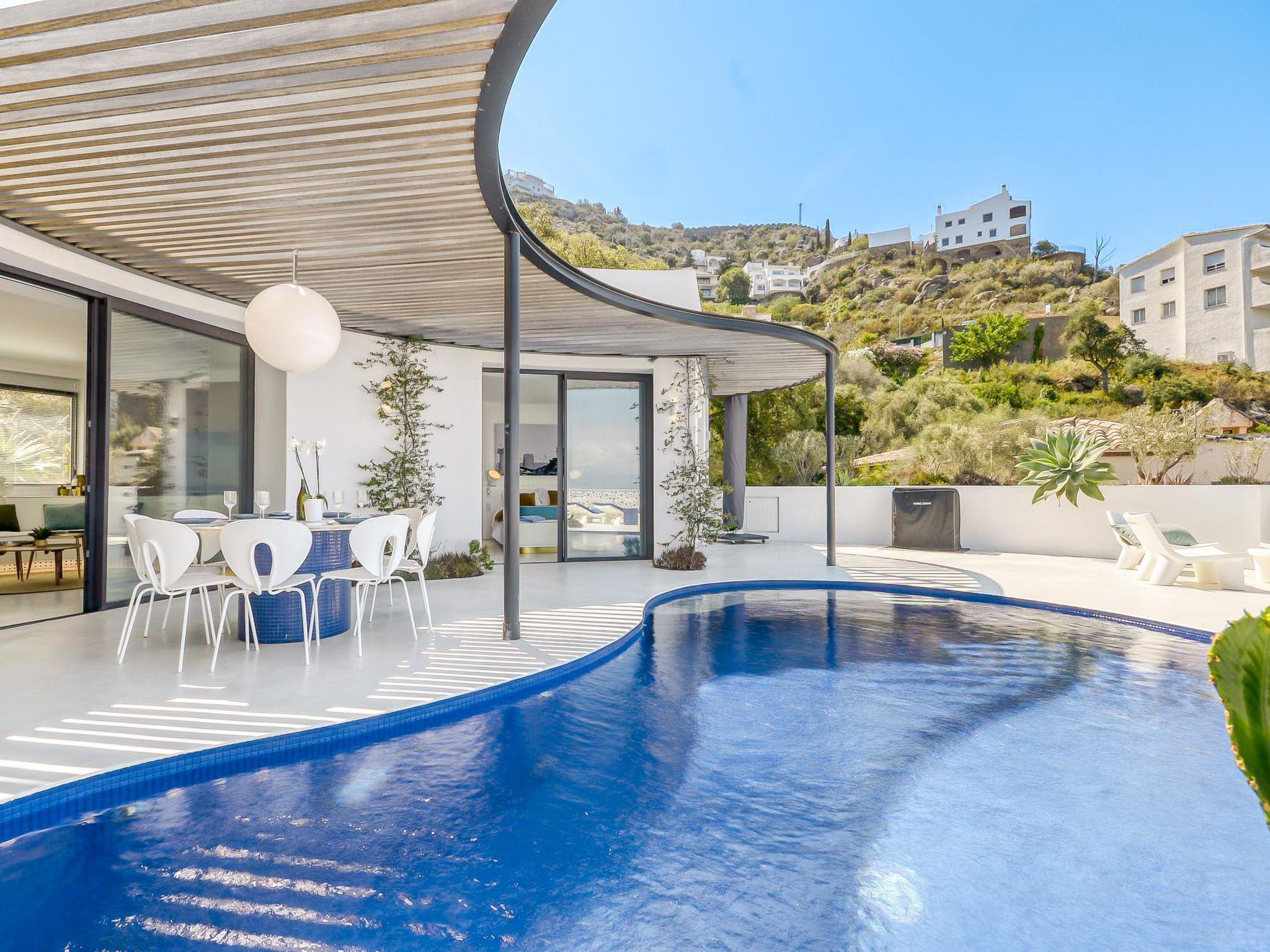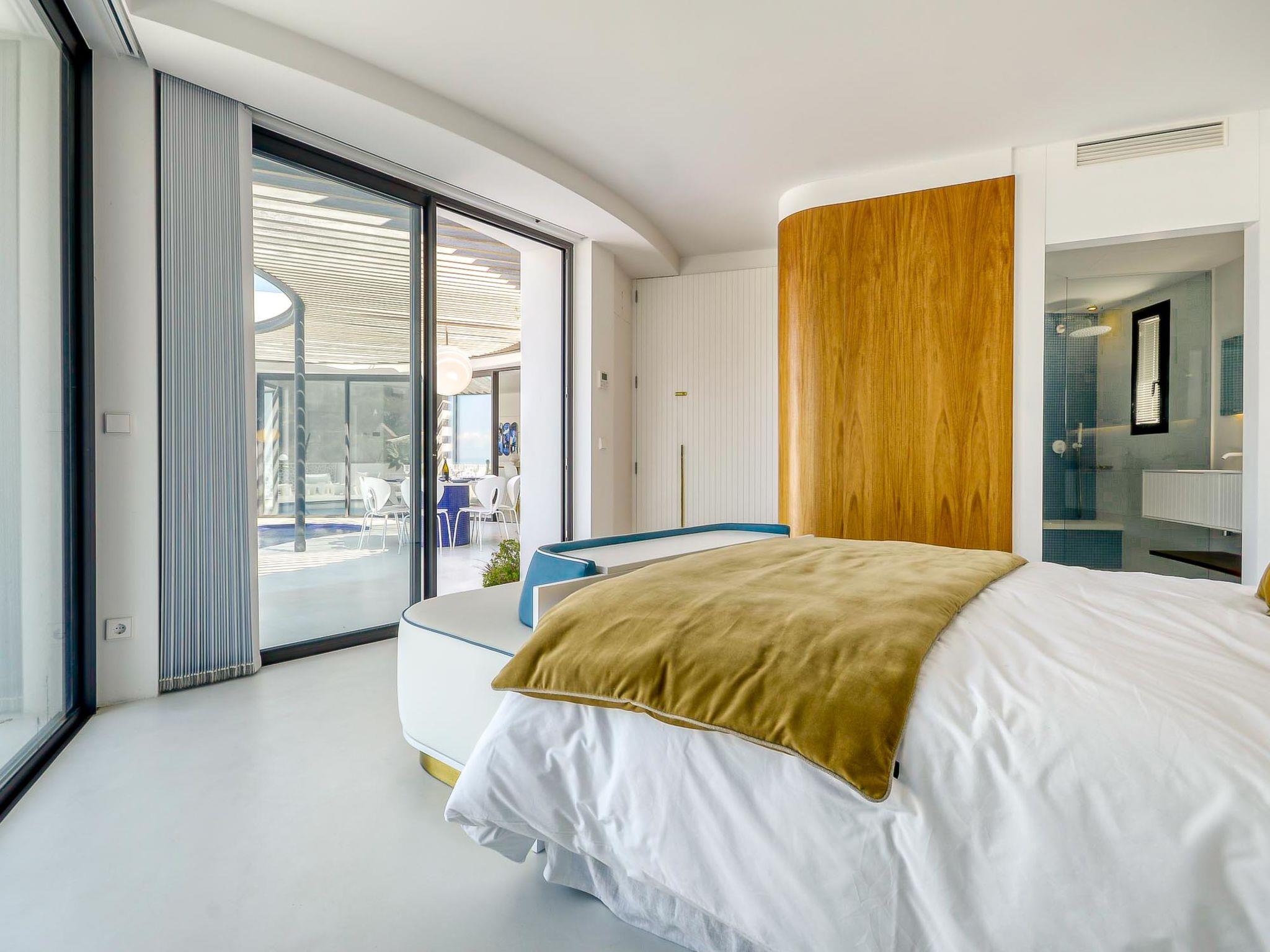 Modern, comfortable, luxurious villa "Donut", 2 storeys, built in 2018. 900 m from the centre of Roses, in a quiet, sunny position on top of a hill, residential area (villas), 400 m from the sea, 400 m from the beach, south-west facing position. Private: swimming pool heated (8 x 4 m, depth 100 - 200 cm, seasonal availability: 15.May. - 30.Oct.) with internal staircase. Unconventional pool shape. WC in the pool area, terrace, garden furniture. In the house: lift, central heating system, air conditioning, laundry. Parking, single garage. Supermarket, restaurant, bar 500 m, bakery 700 m, 5 minute walk to the centre, bus stop "Moventis estació bus" 2.4 km, railway station "Figueres Renfe Adif" 22 km, sandy beach "Cala de Canyelles Petites" 2.2 km, shingle beach "Cala Montjoi" 5 km, rocky beach "Cap de Creus" 10 km, diving center 900 m. Sports harbour 800 m, marina, golf course (15 hole) 14 km, surf school 900 m, sailing school 900 km, indoor tennis centre 2 km, minigolf 2 km, sports centre 2 km, walking paths from the house, cycle lane 400 m. Nearby attractions: Aqua Park 9 km, Casino y Festival de Perelada 15 km, Campo de Golf Perelada 15 km, Ruinas de Empuries 25 km, Museo Dali Figueres 20 km, Cadaqués/ Cap de Creus 25 km. The owner does not accept any groups. The owner does not accept any youth groups. The keys‘ handover takes place by the agency Interhome in Roses.