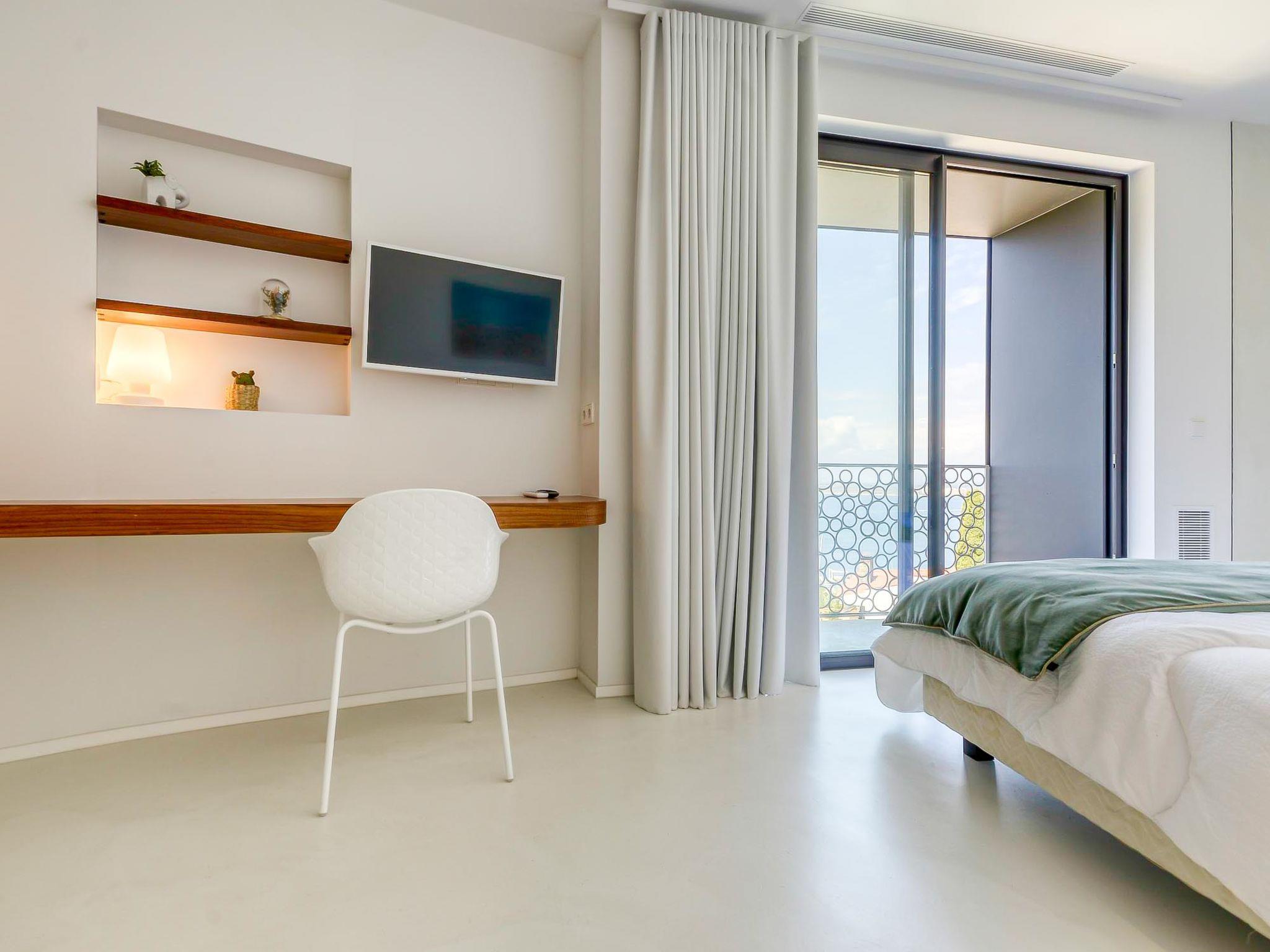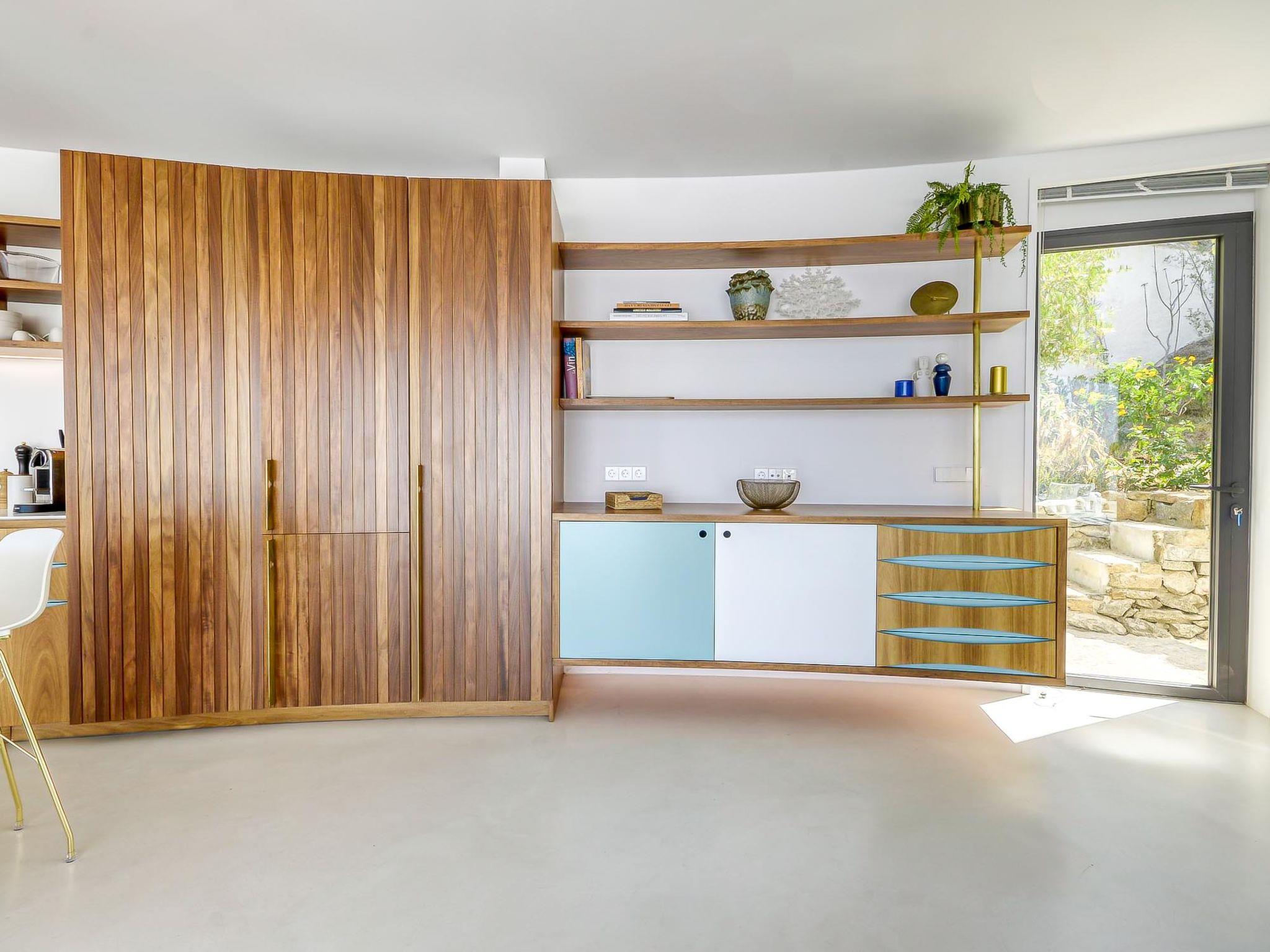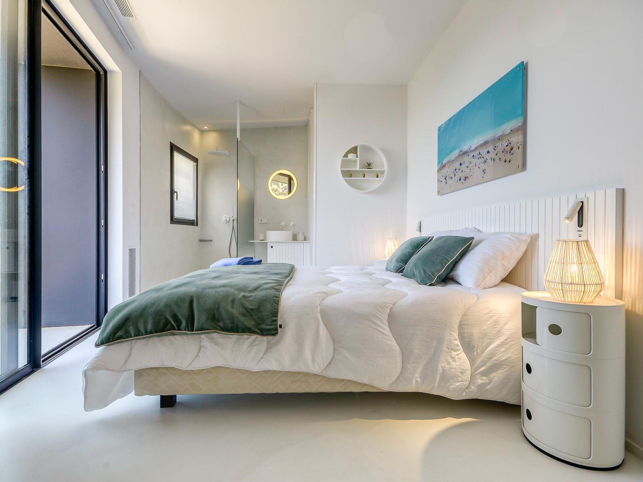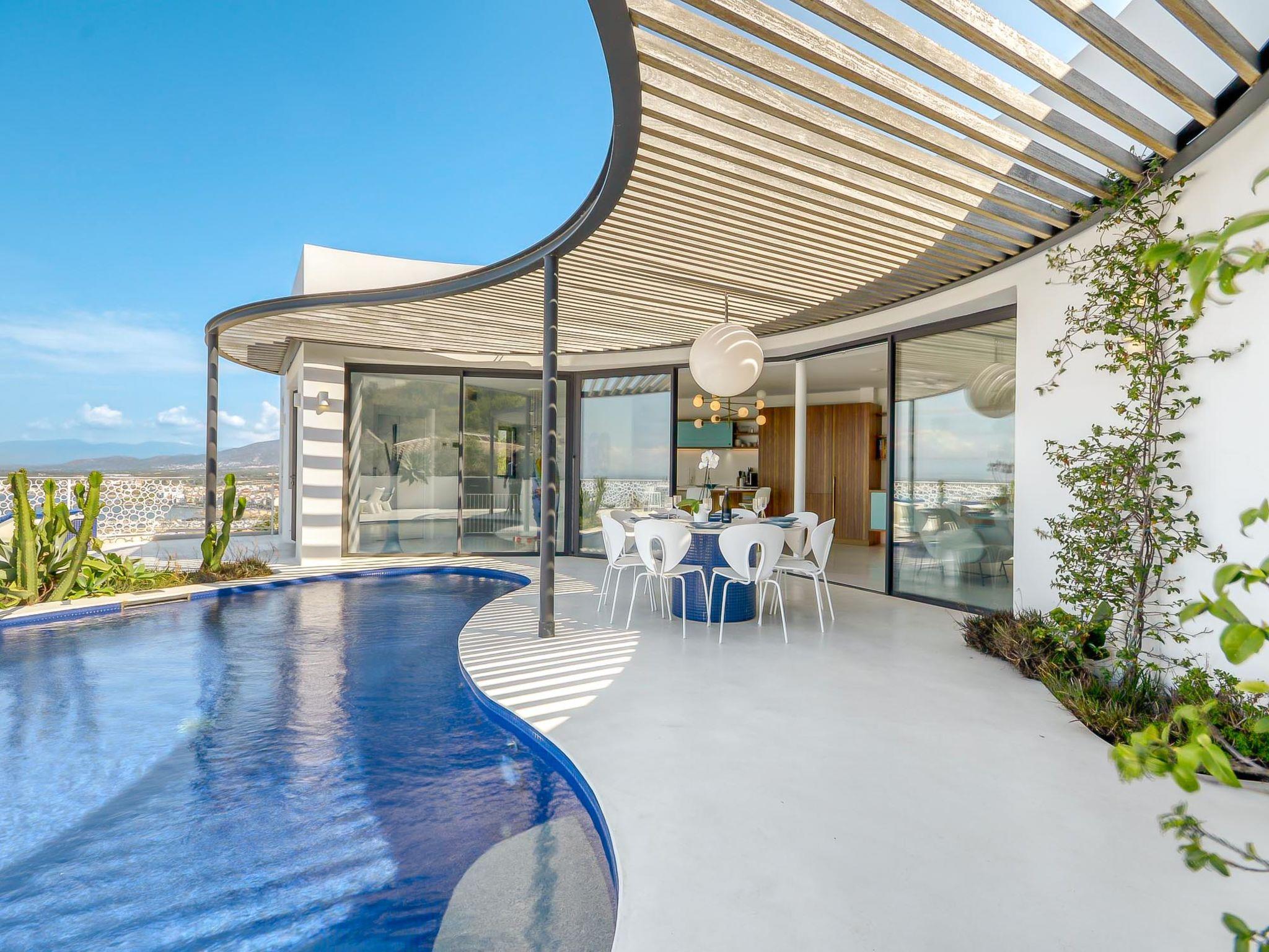 Modern, comfortable, luxurious villa "Donut", 2 storeys, built in 2018. 900 m from the centre of Roses, in a quiet, sunny position on top of a hill, residential area (villas), 400 m from the sea, 400 m from the beach, south-west facing position. Private: swimming pool heated (8 x 4 m, depth 100 - 200 cm, seasonal availability: 15.May. - 30.Oct.) with internal staircase. Unconventional pool shape. WC in the pool area, terrace, garden furniture. In the house: lift, central heating system, air conditioning, laundry. Parking, single garage. Supermarket, restaurant, bar 500 m, bakery 700 m, 5 minute walk to the centre, bus stop "Moventis estació bus" 2.4 km, railway station "Figueres Renfe Adif" 22 km, sandy beach "Cala de Canyelles Petites" 2.2 km, shingle beach "Cala Montjoi" 5 km, rocky beach "Cap de Creus" 10 km, diving center 900 m. Sports harbour 800 m, marina, golf course (15 hole) 14 km, surf school 900 m, sailing school 900 km, indoor tennis centre 2 km, minigolf 2 km, sports centre 2 km, walking paths from the house, cycle lane 400 m. Nearby attractions: Aqua Park 9 km, Casino y Festival de Perelada 15 km, Campo de Golf Perelada 15 km, Ruinas de Empuries 25 km, Museo Dali Figueres 20 km, Cadaqués/ Cap de Creus 25 km. The owner does not accept any groups. The owner does not accept any youth groups. The keys‘ handover takes place by the agency Interhome in Roses.