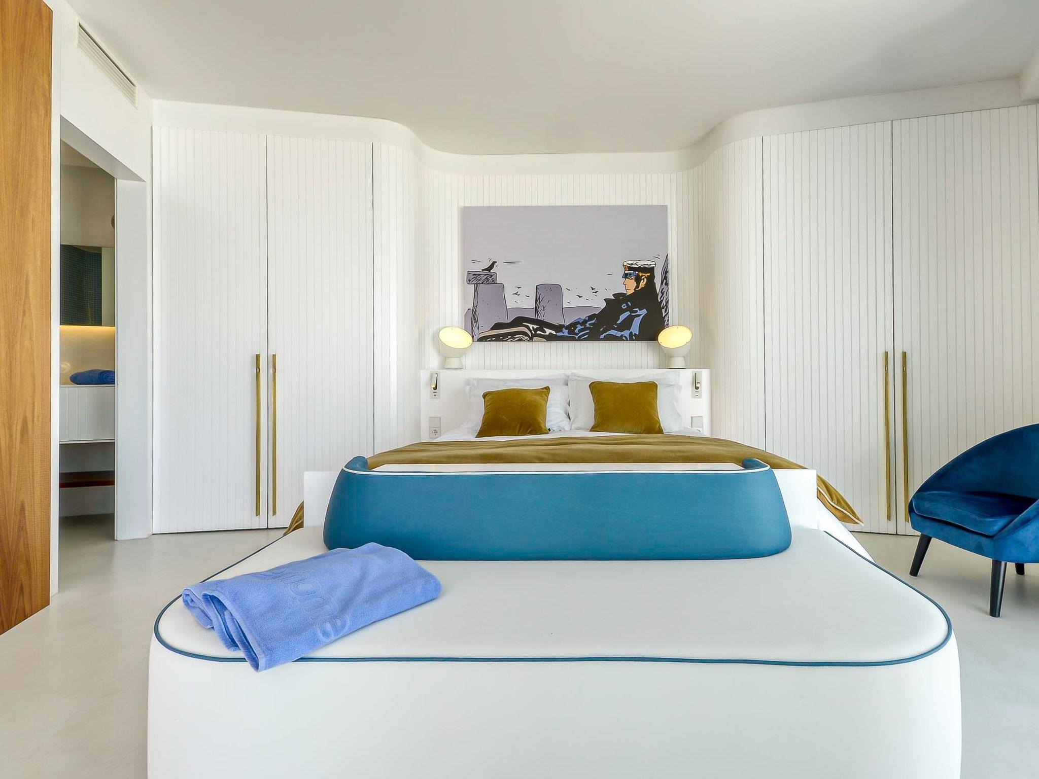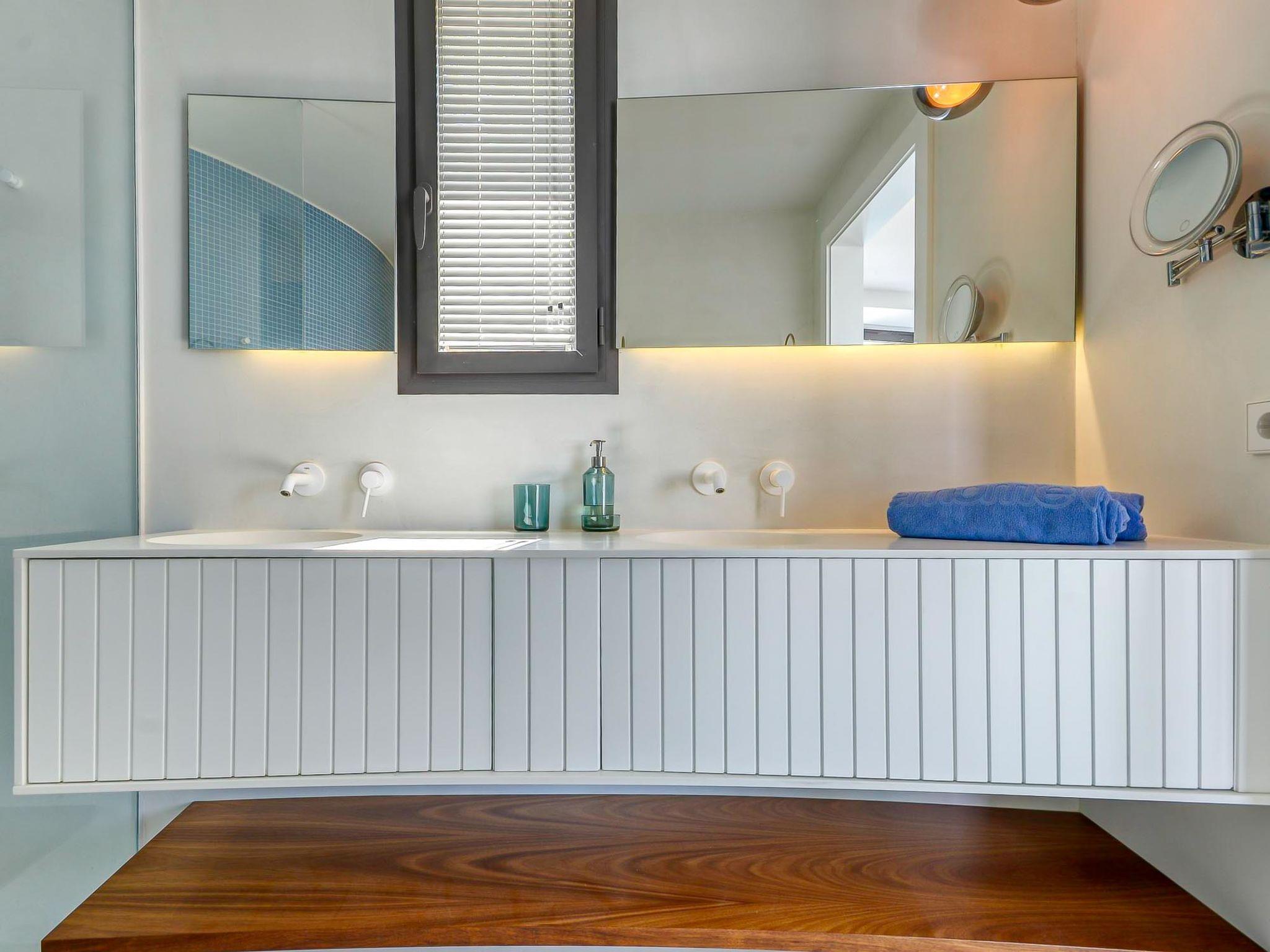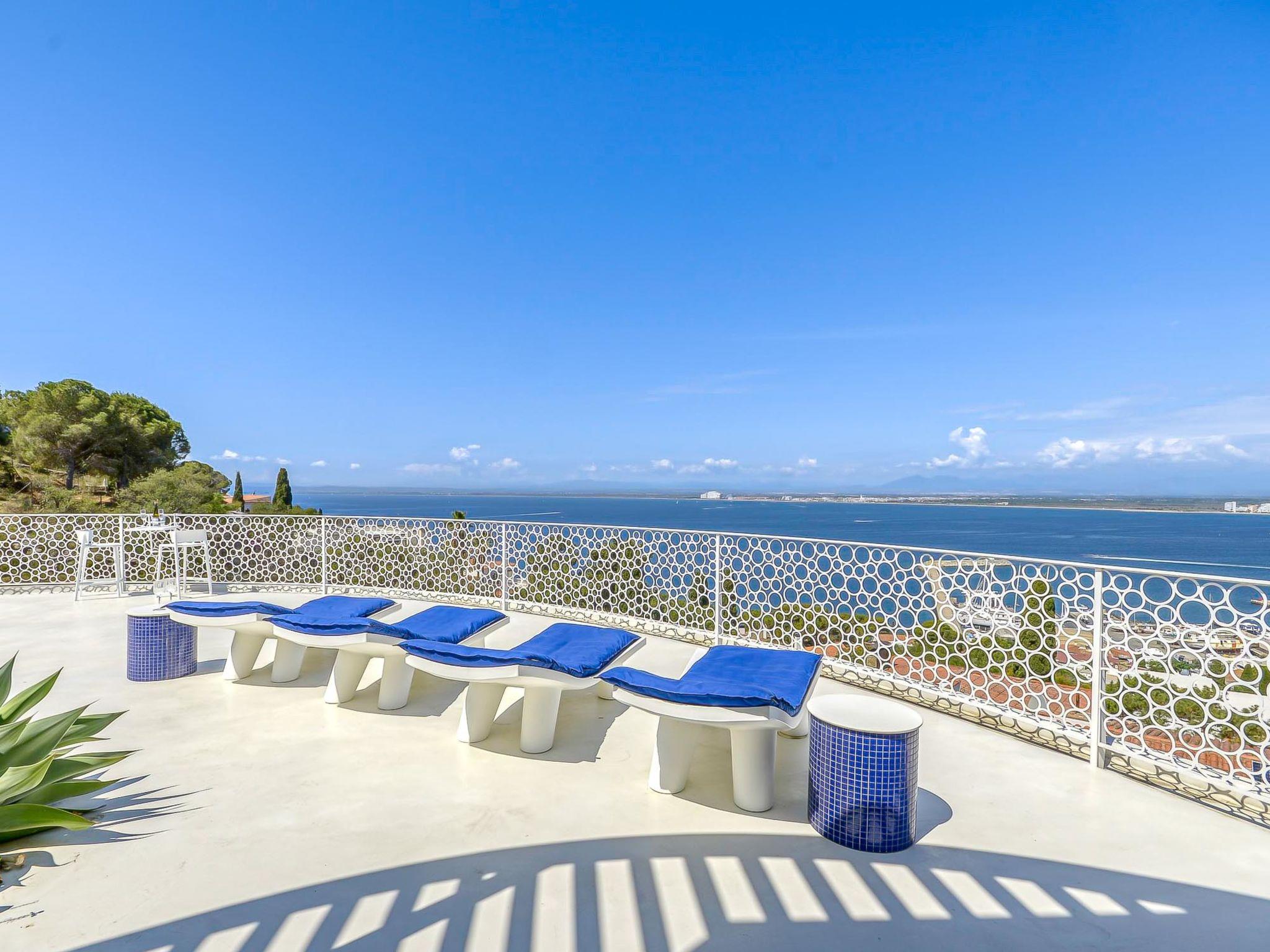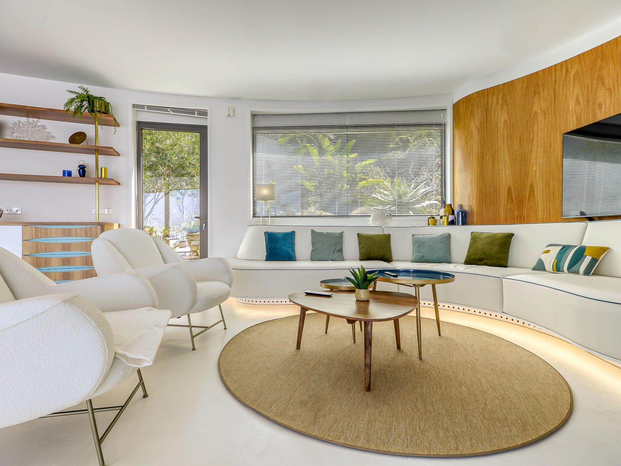 5-room villa 280 m2 on 2 levels, south-west facing position. Spacious, fully renovated, very modern and stylish furnishings: upper floor: 1 room with 1 french bed (160 cm, length 200 cm), shower/WC, air conditioning and forced-air heating. Exit to the balcony. 1 room with 1 french bed (160 cm, length 200 cm), shower/WC, air conditioning and forced-air heating. Exit to the balcony. 1 large room with 1 french bed (160 cm, length 200 cm), shower/WC, air conditioning and forced-air heating. Exit to the balcony. Sep. WC. 2nd upper floor: (spiral staircase) open living/dining room with satellite TV, air conditioning and forced-air heating. Exit to the terrace, to the swimming pool, south facing position and west facing position. 1 large room with 1 french bed (160 cm, length 200 cm), shower/WC, air conditioning and forced-air heating. Exit to the terrace, to the swimming pool. Open kitchen (oven, dishwasher, 3 induction hot plates, toaster, kettle, microwave, freezer, electric coffee machine, Capsules for coffee machine (Nespresso), cooking island). Large terrace. Terrace furniture, deck chairs (4). Marvellous panoramic view of the sea. Facilities: washing machine, dryer, iron, children's high chair, baby cot, hair dryer. Internet (WiFi, free). Garage (2 cars). Please note: non-smoking house. TV only FR. Please note: Wi-Fi only on the main floor. HUTG-066989-563 // Reg. Nr.: ESFCTU00001701900022265700000000000000HUTG-066989-563