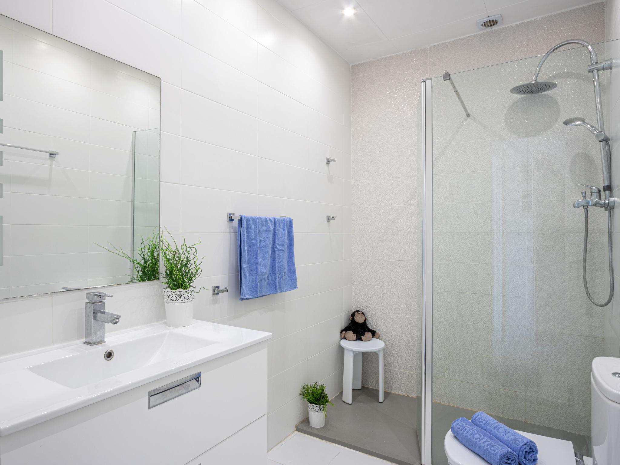 "Madreselva", 4-room terraced house 75 m2 on 2 levels, south-west facing position. Bright: living/dining room with dining table and satellite TV. Exit to the terrace, south facing position and west facing position. Open kitchen (oven, dishwasher, 4 ceramic glass hob hotplates, microwave, freezer, electric coffee machine) with bar. Sep. WC. No heating option. On the lower ground floor: 1 large room with 1 french bed (140 cm, length 190 cm), dining nook and shower/WC. 1 room with 1 french bed (140 cm, length 190 cm). 1 children's room with 2 beds (90 cm, length 190 cm). Shower/WC. Large terrace 20 m2, south facing position and west facing position terrace 12 m2. Terrace furniture. Marvellous panoramic view of the sea. Facilities: washing machine, iron, hair dryer. Internet (WiFi, free). Please note: TV only DE, ES, FR. HUTG-056717 // Reg. Nr.: ESFCTU0000170190003983900000000000000000HUTG-0567170
