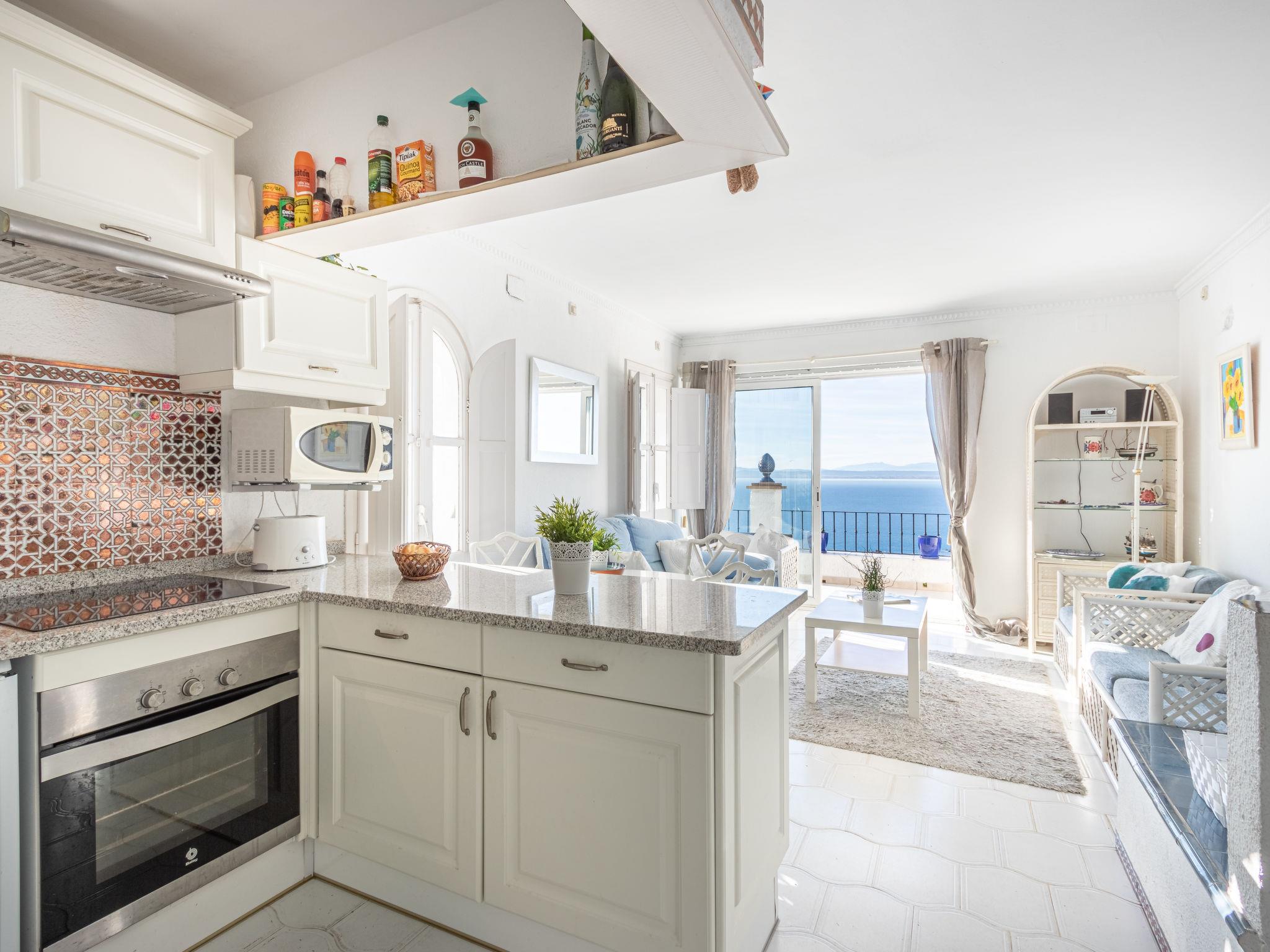 Canyelles Petites: Obligatory: to send via email names, surnames and age of all occupants for the pool control. Access to the houses by steep stairs terraced house "Casas Blancas", 2 storeys, semi-detached. 13 houses in the residence. Canyelles Petites, in the resort 3.5 km from the centre of Roses, in an elevated position on a slope, residential area (villas), 950 m from the sea, 950 m from the beach, south-west facing position. For shared use: swimming pool kidney-shaped (14 x 5 m, depth 140 - 180 cm, seasonal availability: 01.Jun. - 30.Sep. pool opening hours: 09:00-21:00). Very steep motor access. Stepped path (36 steps) to the house. Shop, grocery, supermarket, restaurant, bar, café, bus stop 850 m, sandy beach "Canyelles Petites". Sports harbour 3 km, marina 3.5 km, golf course (18 hole) 20 km, surf school 3.5 km, sailing school 3.5 km, tennis 5 km, riding stable 10 km. Nearby attractions: Parque Acuático Aquabrava Roses 6 km, Skydive y túnel del viento Empuriabrava 11 km, Cadaqués 18 km, Castillo y casino de Perelada 25 km, Monasterio de Sant Pere de Rodes 24 km, Museo Dalí Figueres 24 km. Please note: car recommended, no lift. The owner does not accept any youth groups. The keys‘ handover takes place by the agency Interhome in Roses. Neighbourhood highly sensitive to noise. Quietness and good behaviour expected.