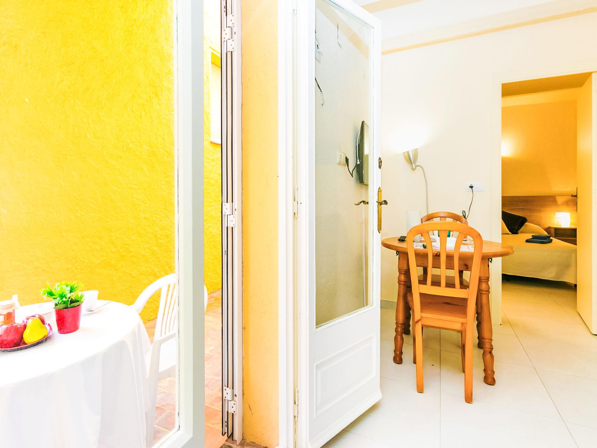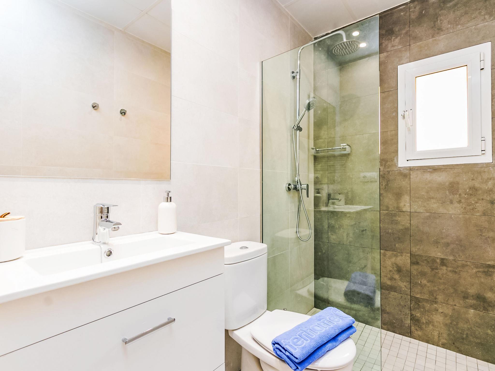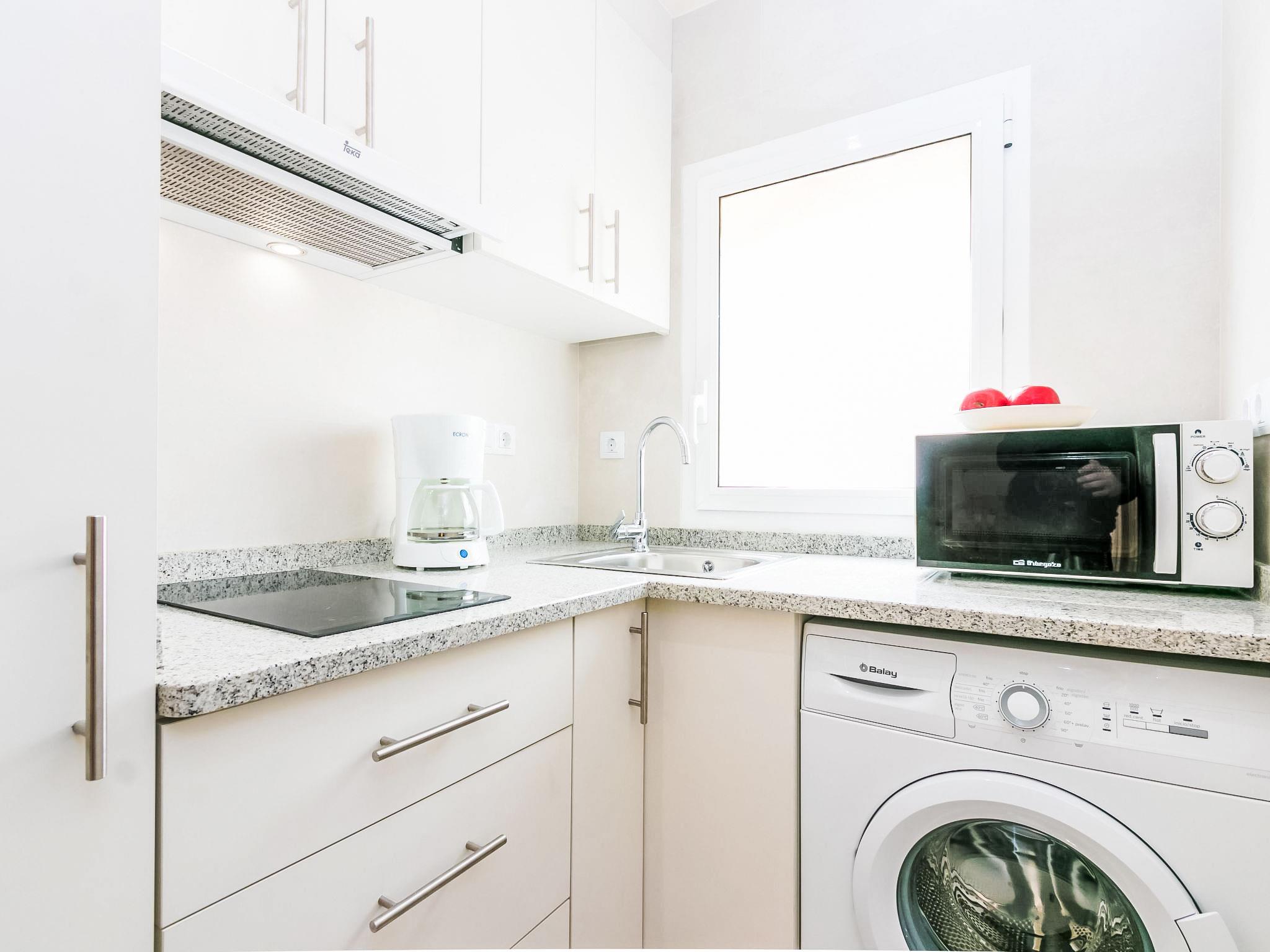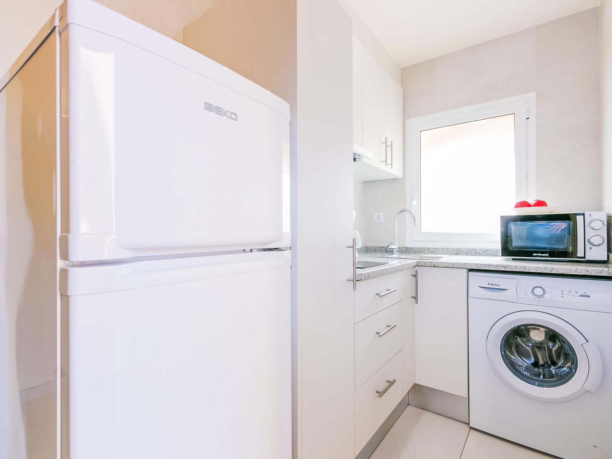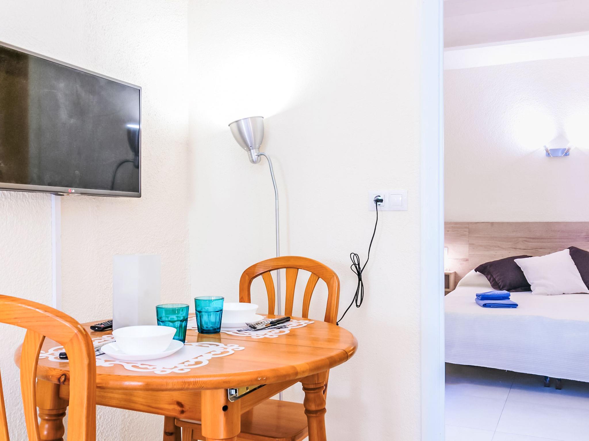 2-room apartment 30 m2. Very simple furnishings: small living/dining room with TV. 1 small room with 2 beds (90 cm, length 190 cm). Open kitchen (2 ceramic glass hob hotplates, microwave, freezer, electric coffee machine). Shower/WC. No heating option. Terrace furniture. Facilities: washing machine. Internet (WiFi, free). Please note: non-smokers only, no parking. TV only ES. No lift. Interior apartment.Shared terrace space without views . NO PARKING . NO heating. HUTG007511