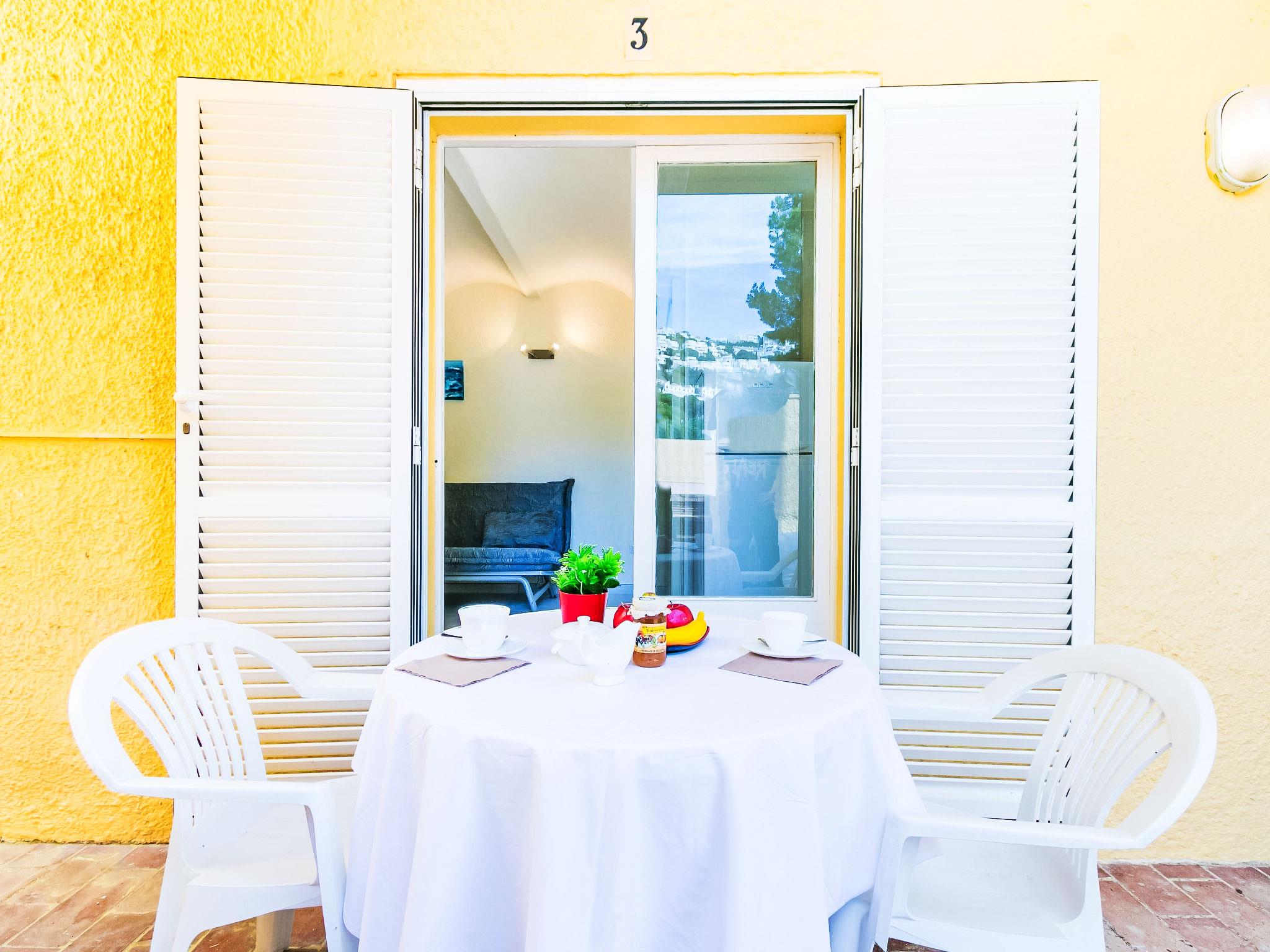 Canyelles Petites: Cosy, simple resort "Velazquez". Canyelles Petites, in the resort 4 km from the centre of Roses, in a quiet, sunny position on a slope, from the sea, 60 m from the beach, road to cross. For shared use: swimming pool angular (10 x 4 m, depth 80 - 180 cm, seasonal availability: 12.May. - 30.Sep.) with internal staircase. In the house: WiFi. Shop 150 m, grocery, supermarket 150 m, restaurant 100 m, bar 20 m, café, pedestrian zone 30 m, bus stop 100 m, sandy beach "Canyelles Petites" 60 m, swimming bay 60 m. Sports harbour 3 km, golf course (18 hole) 24 km, surf school 3 km, sailing school 3 km, tennis 5 km, riding stable 10 km, sports centre 3.5 km. Nearby attractions: Parque Acuático Aquabrava Roses 6 km, Skydive y túnel del viento Empuriabrava 11 km, Cadaqués 18 km, Castillo y casino de Perelada 25 km, Monasterio de Sant Pere de Rodes 24 km, Museo Dalí Figueres 24 km. Please note: the keys‘ handover takes place by the agency Interhome in Roses. Additional accommodations can be booked. The apartments are built on terraced land and set on a hillside. The apartments' terraces are intercommunicated so there is little privacy. Access to the individual apartments and the swimming pool down some steps. The apartments are situated 60 m from the Canyelles Petites beach, one of the most beautiful beaches in the Costa Brava. Please note: The residence requests no noise after 23:00 hrs. Exception: ES9410.383.1, with terrace and private entrance. Available private garage in all apartments except the es9410.383.3 Pease note : apartments without heating.