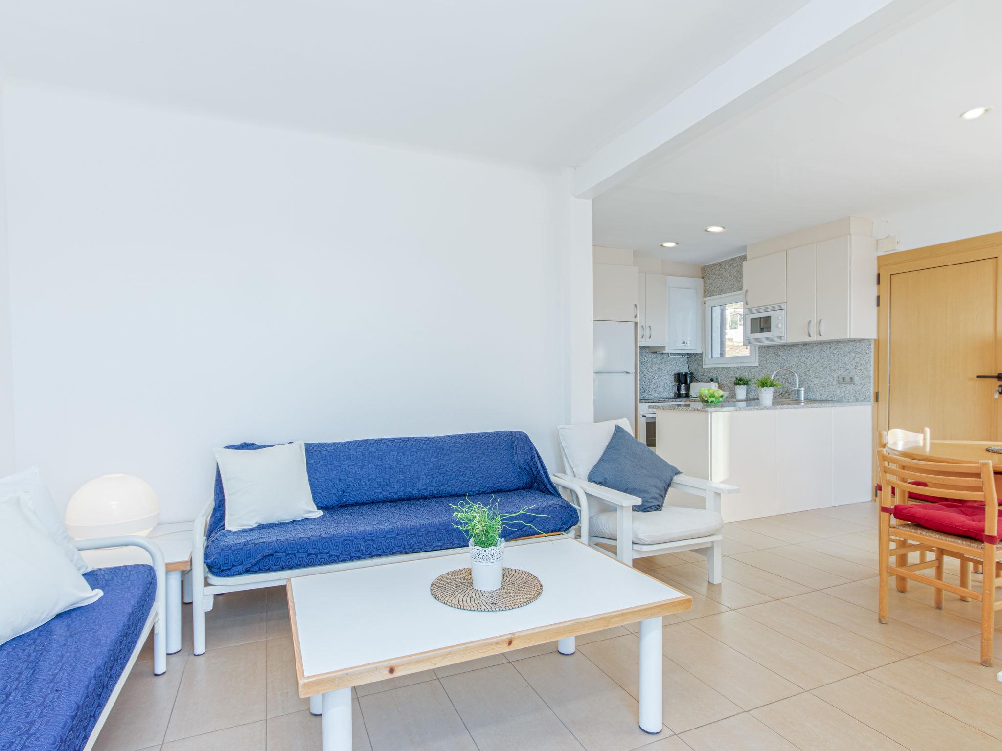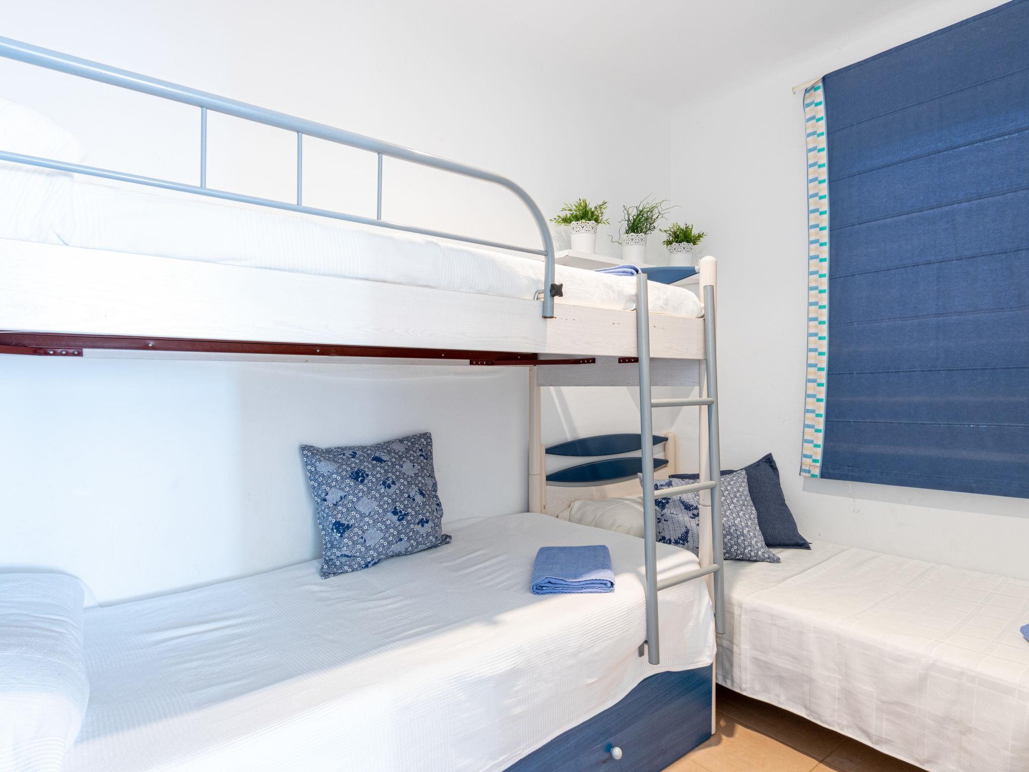 4-room apartment 60 m2. Spacious and bright, practical and cosy furnishings: open living/dining room with TV and forced-air heating. Exit to the terrace. 1 room with 1 french bed (150 cm). 1 room with 2 beds (90 cm). 1 room with 1 bed (90 cm), 1 x 2 bunk beds (90 cm). Open kitchen (oven, dishwasher, 2 ceramic glass hob hotplates, microwave) with bar. Shower/WC. Large terrace 10 m2. Terrace furniture. Marvellous panoramic view of the ocean. Facilities: washing machine. Internet (WiFi). Parking space n B12 at the house. Please note: TV only ES. HUTG003077 // Reg. Nr.: ESFCTU000017019000311405000000000000000000HUTG0030779