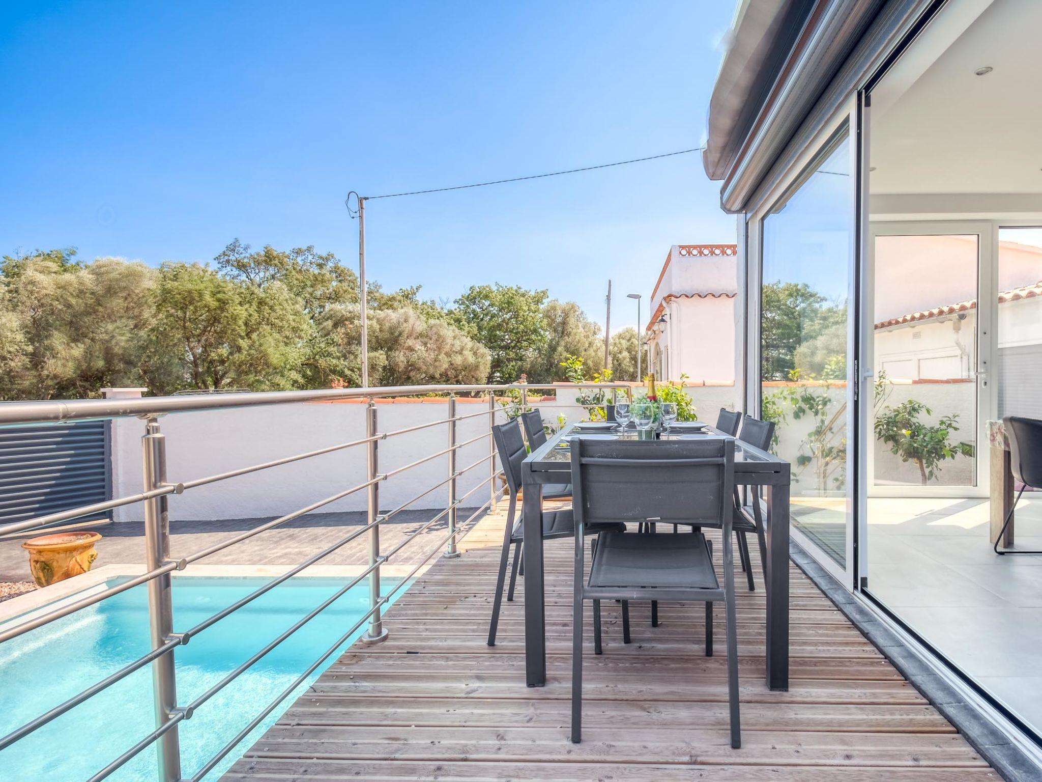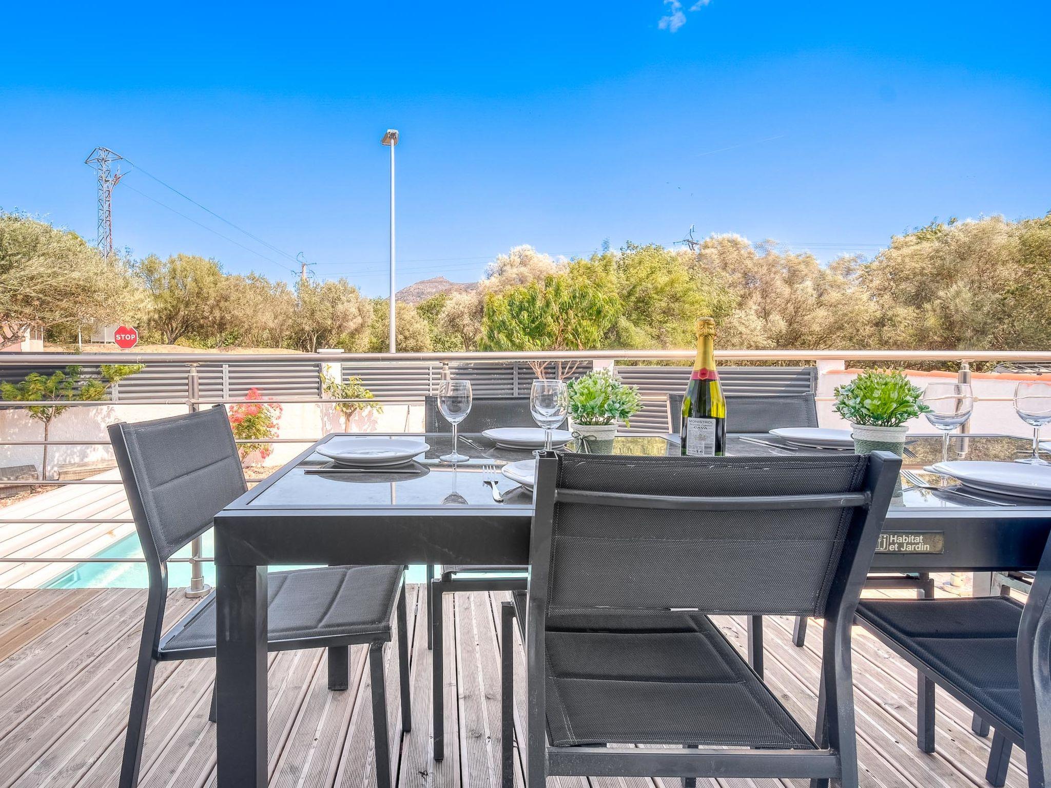 MAS BUSCÀ 2 km from Roses: Large, cosy, comfortable villa "Gironés", renovated in 2022. In the district of Mas Buscà, in the resort 2 km from the centre of Roses, in a quiet, sunny position residential area (villas), traffic calmed area, 4 km from the sea, 4 km from the beach, south facing position. Private: beautiful, well-kept garden with wildlife garden and trees, swimming pool angular (6 x 3 m, depth 50 - 140 cm, seasonal availability: 01.Jan. - 31.Dec.) with salt-electrolysis pool-cleaning system. Terrace, garden furniture, barbecue, parking at the house. Supermarket 2 km, shopping centre 2 km, restaurant, bar 750 m, bakery 1.5 km, bus stop "Moventis estació bus Roses" 5 km, railway station "Figueres Renfe Adif" 20 km, sandy beach "Roses" 4 km. Golf course (18 hole) 15 km, surf school 6 km, sailing school 6 km, sports centre 3 km. Nearby attractions: GO Kart Roses 2 km, AquaBrava Waterpark 2 km, AeroClub Empuriabrava 5 km, Peralada Golf & Festival 10 km, Figueres Dali Museo 18 km, Cadaques 15 km. Please note: car recommended. The owner does not accept any youth groups. The keys‘ handover takes place by the agency Interhome in Roses.