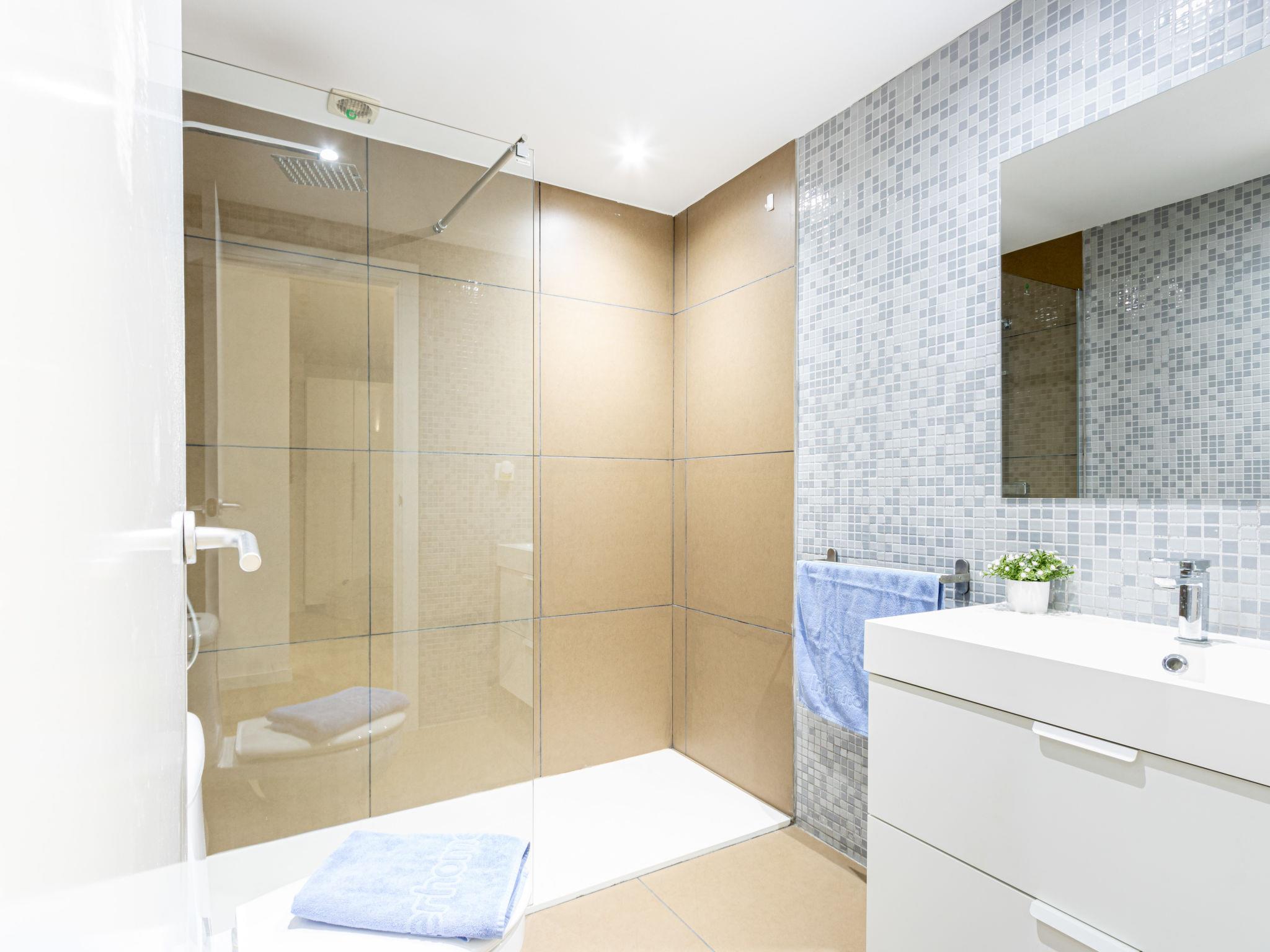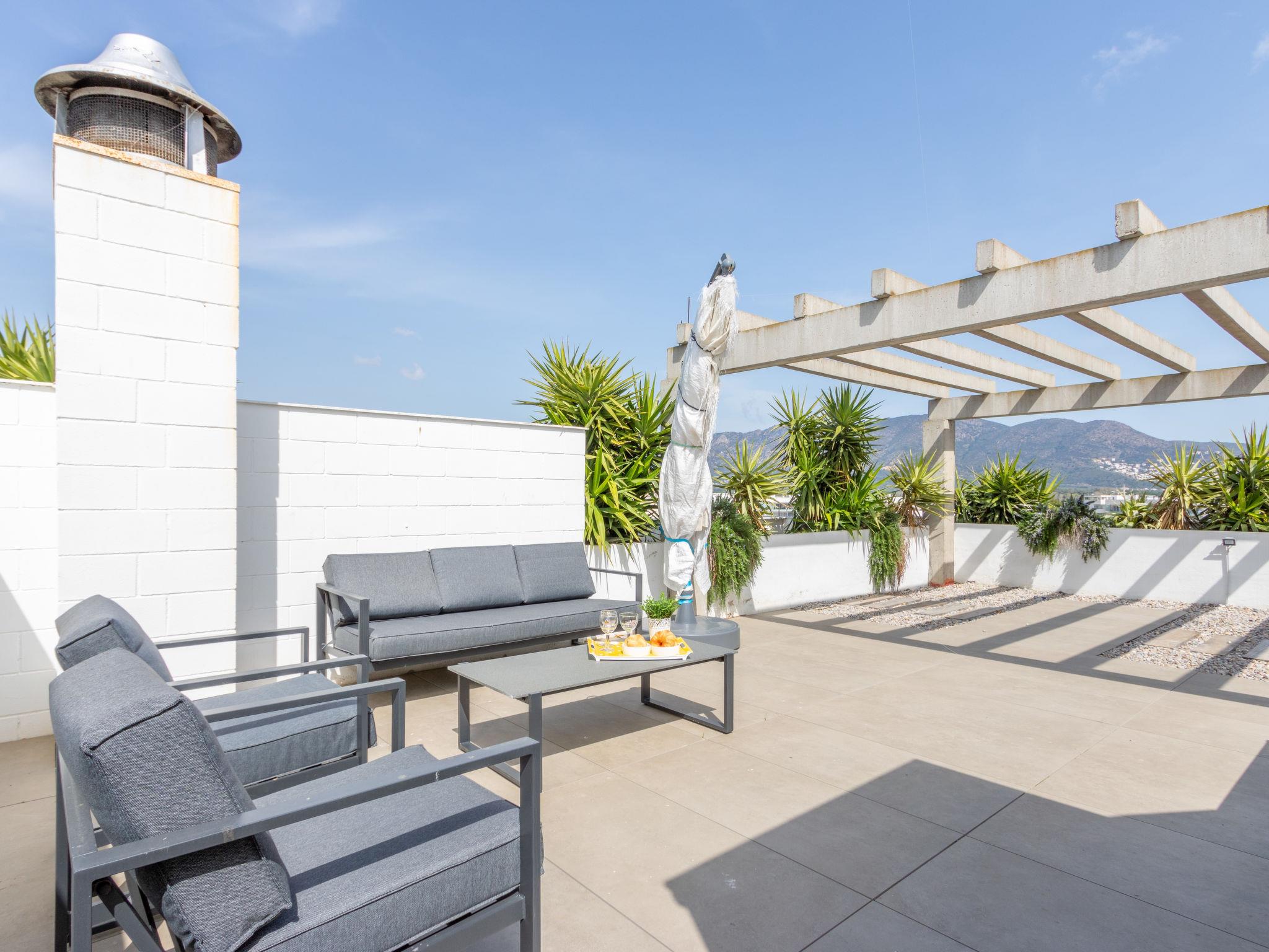 3-room apartment 70 m2. Spacious and bright, modern and cosy furnishings: living/dining room with dining table, satellite TV, air conditioning and forced-air heating. Exit to the terrace. 1 room with 2 beds (80 cm, length 190 cm). 1 room with 1 french bed (140 cm, length 190 cm). Exit to the terrace. Kitchen (dishwasher, 3 induction hot plates, toaster, kettle, microwave, freezer, electric coffee machine). Shower/WC. Balcony, north facing position and, east facing position, large terrace 90 m2, north facing position and, east facing position. Terrace furniture. Very beautiful view of the mountains, the resort and the canal. Facilities: washing machine. Parking space n 30 o 31 (roofed). Please note: non-smokers only. TV only FR, ES. HUTG012915 // Reg. Nr.: ESFCTU000017019000350442000000000000000000HUTG0129156