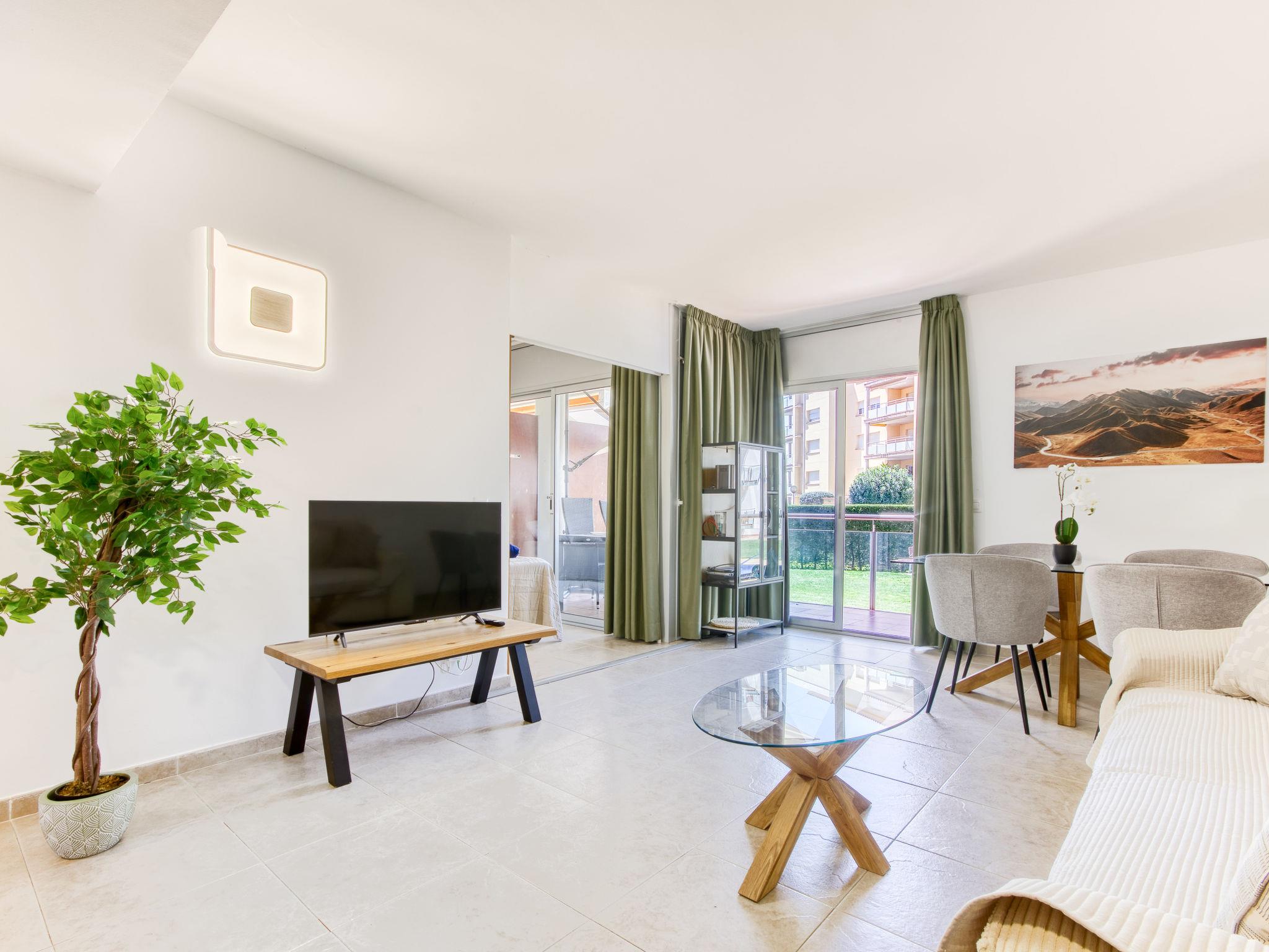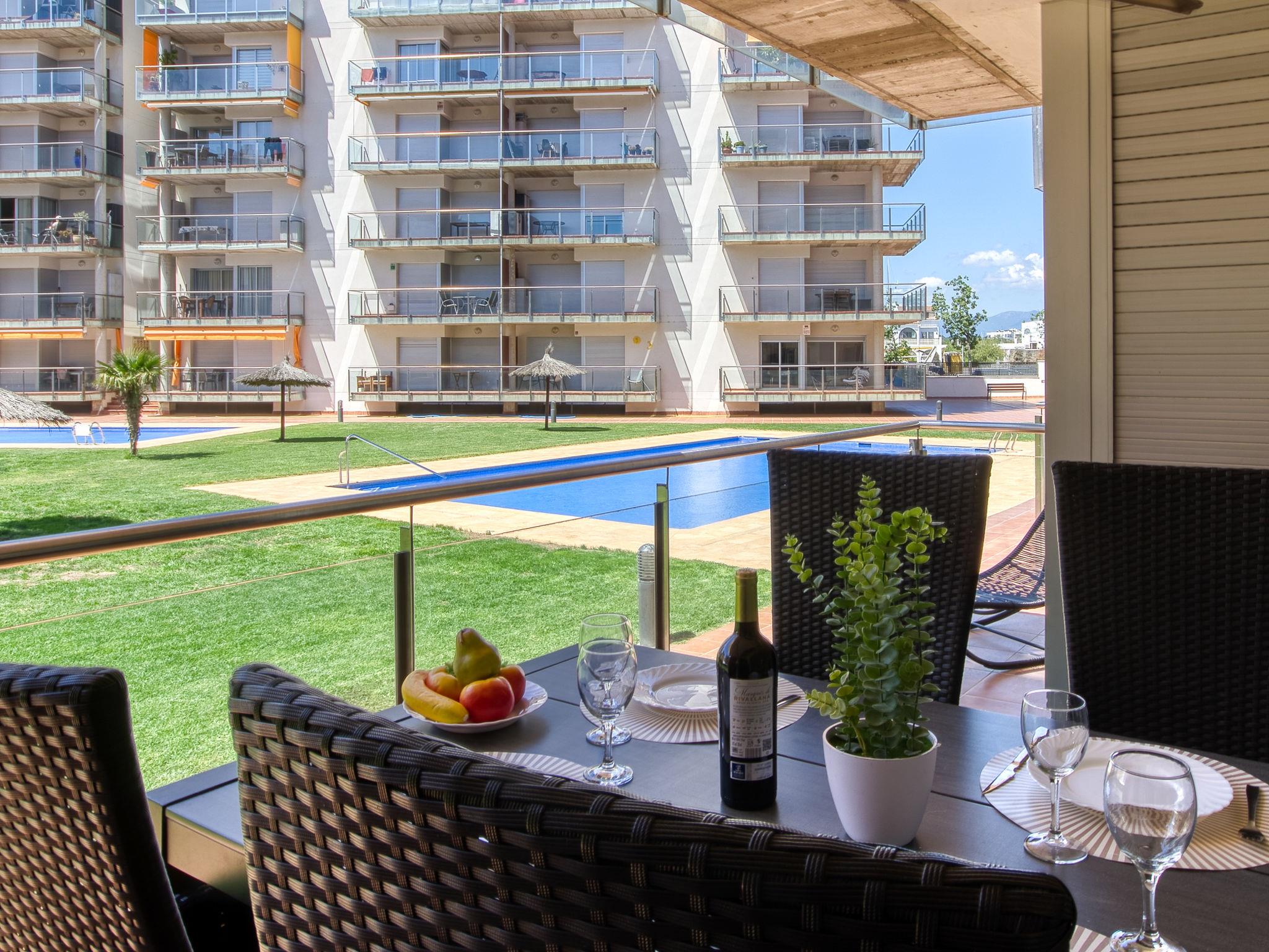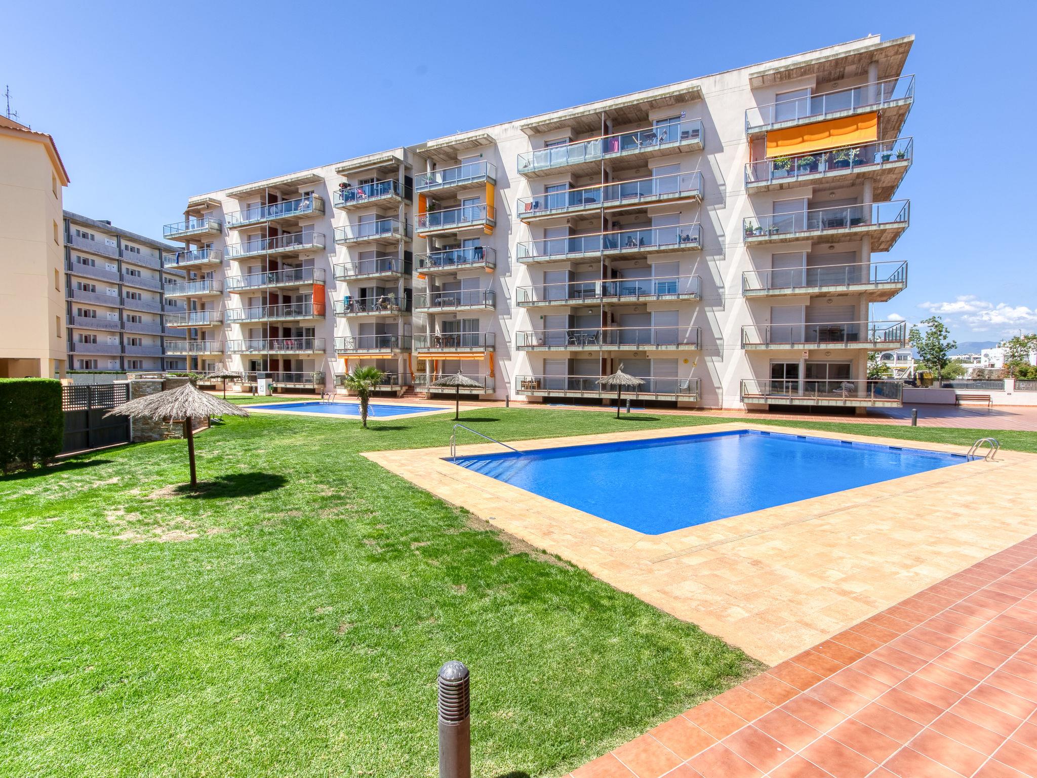 Santa Margarita: Large, modern, cosy apartment block "Gregal", 5 storeys. In the district of Santa Margarita, 3 km from the centre of Roses, in a quiet, sunny position, traffic calmed area, 900 m from the sea, 900 m from the beach, directly by the canal, in a cul-de-sac, south-west facing position. For shared use: large, beautiful, well-kept garden (fenced) with lawn, 2 swimming pools angular (6 x 14 m, 100 m2, depth 100 - 200 cm, seasonal availability: 01.Jun. - 30.Sep.). In the house: lift. Parking, communal covered parking. Grocery, supermarket 500 m, shopping centre 1 km, restaurant, bar 500 m, bus stop 1 km, sandy beach "Santa Margarita" 900 m, diving center 1 km. Sports harbour 4 km, tennis 1 km, minigolf 1 km. Nearby attractions: Parque Acuático Aquabrava Roses 1.5 km, Túnel del viento y Skydive Empuriabrava 5.6 km, Museo Dalí Figueres 19 km, Castillo y festival de Perelada 20 km, Monasterio de Sant Pere de Rodes 19 km, Ruinas de St. Martí de Empuries 27 km. Please note: suitable for families. The keys‘ handover takes place by the agency Interhome in Roses.