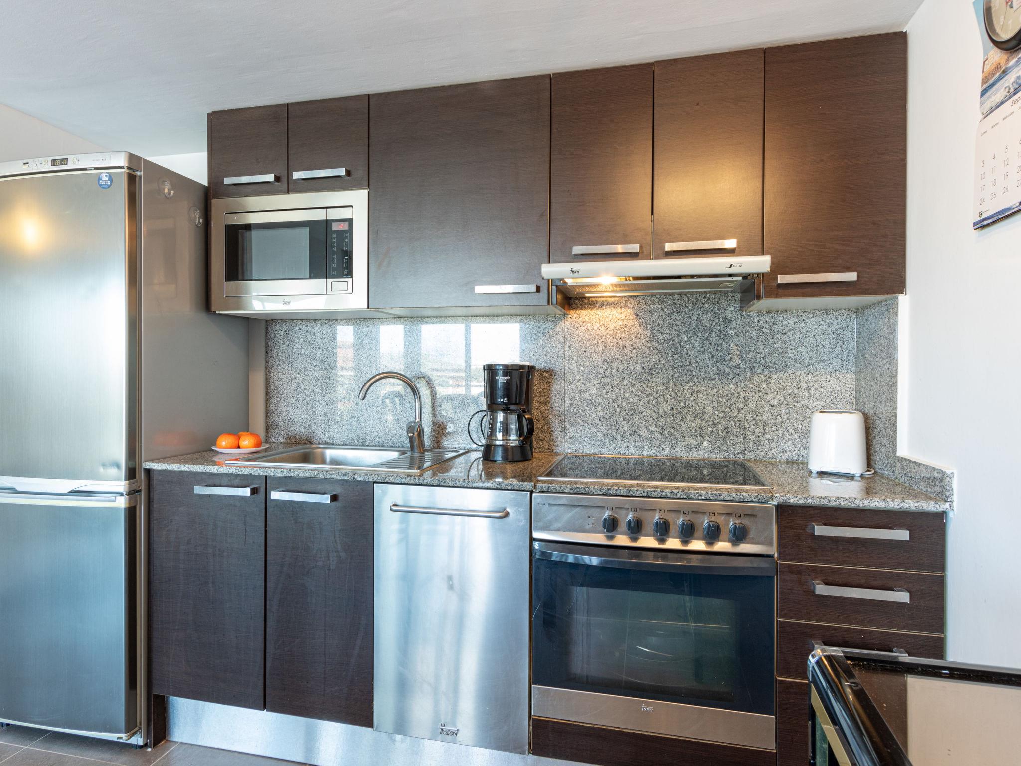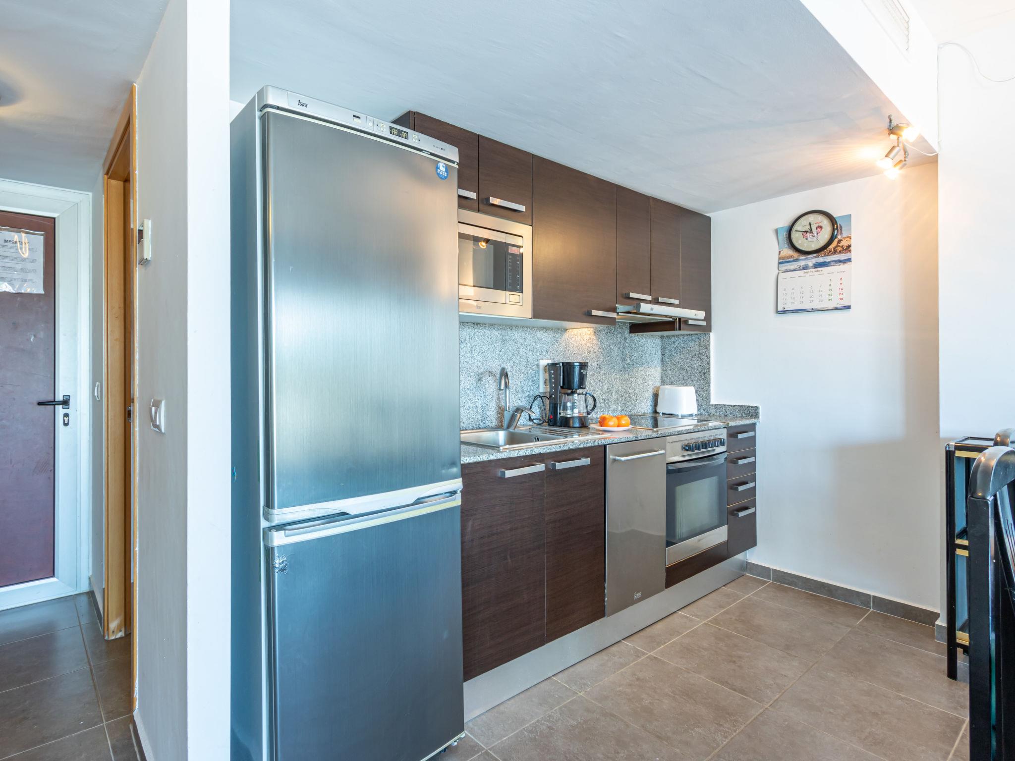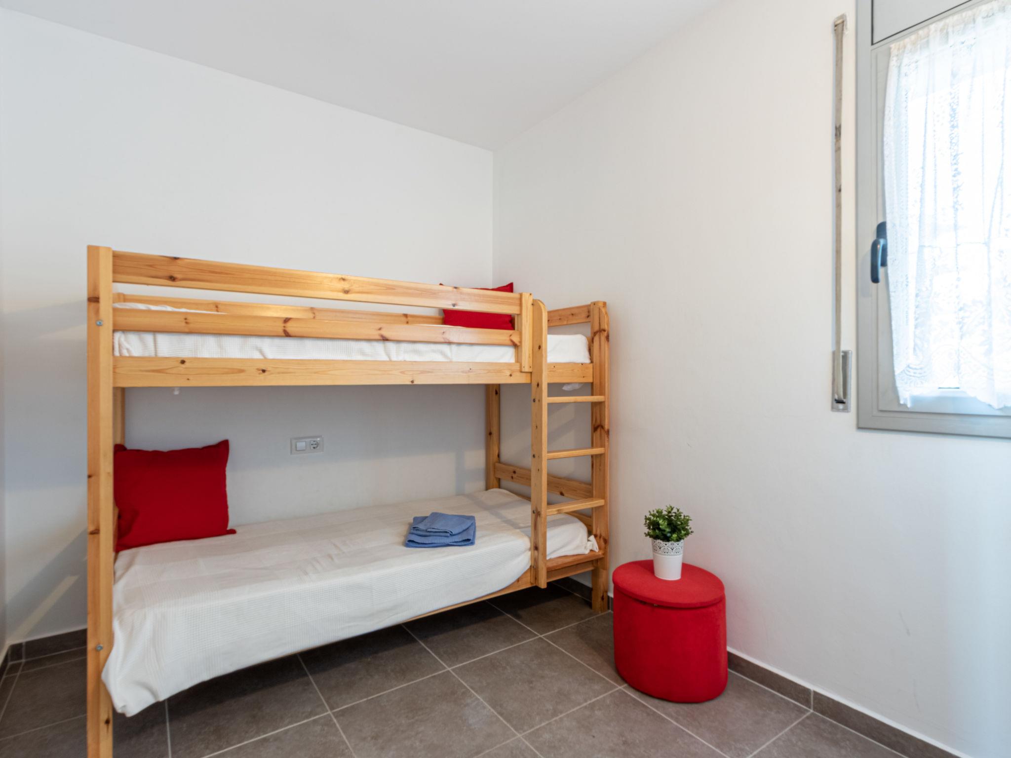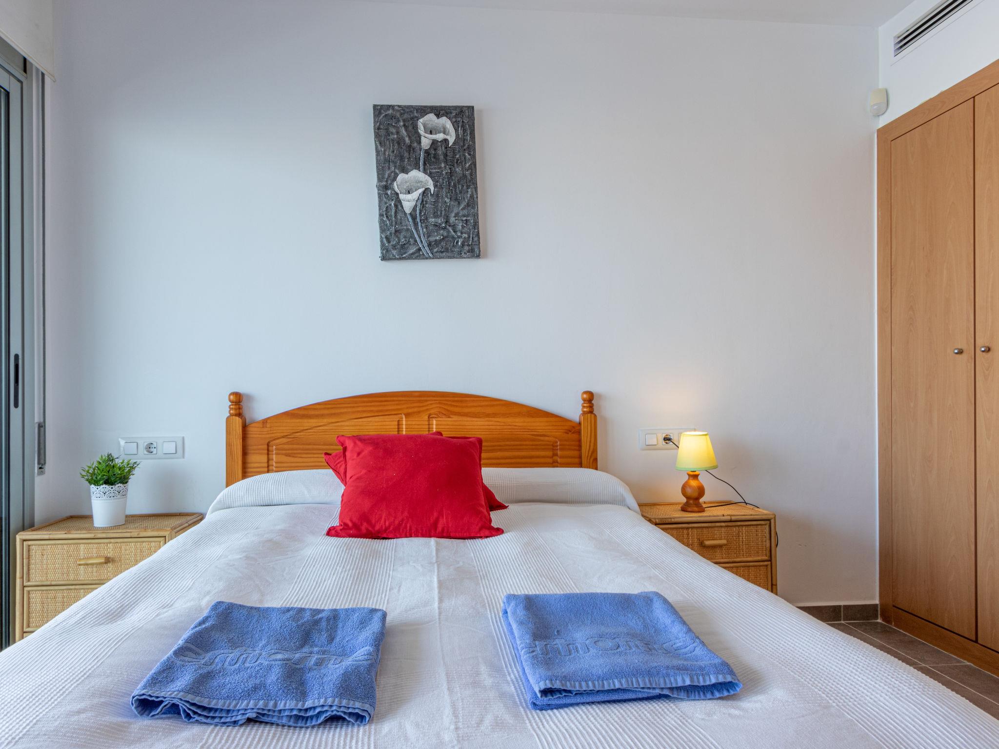 3-room apartment 52 m2 on 2nd floor, south-west facing position. Practical furnishings: living/dining room with TV. Exit to the balcony. 1 room with 1 french bed (135 cm). Exit to the balcony. 1 room with 1 x 2 bunk beds (90 cm). Open kitchen (3 hot plates, oven, dishwasher, microwave, freezer). Shower/WC. No heating option. Balcony 12 m2. Terrace furniture. Marvellous panoramic view of the swimming pool, the countryside and the canal. Facilities: washing machine. Parking space n 29 (roofed). Please note: TV only ES, DE. HUTG003079 // Reg. Nr.: ESFCTU000017019000379559000000000000000000HUTG0030797
