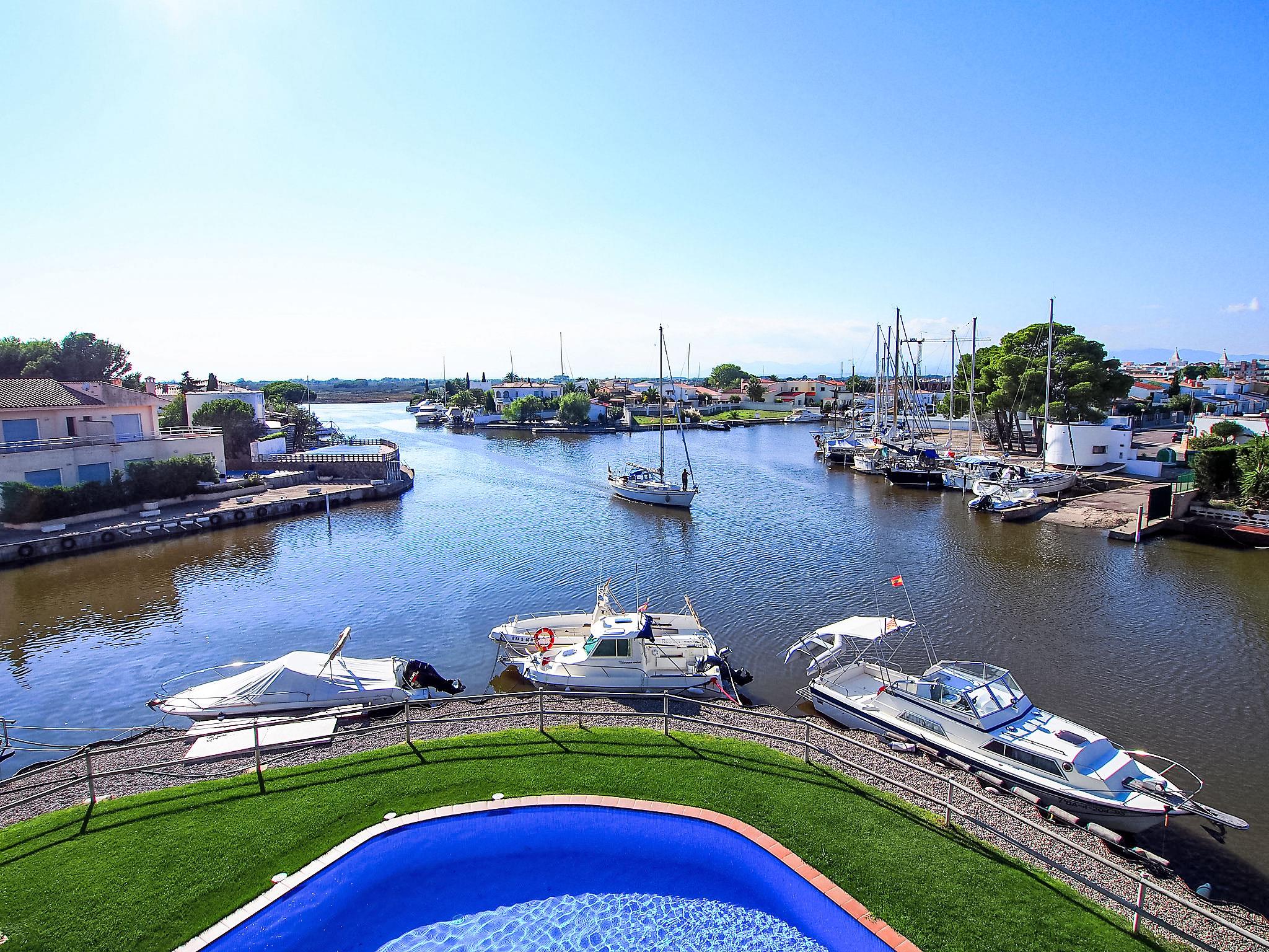 Santa Margarita: Large, modern, cosy apartment block "Cap Mestral", 5 storeys. In the district of Santa Margarita, 3 km from the centre of Roses, in a quiet, sunny position, traffic calmed area, 900 m from the sea, 900 m from the beach, directly by the canal, in a cul-de-sac, south-west facing position. For shared use: large, beautiful, well-kept garden (fenced) with lawn, 3 swimming pools (100 m2, seasonal availability: 01.Jun. - 30.Sep.). In the house: lift. Parking, communal covered parking. Grocery 500 m, supermarket, shopping centre 1 km, restaurant 500 m, bar, bus stop 1 km, sandy beach "Santa Margarita" 900 m, diving center 1 km. Sports harbour 4 km, tennis 1 km, minigolf 1 km. Nearby attractions: Parque Acuático Aquabrava Roses 1.5 km, Túnel del viento y Skydive Empuriabrava 5.6 km, Museo Dalí Figueres 19 km, Castillo y festival de Perelada 20 km, Monasterio de Sant Pere de Rodes 19 km, Ruinas de St. Martí de Empuries 27 km. Please note: suitable for families. The keys‘ handover takes place by the agency -------- in Roses.