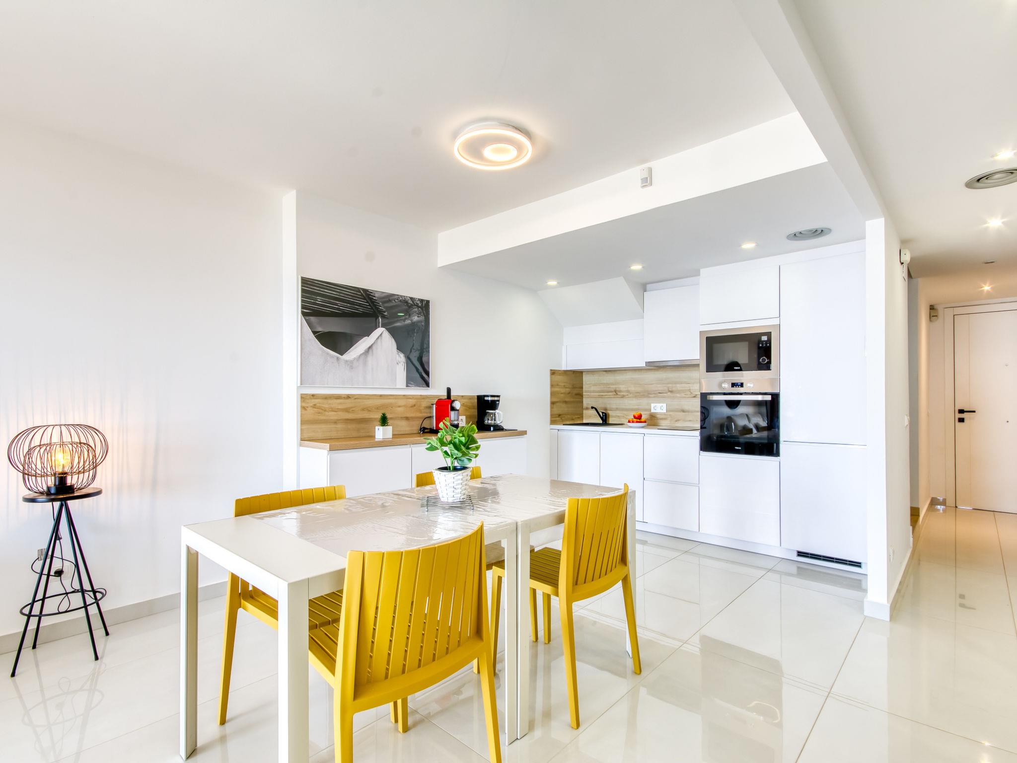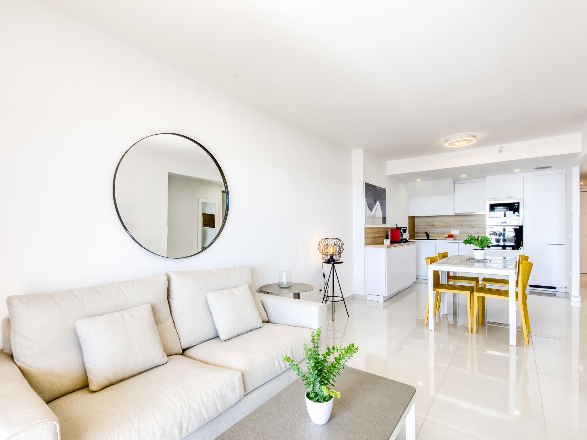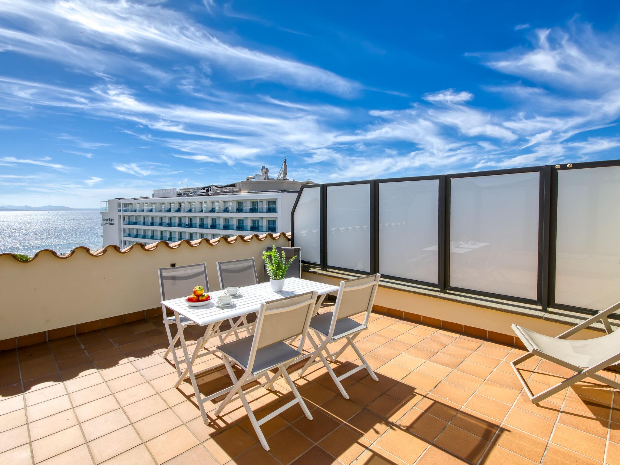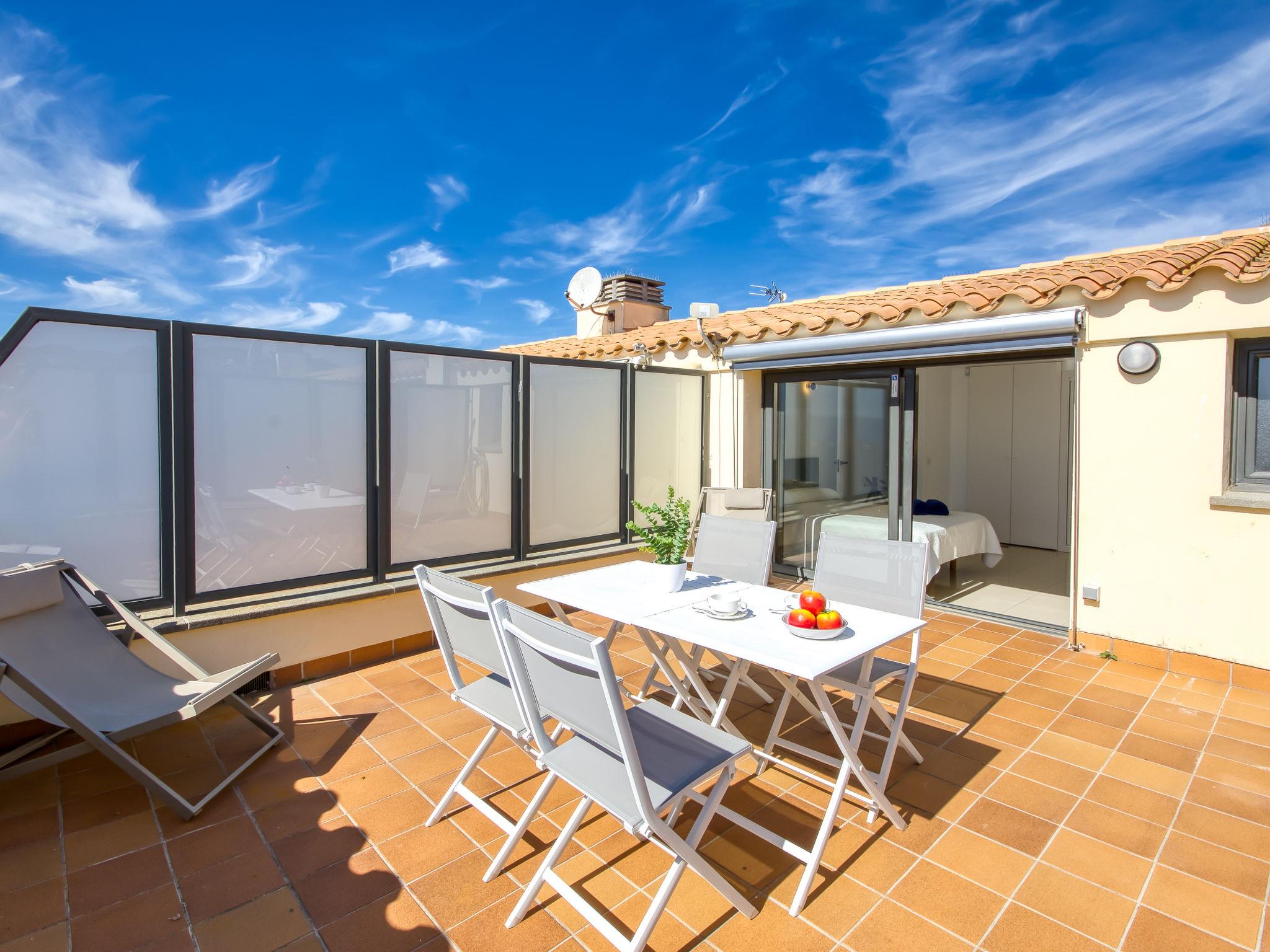 3-room apartment 70 m2 on 2 levels on 4th floor, south facing position. Spacious and bright, modern and cosy furnishings: living/dining room with dining table, satellite TV and digital TV (flat screen), air conditioning. Exit to the terrace, south facing position and west facing position. 1 room with 1 french bed (160 cm, length 190 cm). Kitchen (oven, dishwasher, 4 ceramic glass hob hotplates, microwave, freezer, electric coffee machine). Bath/WC. No heating option. Upper floor: 1 large room with 1 bed (90 cm, length 190 cm), 1 french bed (160 cm, length 190 cm), bath/WC. Exit to the terrace. Large balcony 15 m2, south facing position and west facing position, large terrace 20 m2, south facing position and west facing position. Terrace furniture. Marvellous panoramic view of the sea. Facilities: washing machine, iron. Internet (WiFi, free). Garage space n 73. Please note: TV only FR, ES. Animals are not accepted in the pool or in community areas. HUTG013467 // Reg. Nr.: ESFCTU000017019000011589000000000000000000HUTG0134675