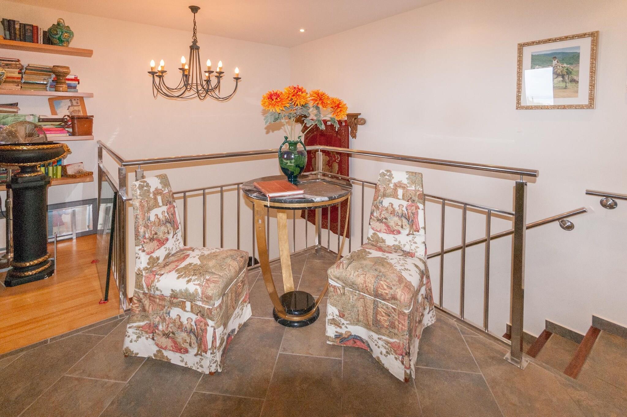 Stueetage: (sofastue(Fjernsyn, pejs, sofahjørne, klimaanlæg), Køkken(kogeplade(Komfur med fire kogeplader), elkedel, kaffemaskine, opvaskemaskine , køleskab), soveværelse(enkeltseng(90 x 200 cm), enkeltseng(90 x 200 cm), klimaanlæg), Soveværelse med badeværelse(dobbeltseng(180 x 190 cm), badekar, håndvask, toilet, klimaanlæg), badeværelse(bruser, håndvask, toilet), garage, vaskemaskine, terrasse(privat), have(privat, indhegnet, ikke anlagt have), havemøbler, swimmingpool(privat, indhegnet)) På 1. etage: (åbent køkken(Fjernsyn, spisebord, pejs, sofahjørne, kogeplade(induktion), elkedel, kaffemaskine, ovn, opvaskemaskine , køleskab, vaskemaskine, klimaanlæg), soveværelse(enkeltseng(90 x 200 cm), enkeltseng(90 x 200 cm), klimaanlæg), soveværelse(køjeseng, klimaanlæg), badeværelse(bruser, håndvask, toilet), terrasse(privat)) Gæsteophold Stueetage: (Køkken(spisebord(2 personer), kogeplade(Komfur med fire kogeplader), elkedel, kaffemaskine, køleskab, klimaanlæg), soveværelse(dobbeltseng(180 x 200 cm)), badeværelse(bruser, håndvask, toilet, bidet)) mikrobølgeovn, badekar eller bruser, vaskemaskine, varme, solstole, grill, liggestole, Parasol, swimmingpool(privat), barneseng, strygebræt, hyggespil