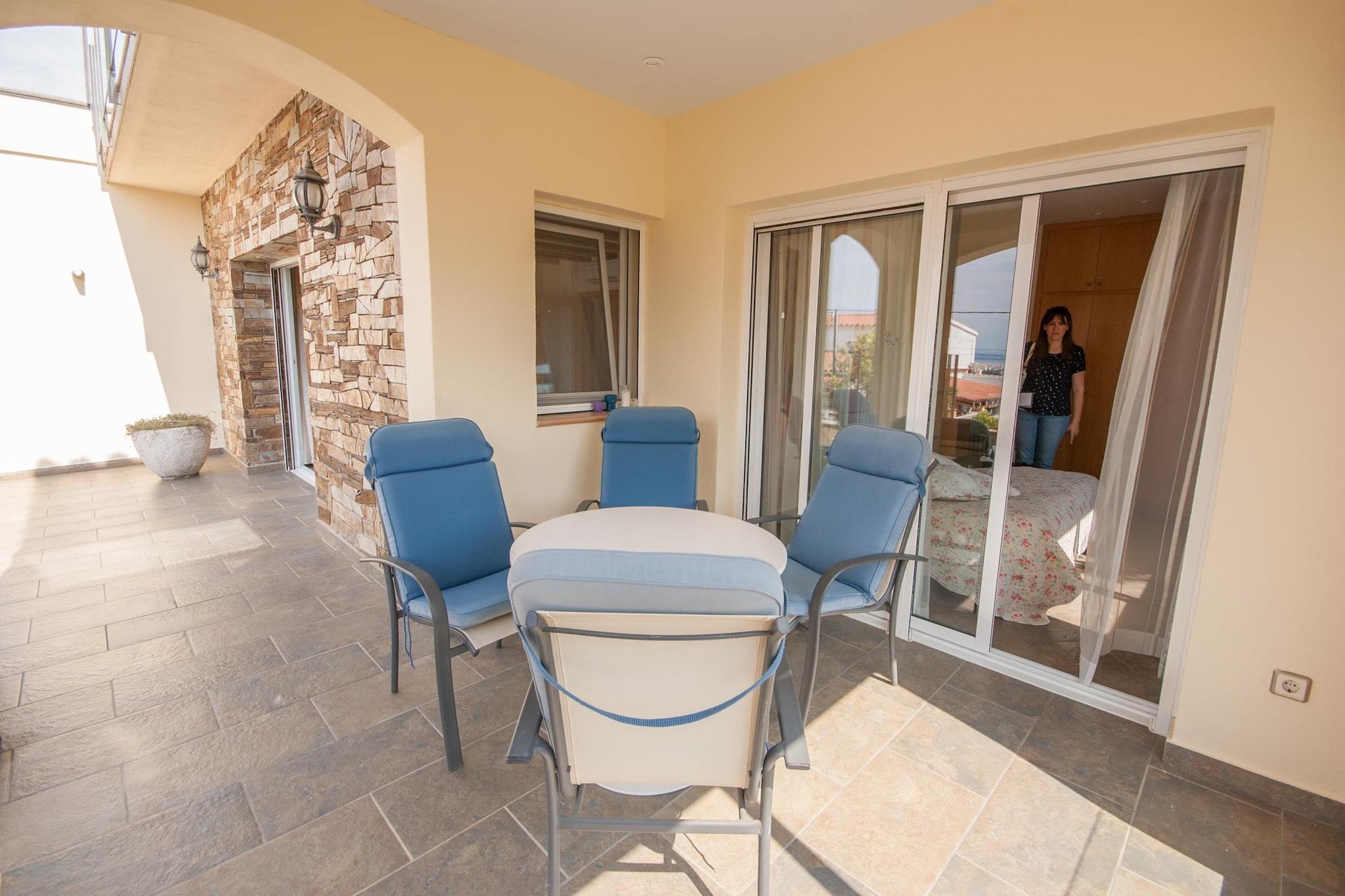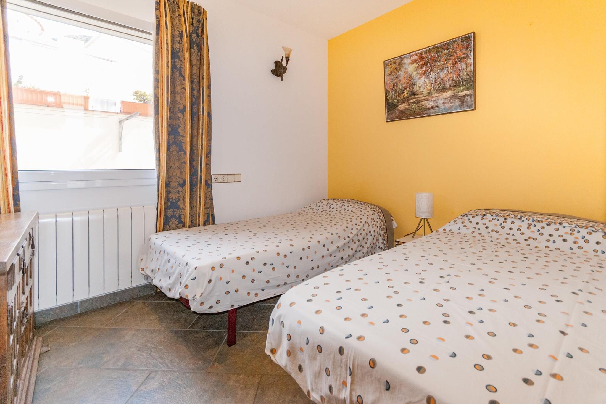 Rummelig villa med udsigt Denne indbydende villa med 5 soveværelser ligger på de naturskønne skråninger af Mas Fumats og kombinerer rustik charme med moderne komfort. Fordelt på et hovedhus og gæsteplads tilbyder det overnatning for op til 10 gæster, hvilket gør det ideelt for familier og små grupper. Den private indhegnede pool, have med liggestole og overdækket terrasse giver en afslappende kulisse til udendørs eftermiddage, mens de indendørs rum har hyggelige pejse, aircondition og et fuldt udstyret køkken for et bekvemt ophold. Rolig og alligevel godt forbundet Villaens beliggenhed på en bjergskråning byder på en flot udsigt over Roses-bugten og Pyrenæernes foden, mens den stadig er tæt på hverdagens væsentlige ting. Skovture begynder kun 100 meter væk, og inden for 400 meter finder du et bageri og en restaurant. Det livlige centrum af Roses, med dets strande, butikker og kulturelle steder, ligger kun 5 km væk, mens Girona-Costa Brava Lufthavn ligger inden for 50 km, hvilket gør ankomst og afgang let. Lokal spisning og opdagelse Roses er kendt for sit kystkøkken med alt fra familiedrevne tapasbarer til friske fiskerestauranter kun få minutter fra villaen. En kort køretur tager dig til Restaurant Pasko's for lokale catalanske smagsoplevelser, eller ind til byens centrum, hvor middelhavsrestauranter og aftenpromenader langs havnefronten venter. Uanset om du udforsker vandrestier, nyder stranddage eller nyder regionale retter, tilbyder denne villa en komfortabel og velplaceret base for dit ophold i Costa Brava.