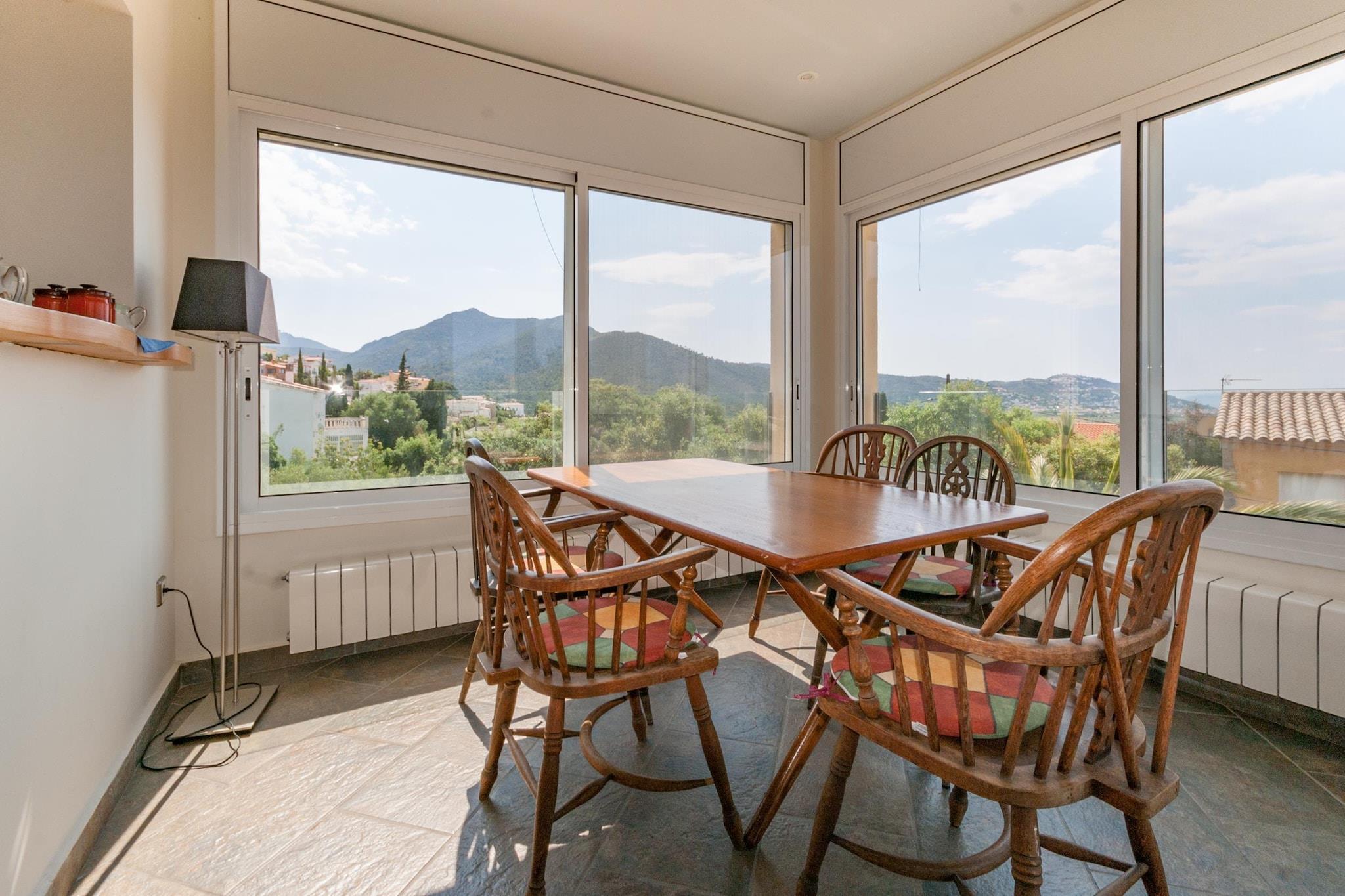 Rummelig Villa Escape Beliggende i Roses, denne indbydende villa kan rumme op til otte gæster fordelt på fire soveværelser. En privat pool, indhegnet have og møblerede terrasser inviterer dig til at slappe af udendørs, mens den hyggelige stue med pejs og aircondition sikrer komfort indendørs. Det moderne køkken, udstyret med opvaskemaskine, kaffemaskine og ovn, gør madlavningen ubesværet, ideel til familiemåltider før en dag med udforskning. Praktisk beliggenhed i nærheden Kun 100 m fra skoven er denne bolig perfekt til gåture i naturen. Sandstrandene og den livlige Roses-bugt er kun 5 km væk for sol og hav. Essentials er lige ved hånden med et bageri og supermarked kun 400 m fra dit dørtrin. Ved længere ophold er Roses centrum og turistinformationskontoret inden for rækkevidde. Girona-Costa Brava Lufthavn ligger 50 km derfra, mens Barcelona-El Prat ligger 160 km derfra, hvilket sikrer gode rejseforbindelser. Spisning og lokal smag Prøv lokale retter på Restaurant Pasko's, kun 400 m fra villaen, eller tag ind til Roses for en række restauranter, der serverer catalanske specialiteter og frisk fisk og skaldyr ved kysten. Efter en dag med sightseeing eller svømning kan du vende tilbage til dit private tilflugtssted, hvor du kan spise på terrassen, slappe af i poolen eller blot nyde privatlivets fred og komfort i dit eget rum.