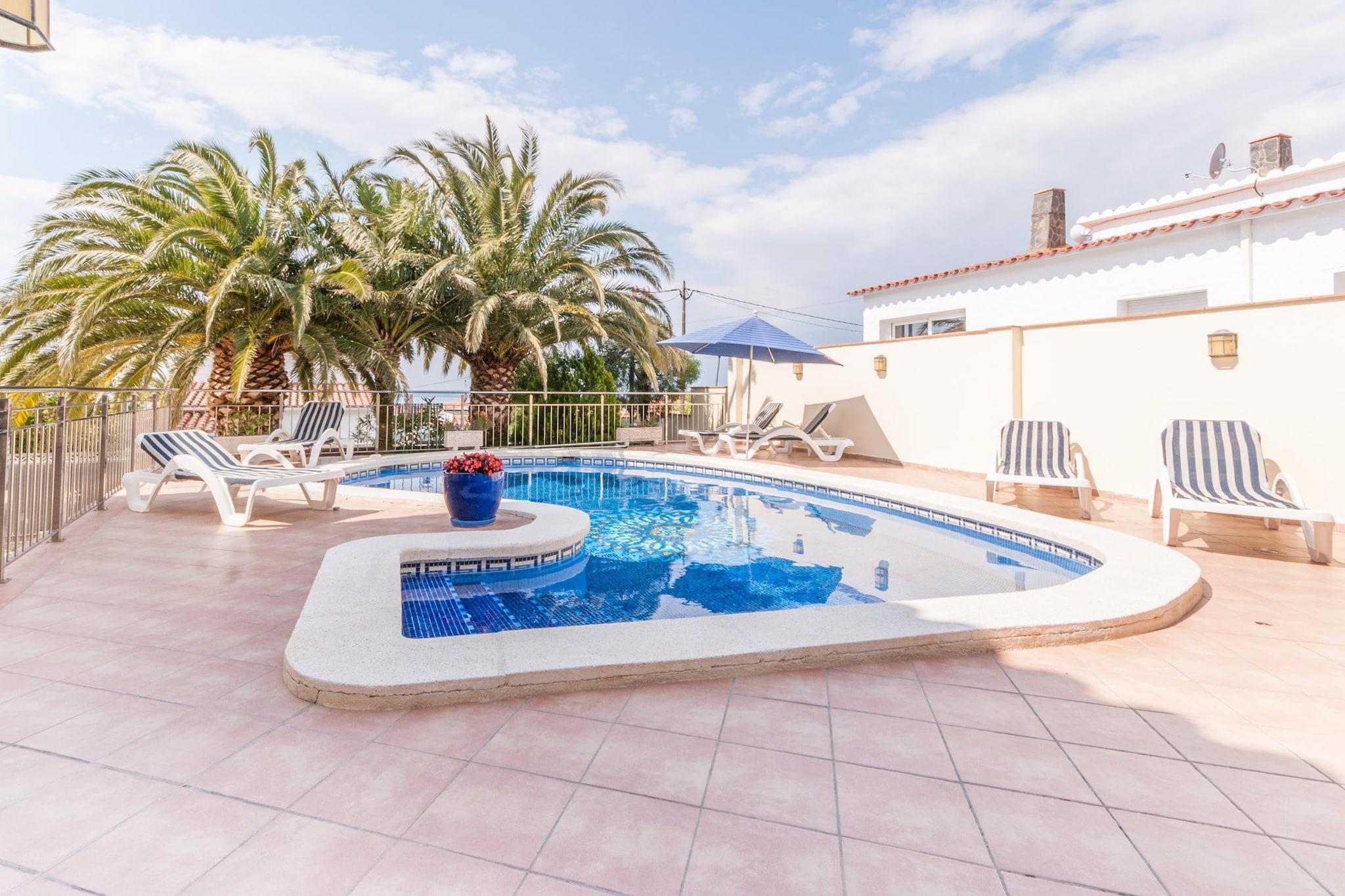 Stueetage: (sofastue(pejs, sofahjørne, klimaanlæg), Køkken(kogeplade(Komfur med fire kogeplader, glaskeramisk), elkedel, kaffemaskine, opvaskemaskine , køleskab), soveværelse(enkeltseng(90 x 200 cm), enkeltseng(90 x 200 cm), klimaanlæg), Soveværelse med badeværelse(dobbeltseng(180 x 190 cm), badekar, håndvask, toilet, klimaanlæg), badeværelse(bruser, håndvask, toilet), vaskemaskine, terrasse(privat), have(deles med andre gæster), havemøbler, swimmingpool(deles med andre gæster, indhegnet))