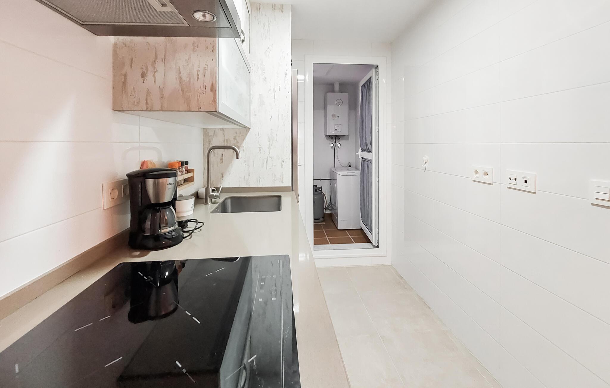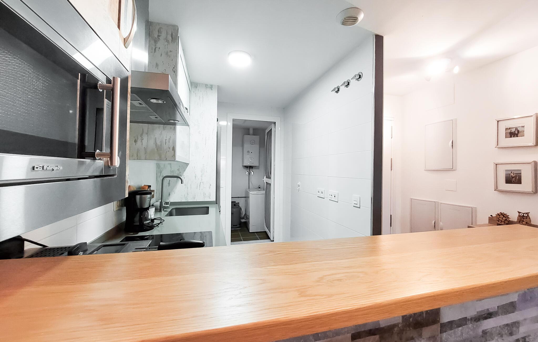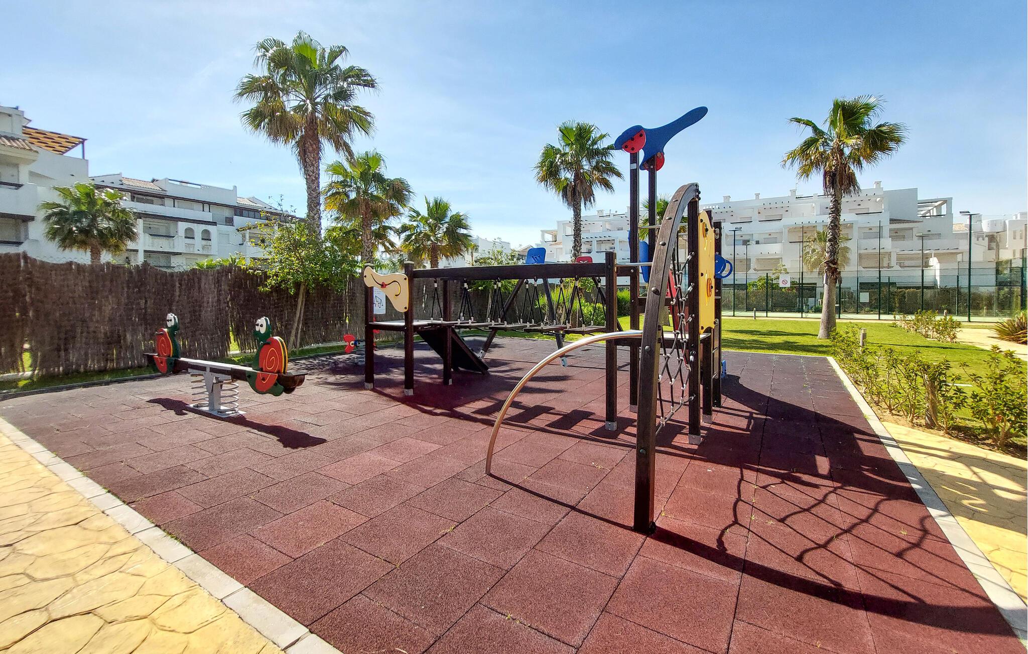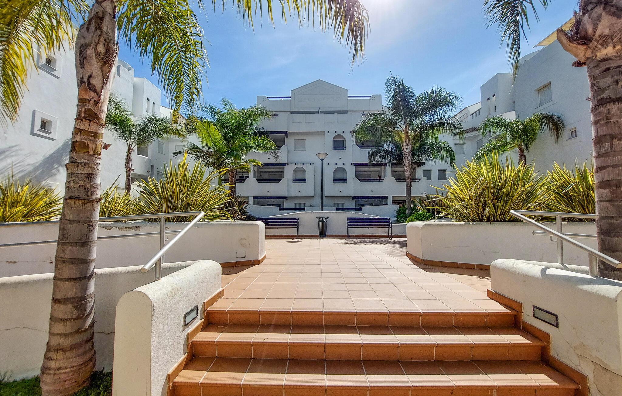 Gå en tur udenfor i skyggen af palmer, nyd solen ved poolen, og tag en forfriskende dukkert i det klare vand, lige når I har lyst. Og så er der kun få skridt ned til stranden. I nærheden af jeres lejlighed kan I spille golf og udforske flere gamle kirker samt fæstningen Castillo de Luna i Rota.