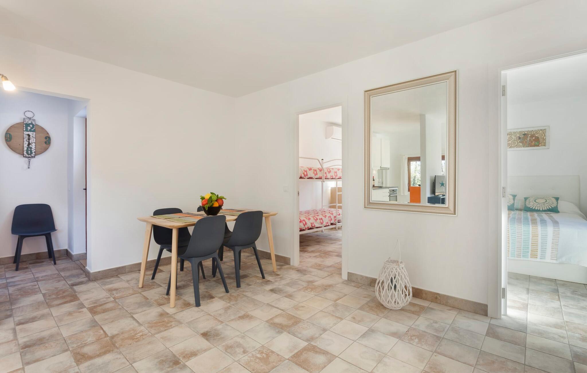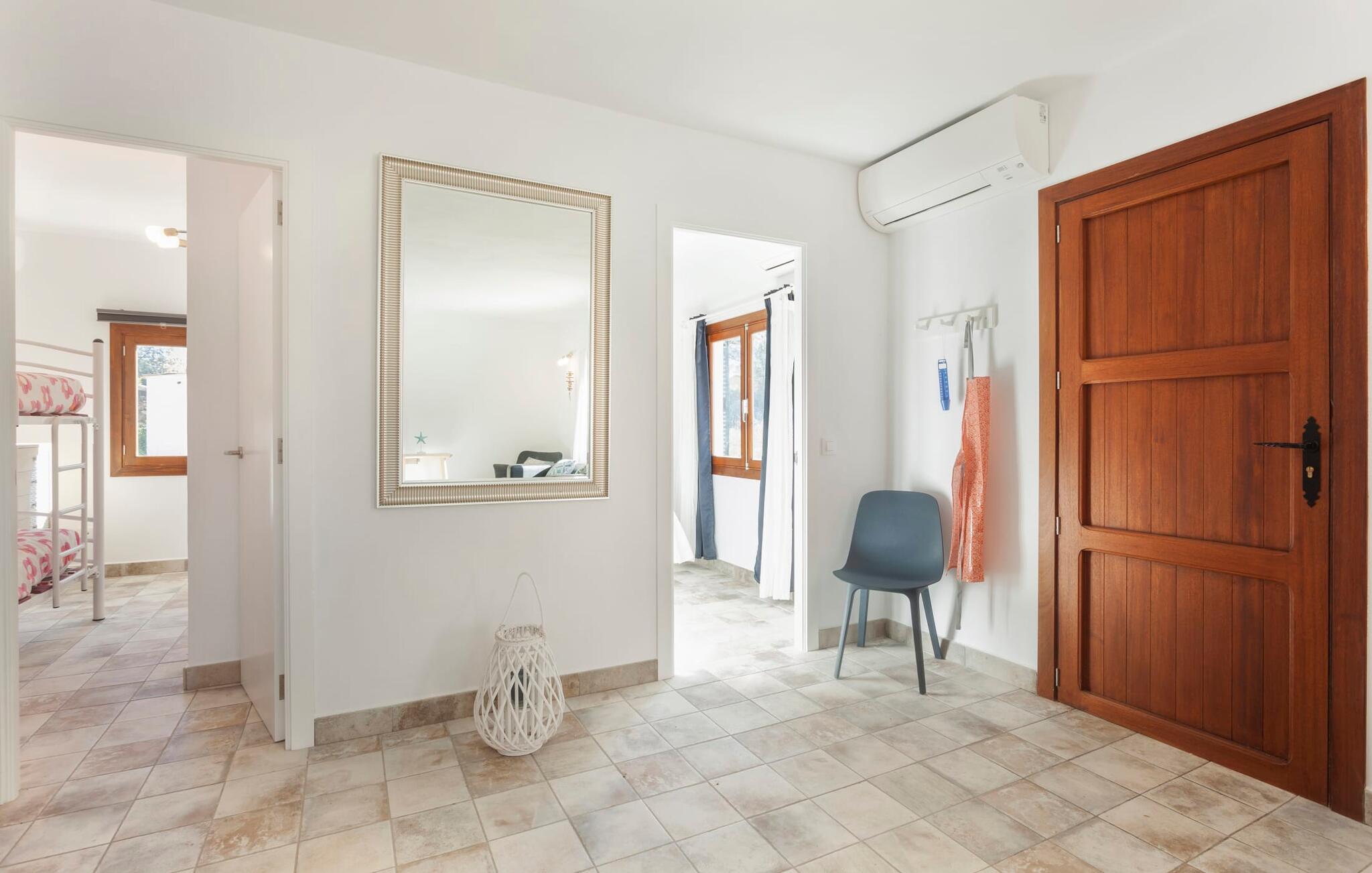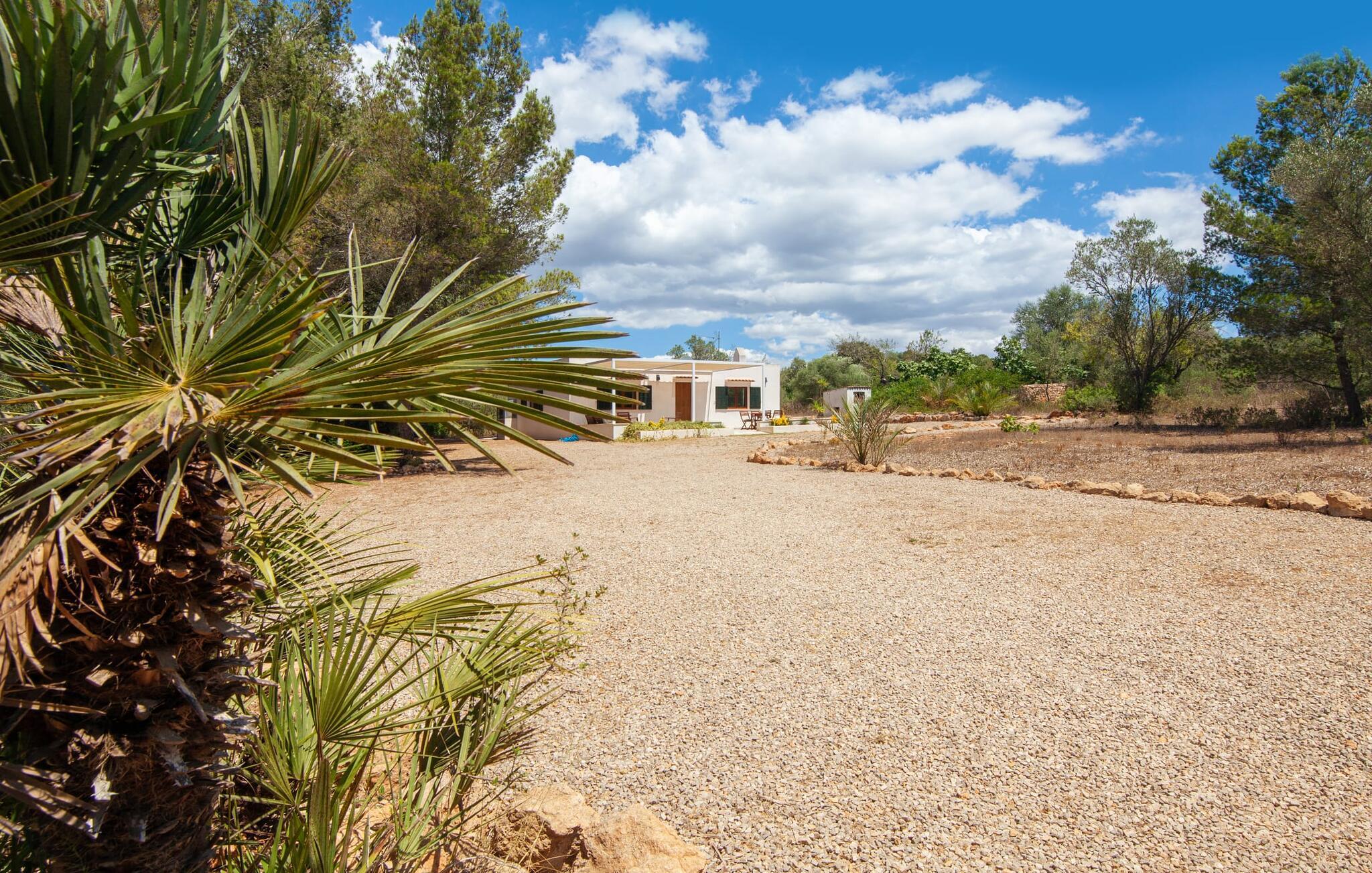 "Ruris" er mere end blot et sommerferiested. Fuldstændig renoveret i 2018, denne hvide ø-bungalow ligger på landet og tilbyder fred og plads. Omgivet af en 12.000 m² stor grund med massive stenbrud og grønne områder under knudrede træer, er ejendommen perfekt til familier. Børn kan slippe dampen ud med et bordtennisbord, mens voksne kan slappe af i skyggen eller slappe af ved den afsondrede pool. Som afveksling fra aftengrillen kan en picnic med lokale delikatesser fra det ugentlige marked varmt anbefales. Ejerne fokuserede på lyse, åbne rum for en afslappet ferieoplevelse med lav vedligeholdelse. Stuen, tekøkkenet (med komfur og opvaskemaskine) og terrassen flyder problemfrit ind i hinanden, når døren er åben. To soveværelser, det ene med en køjeseng, det andet med en 1,5 m dobbeltseng, er let tilgængelige fra hovedområdet. Det fælles badeværelse med sine livlige røde og lyserøde farver byder solen velkommen hver morgen og sætter tonen for jeres dag med udforskning. Villaen ligger kun 5 km fra Algaidas butikker og tilbyder komfort uden at ofre privatlivets fred. Den hvide, luftige bungalow er omgivet af grønne områder, kun få kilometer fra Algaida og tilbyder fremragende forbindelser til Palma, hovedstadens strande og Manacor. Ugentlige markeder og supermarkeder, restauranter, en golfbane samt værdifulde vandreture, cykelture og udflugter er i umiddelbar nærhed og bidrager til dette steds tiltrækningskraft.