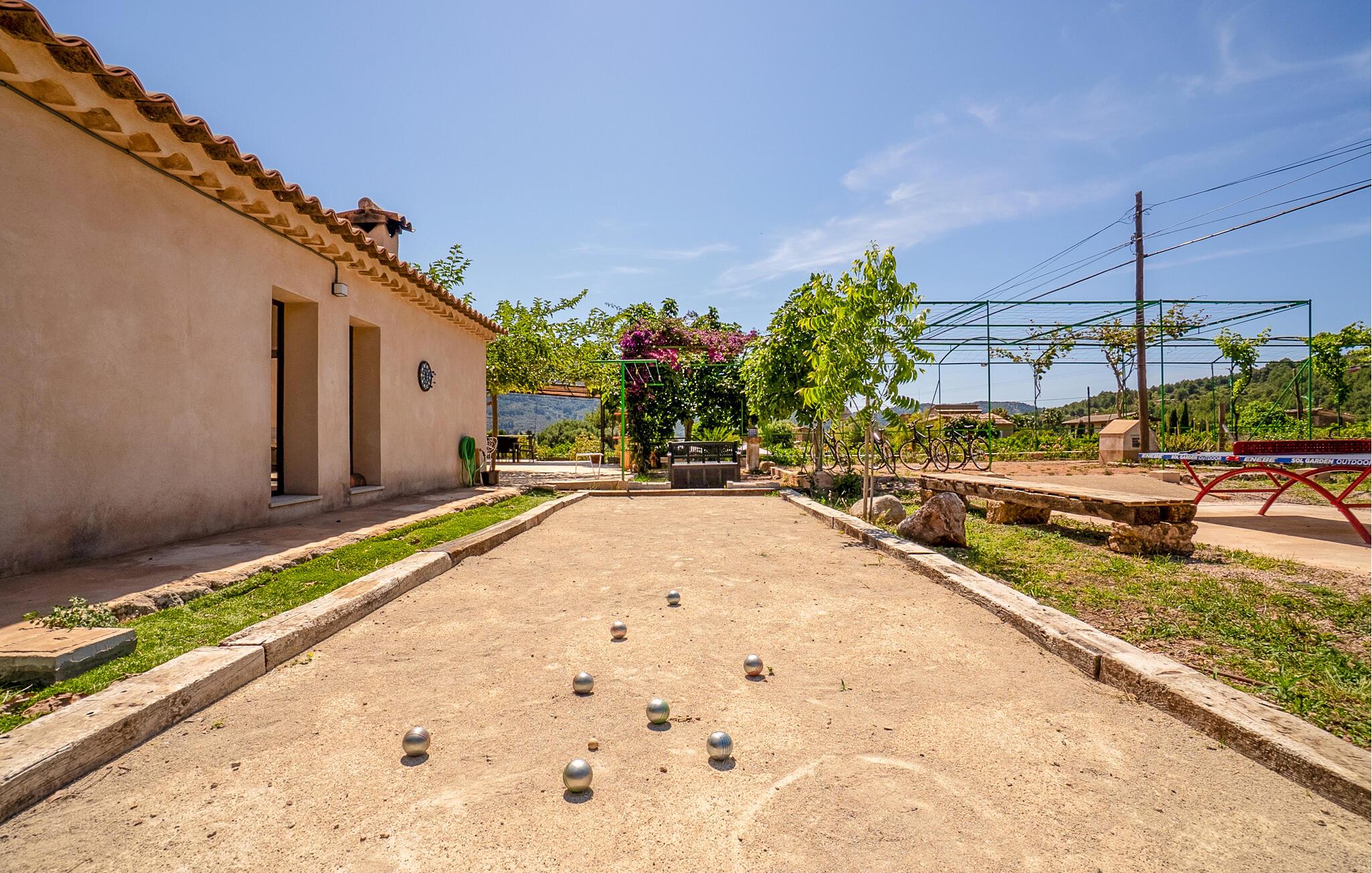 Det alsidige, velholdte udendørsområde fortryller med en vidunderlig pool, en solrig terrasse og afsondrede retreater. Forkæl jer selv med lidt hvile på liggestolen og lad jer fortrylle af duften af ??appelsinblomst. børnene vil nyde de charmerende legefaciliteter og den lille, nærliggende indhegning med yndige geder og kaniner.