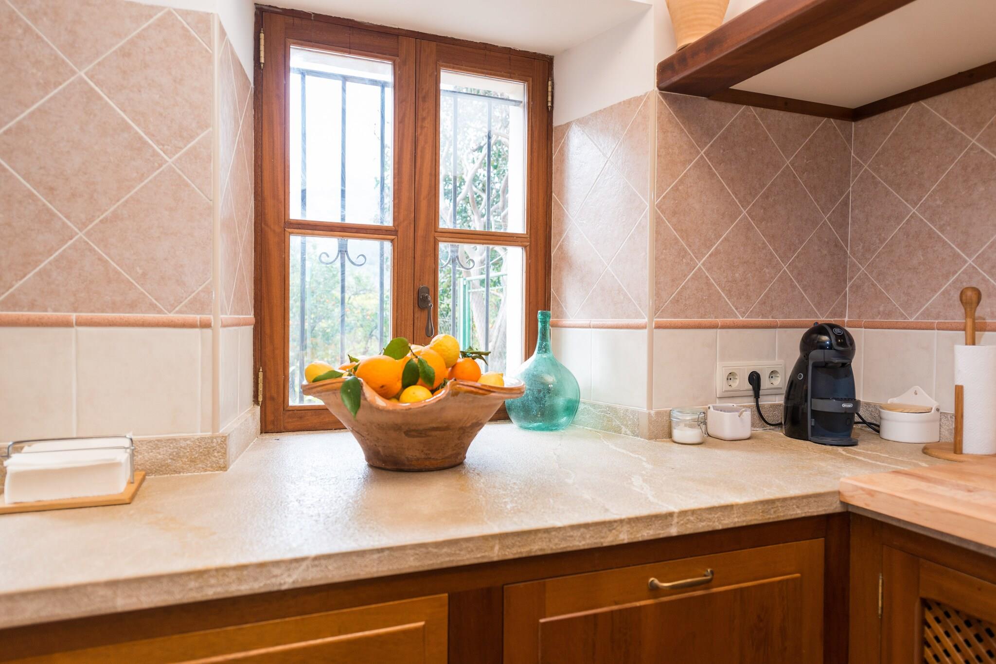 Dette smukke hus byder på en stor terrasse, perfekt til lange morgenmad eller dejlige grillmiddage med et glas vin, alt imens du nyder en fantastisk udsigt over det omkringliggende landskab. Boligen på 200 m² er fordelt på tre etager. Stueetagen har et rummeligt køkken med direkte adgang til terrassen, udstyret med en elektrisk ovn, vitro-komfur, opvaskemaskine og alle de redskaber, der er nødvendige for madlavningsentusiaster. Den hyggelige stue og spisestue med aircondition og satellit-tv giver et behageligt sted til afslapning eller filmaftener. Der er også et badeværelse med bruser og et vaskerum med vaskemaskine, strygejern og strygebræt på dette niveau. På mellemplan, kun et par trin op, er det første soveværelse med dobbeltseng og aircondition. Første sal har yderligere to soveværelser, begge med aircondition. Den ene har en dobbeltseng og et privat badeværelse med bruser og badekar. På tredje sal er der endnu et soveværelse med dobbeltseng. Alle soveværelser er udstyret med skabe. En barneseng og høj stol kan stilles til rådighed efter anmodning. Landsbyen ligger kun 500 meter væk, hvor du kan besøge den historiske Sant Bartomeu-kirke (bygget i 1236), udforske lokale butikker og nyde restauranter, der serverer frisk fisk og skaldyr. Du kan tage sporvognen til Port de Sóller, slappe af ved Es Repic-stranden eller opdage smukke vandrestier til charmerende landsbyer som Deià, Fornalutx og Biniaraix. Palma og naturskønne bugter som Cala Deià og Llucalcari er let tilgængelige. Som reaktion på Coronavirus (COVID-19) er yderligere sikkerheds- og sanitetsforanstaltninger i kraft på denne ejendom. Turistlicens: ETV/8678 Kæledyr er ikke tilladt. Arrangementer er forbudt. (turistskat) gælder, betales på stedet. Det indhegnede område med appelsintræer er ikke tilgængeligt for gæster.