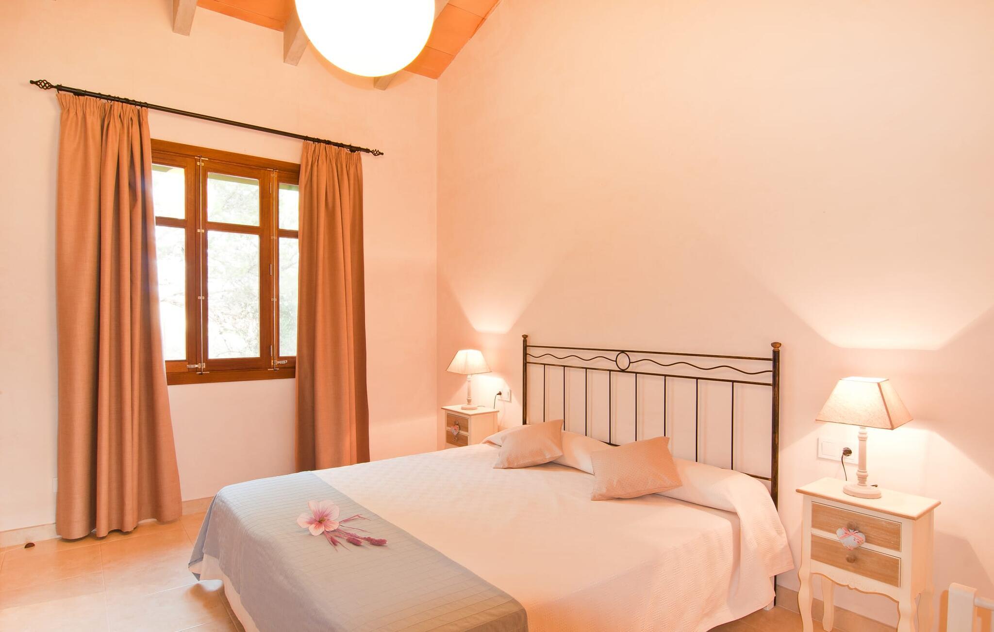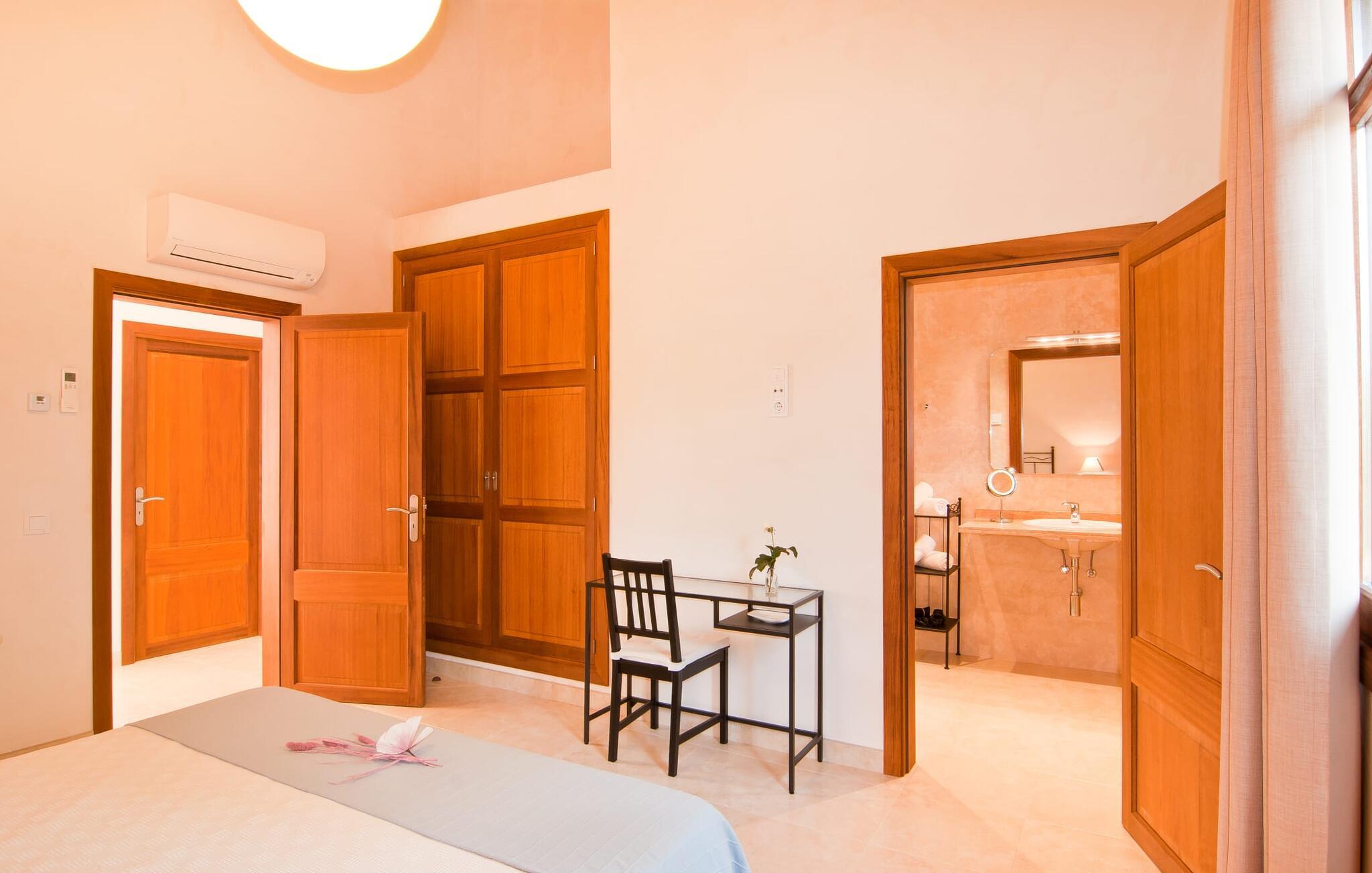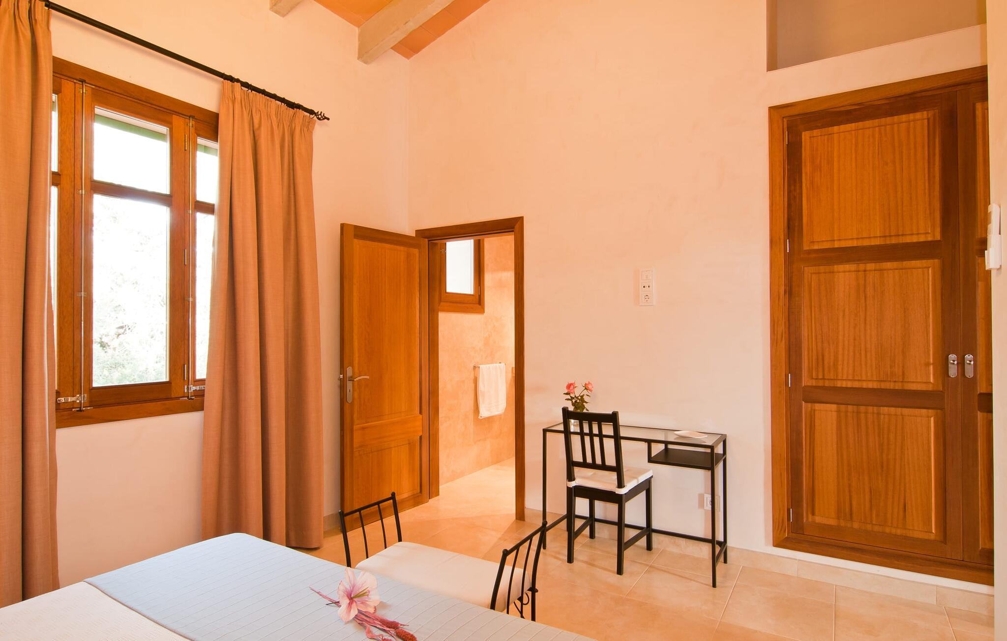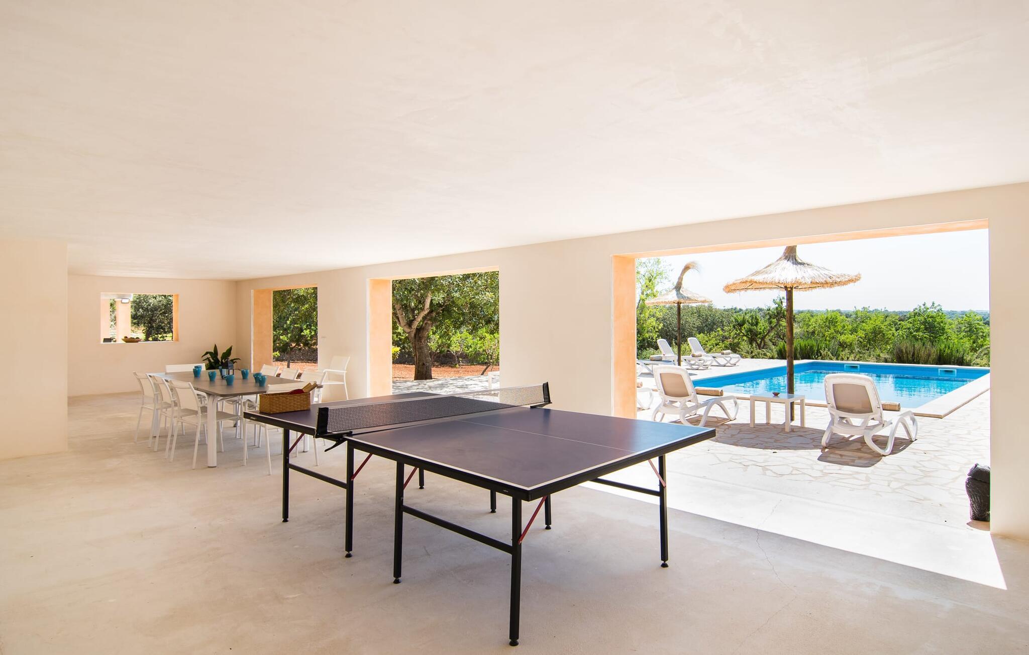 Villaen "S'Alzina" byder på det højeste niveau af ro og ligger i en landlig beliggenhed med store terrasser og grusarealer, der er perfekte til afslapning. Den lokkende pool, solterrasse og skyggefulde spiseplads inviterer til lange timers nydelse, med et udendørs køkken, der er ideelt til grillning. Der er også parkering til flere biler. Indvendigt komplementerer moderne, elegant design de rolige omgivelser med en stue og et smart køkken, fire soveværelser, alle med en-suite badeværelser, og et gæstetoilet. På øverste etage er der endnu et soveværelse med eget badeværelse og terrasse. Villaen er beliggende i en behagelig rolig beliggenhed kun ca. 6 km sydøst for Campos på den sydlige del af øen. I den lille by finder I barer, restauranter og butikker til jeres daglige behov, og der er også et malerisk marked om lørdagen. Santanyi ligger cirka 15 minutter væk i bil, og Es Trenc-stranden ligger cirka 17 km væk. Andre perler som Cala Llombards, Cala Mondrago eller Cala Santanyi inviterer jer til at tilbringe dovne dage i solen. Havnelandsbyen Colonia de Sant Jordi ligger cirka 25 minutter væk i bil. Vi anser denne bolig for at være tilgængelig for vores gæster med nedsat mobilitet, men vi opfordrer alle gæster til at tjekke boligens egnethed ud fra deres egne behov. Bemærk venligst, at denne ejendom ikke accepterer ungdomsgrupper eller polterabender. En ungdomsgruppe på denne ejendom består af personer under 25 år. Book ikke denne ejendom, hvis I er en ungdomsgruppe eller polterabend, da jeres reservation vil blive afvist, når den er booket, hvilket kan være ved ankomsten til ejendommen eller under jeres ophold, og I vil ikke modtage en refusion.