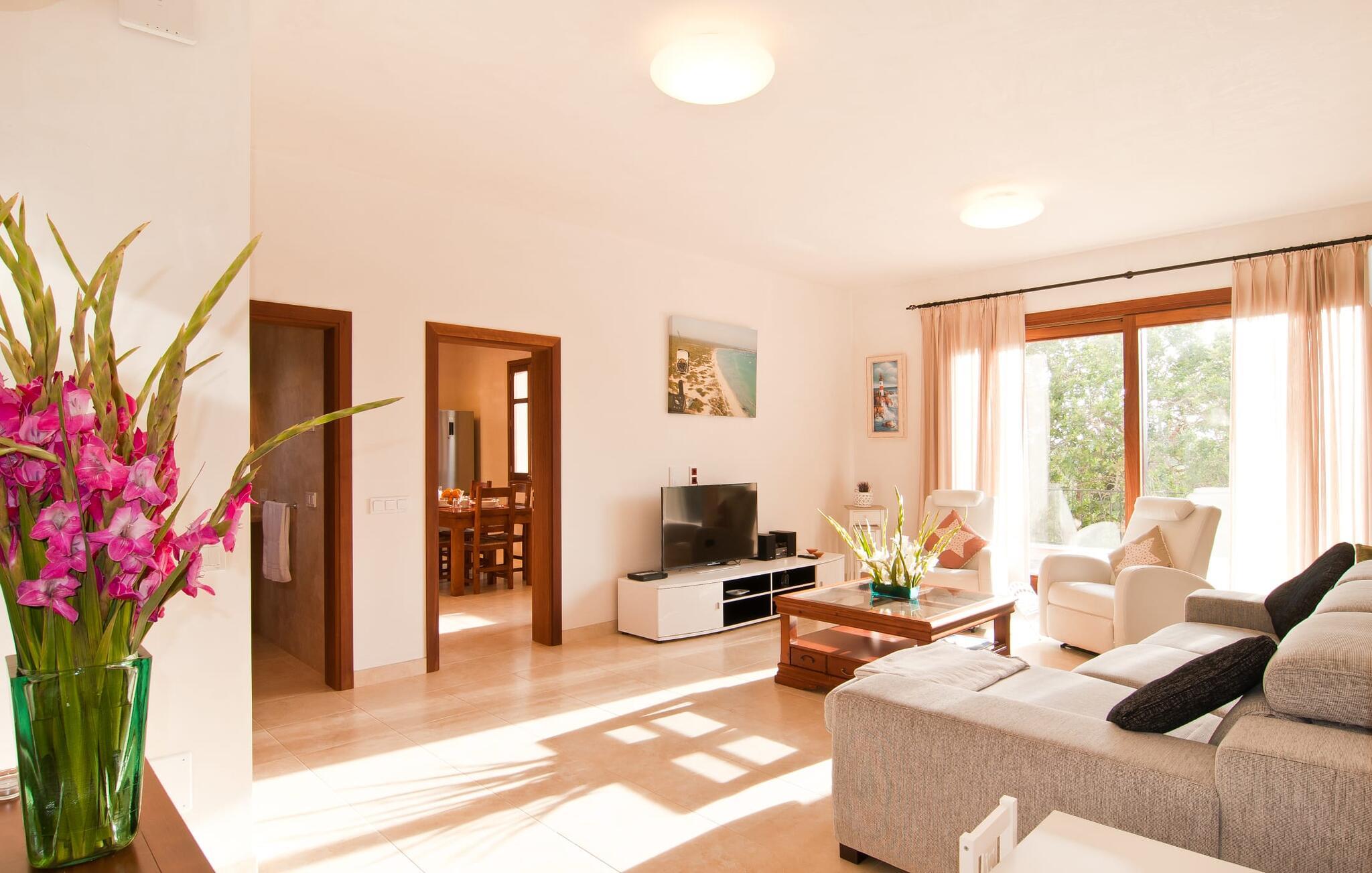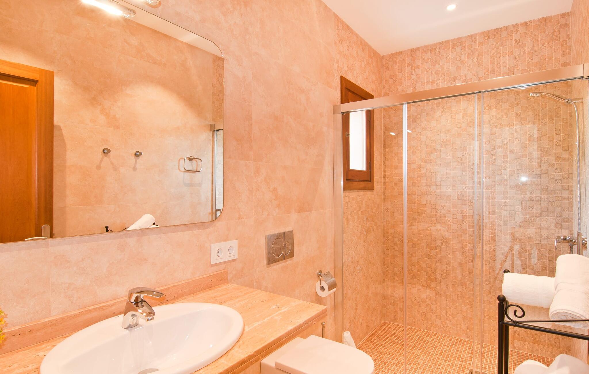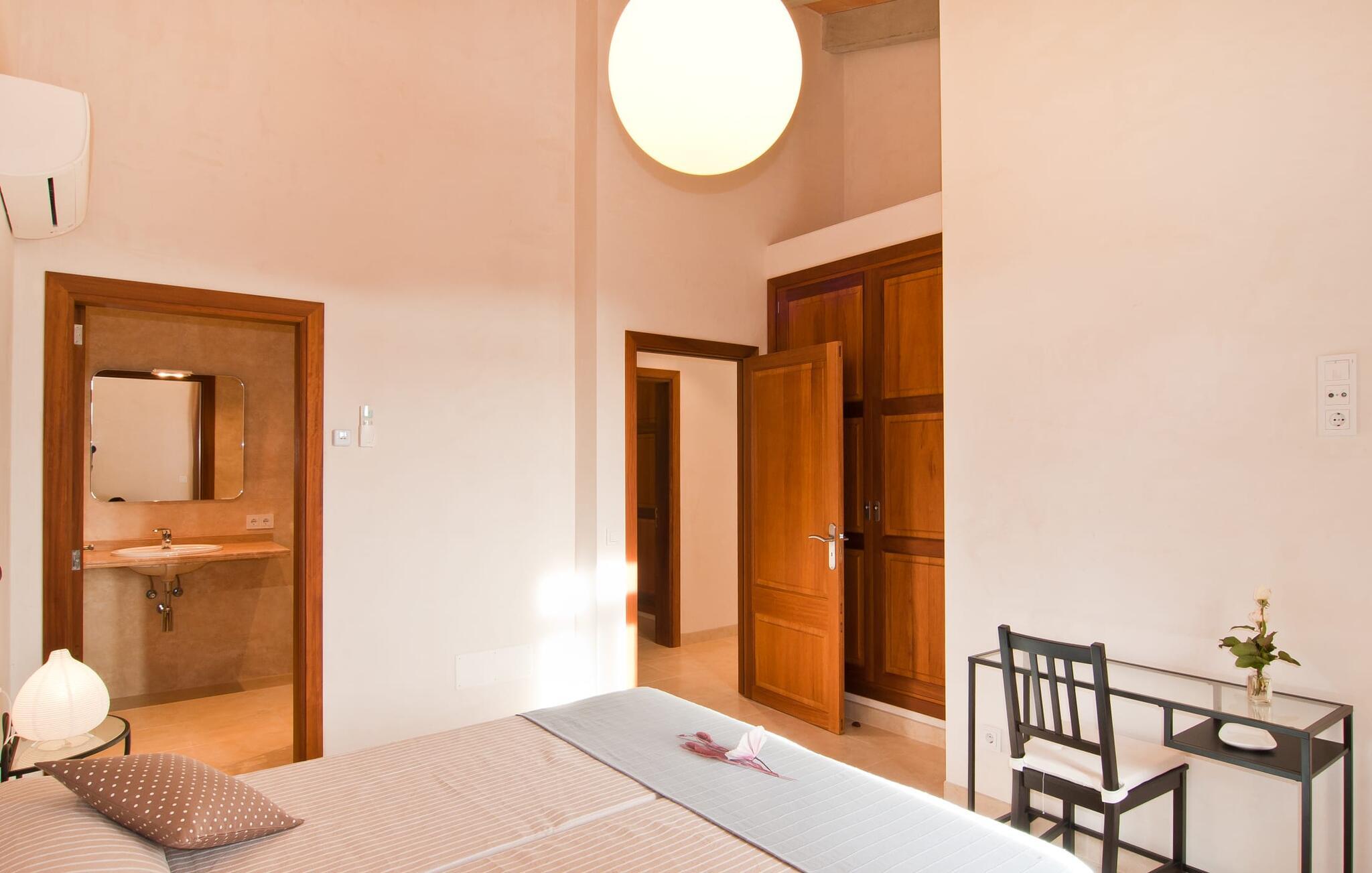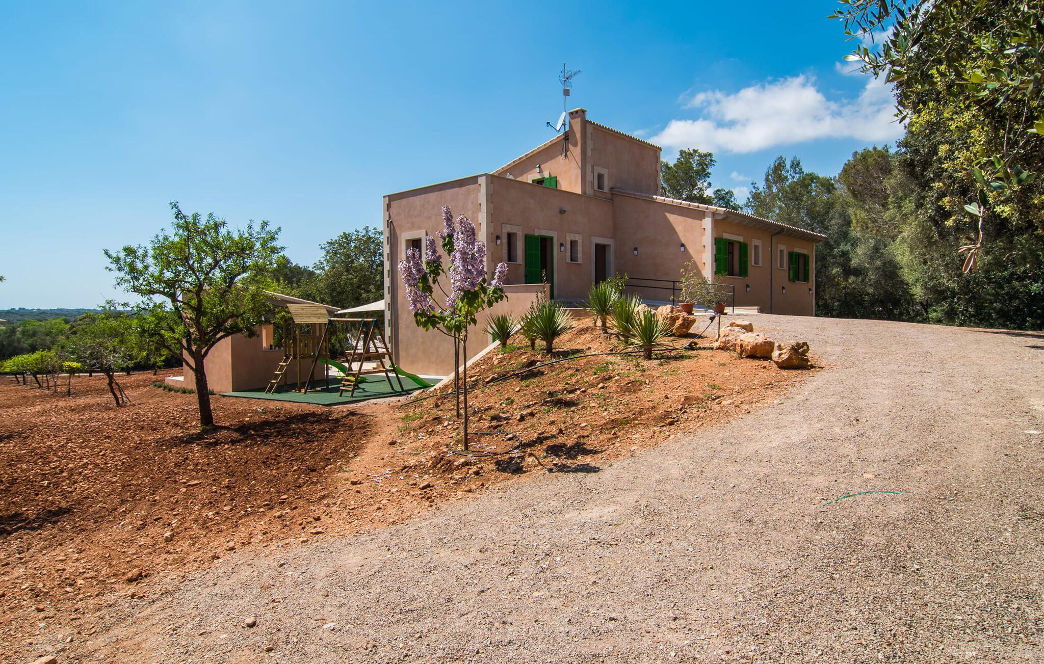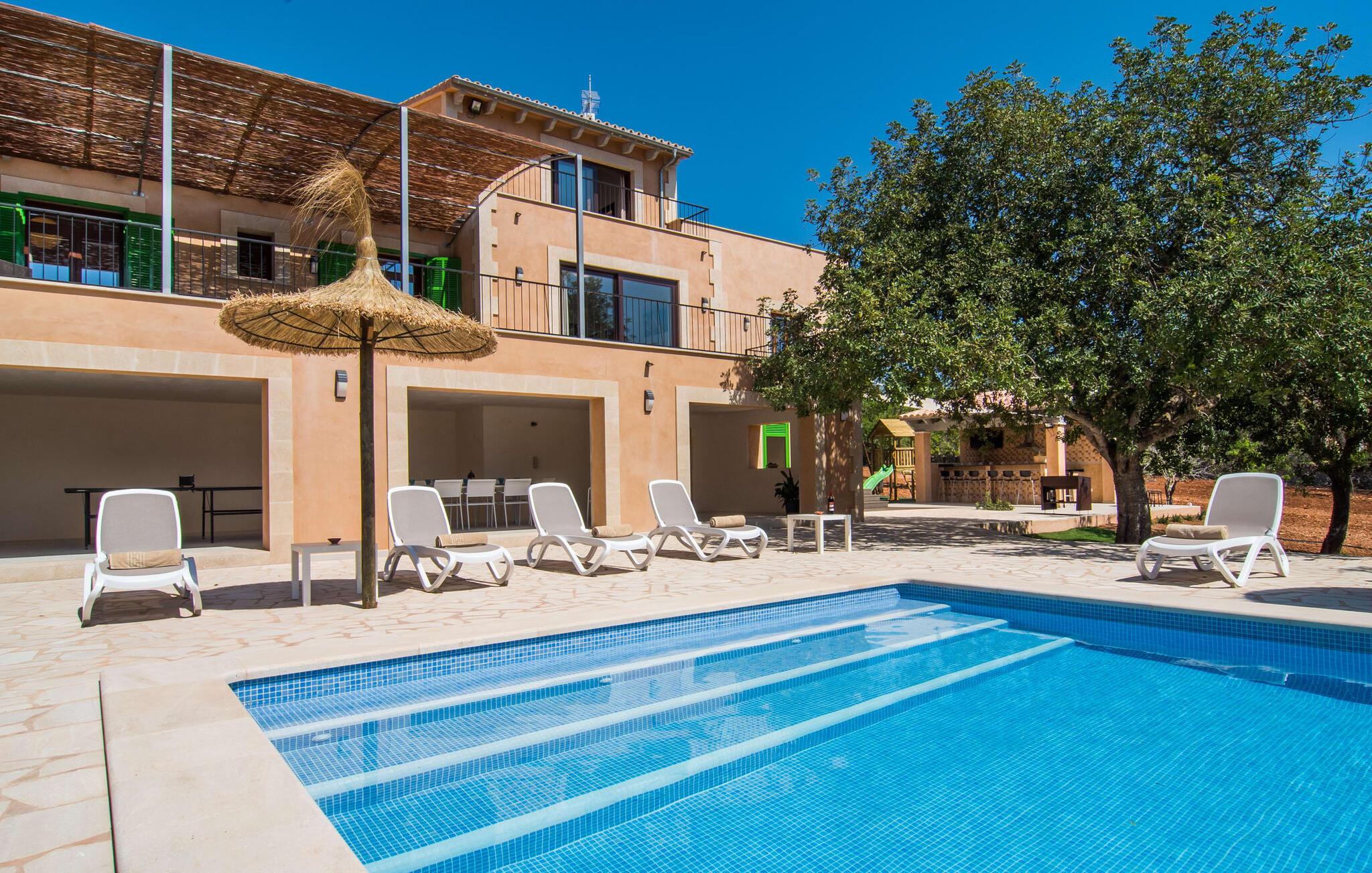 Villaen "S'Alzina" byder på det højeste niveau af ro og ligger i en landlig beliggenhed med store terrasser og grusarealer, der er perfekte til afslapning. Den lokkende pool, solterrasse og skyggefulde spiseplads inviterer til lange timers nydelse, med et udendørs køkken, der er ideelt til grillning. Der er også parkering til flere biler. Indvendigt komplementerer moderne, elegant design de rolige omgivelser med en stue og et smart køkken, fire soveværelser, alle med en-suite badeværelser, og et gæstetoilet. På øverste etage er der endnu et soveværelse med eget badeværelse og terrasse. Villaen er beliggende i en behagelig rolig beliggenhed kun ca. 6 km sydøst for Campos på den sydlige del af øen. I den lille by finder I barer, restauranter og butikker til jeres daglige behov, og der er også et malerisk marked om lørdagen. Santanyi ligger cirka 15 minutter væk i bil, og Es Trenc-stranden ligger cirka 17 km væk. Andre perler som Cala Llombards, Cala Mondrago eller Cala Santanyi inviterer jer til at tilbringe dovne dage i solen. Havnelandsbyen Colonia de Sant Jordi ligger cirka 25 minutter væk i bil. Vi anser denne bolig for at være tilgængelig for vores gæster med nedsat mobilitet, men vi opfordrer alle gæster til at tjekke boligens egnethed ud fra deres egne behov. Bemærk venligst, at denne ejendom ikke accepterer ungdomsgrupper eller polterabender. En ungdomsgruppe på denne ejendom består af personer under 25 år. Book ikke denne ejendom, hvis I er en ungdomsgruppe eller polterabend, da jeres reservation vil blive afvist, når den er booket, hvilket kan være ved ankomsten til ejendommen eller under jeres ophold, og I vil ikke modtage en refusion.
