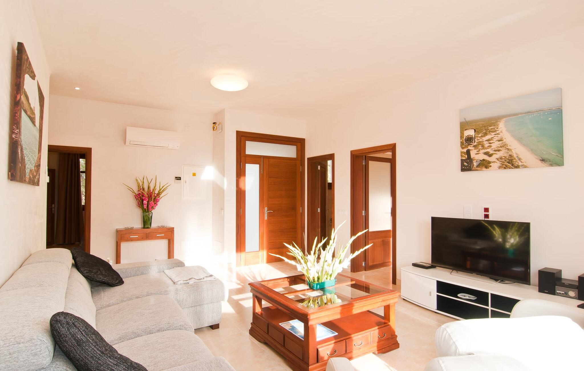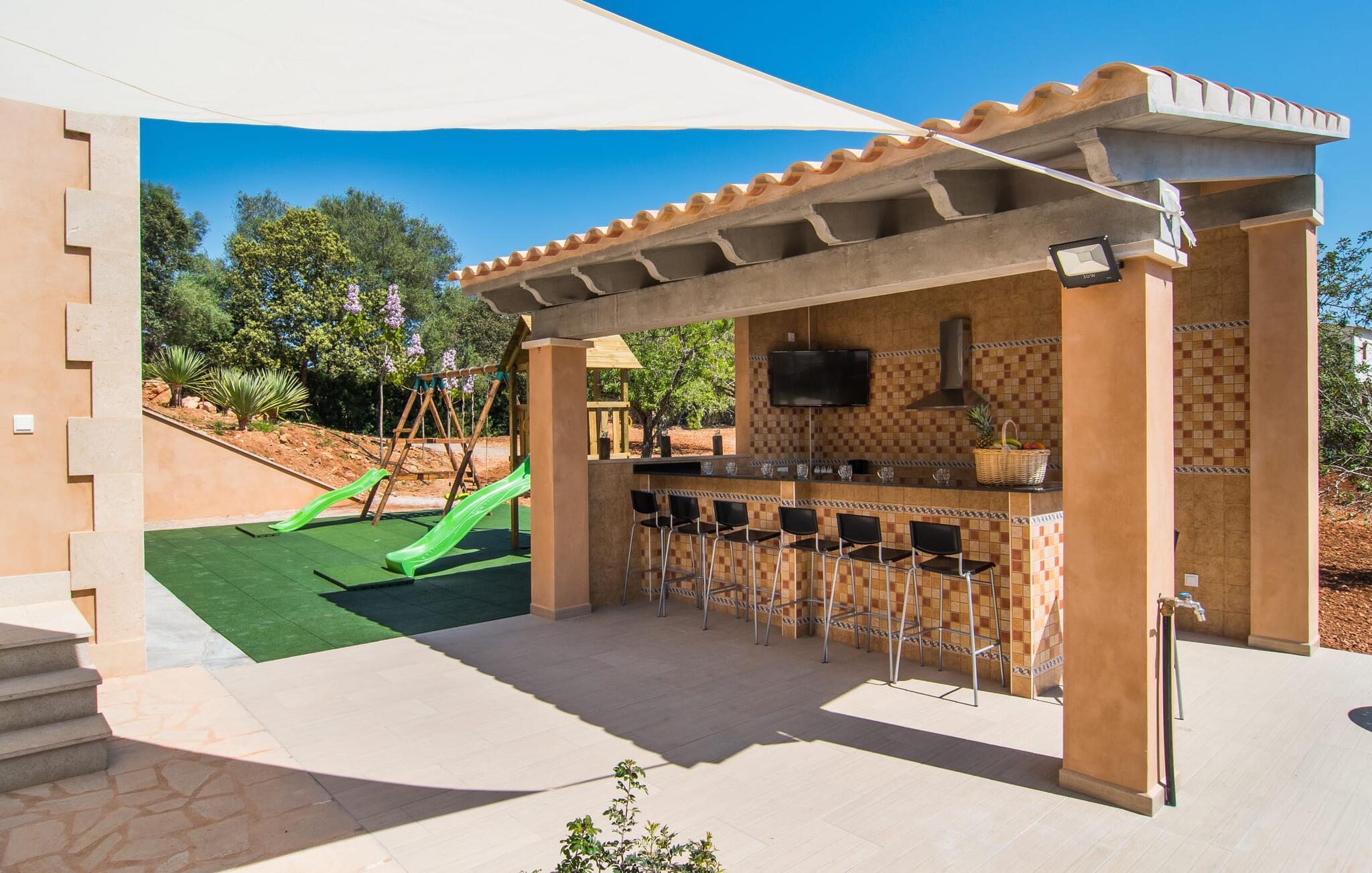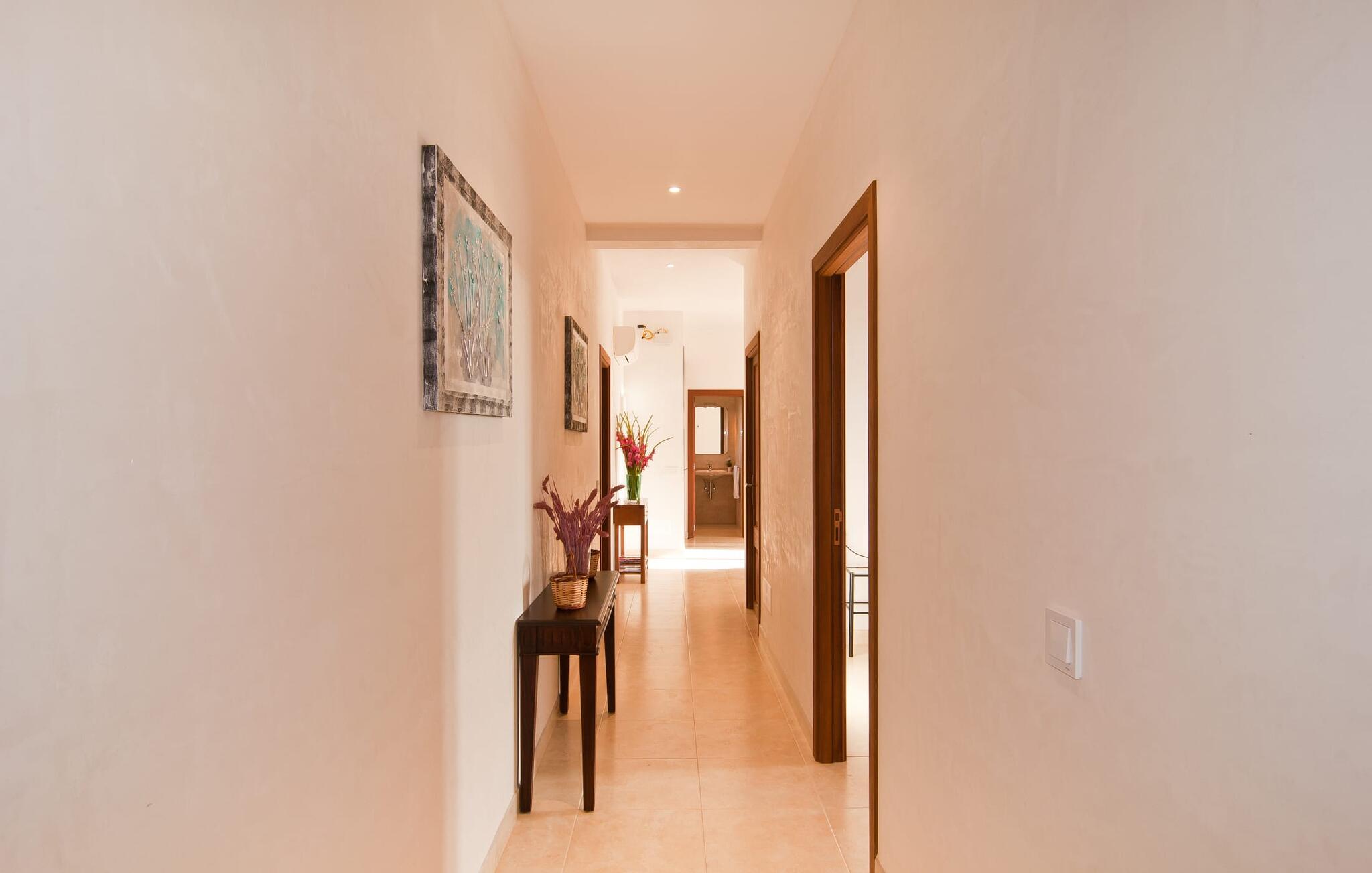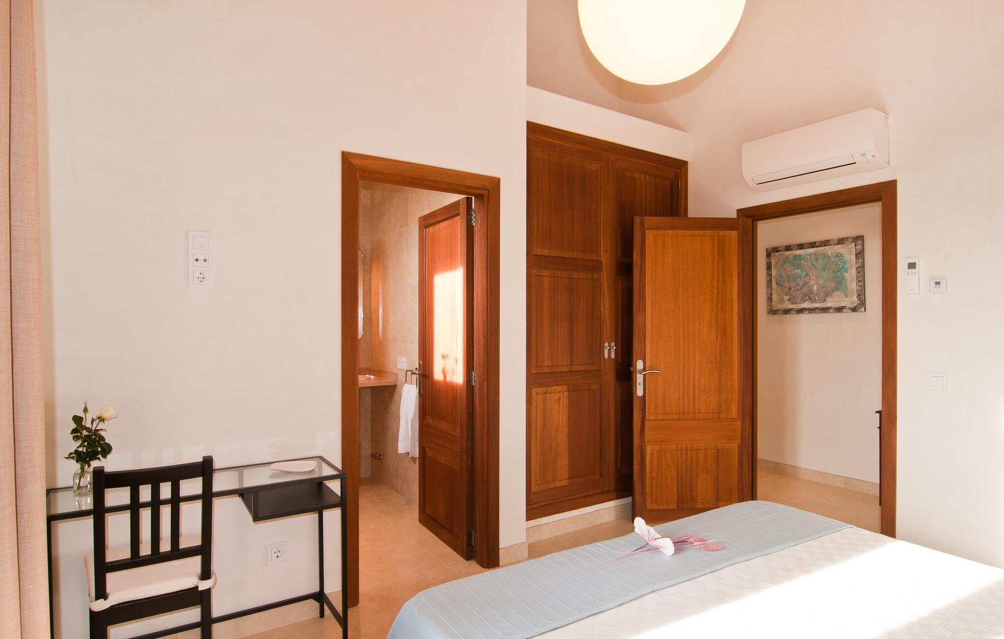 Villaen "S'Alzina" byder på det højeste niveau af ro og ligger i en landlig beliggenhed med store terrasser og grusarealer, der er perfekte til afslapning. Den lokkende pool, solterrasse og skyggefulde spiseplads inviterer til lange timers nydelse, med et udendørs køkken, der er ideelt til grillning. Der er også parkering til flere biler. Indvendigt komplementerer moderne, elegant design de rolige omgivelser med en stue og et smart køkken, fire soveværelser, alle med en-suite badeværelser, og et gæstetoilet. På øverste etage er der endnu et soveværelse med eget badeværelse og terrasse. Villaen er beliggende i en behagelig rolig beliggenhed kun ca. 6 km sydøst for Campos på den sydlige del af øen. I den lille by finder I barer, restauranter og butikker til jeres daglige behov, og der er også et malerisk marked om lørdagen. Santanyi ligger cirka 15 minutter væk i bil, og Es Trenc-stranden ligger cirka 17 km væk. Andre perler som Cala Llombards, Cala Mondrago eller Cala Santanyi inviterer jer til at tilbringe dovne dage i solen. Havnelandsbyen Colonia de Sant Jordi ligger cirka 25 minutter væk i bil. Vi anser denne bolig for at være tilgængelig for vores gæster med nedsat mobilitet, men vi opfordrer alle gæster til at tjekke boligens egnethed ud fra deres egne behov. Bemærk venligst, at denne ejendom ikke accepterer ungdomsgrupper eller polterabender. En ungdomsgruppe på denne ejendom består af personer under 25 år. Book ikke denne ejendom, hvis I er en ungdomsgruppe eller polterabend, da jeres reservation vil blive afvist, når den er booket, hvilket kan være ved ankomsten til ejendommen eller under jeres ophold, og I vil ikke modtage en refusion.