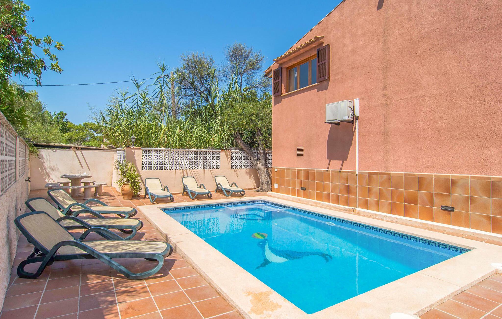 Leder du efter et sommerhus på Mallorca, hvorfra du nemt kan klare næsten alt til fods? Som ikke er midt i byen, men heller ikke for langt ude på landet? Tæt på havet og stranden? Så har du fundet den perfekte feriebolig for op til syv personer i villaen “S'Hort de Cal Rei”! Dette smukke terracotta-farvede feriehus ligger i udkanten af det populære feriested Cala Ratjada, i en typisk villavej. Ikke desto mindre byder ejendommen på en masse privatliv: poolen med spabad lige ved siden af huset er omgivet af en mur og træer, som tilbyder behageligt privatliv. Så du kan slappe af uforstyrret i solen på en af liggestolene. De forskellige terrasseområder med deres siddepladser er også ideelle til dette. Landsbyen og bugten med stranden Platja de Son Moll er inden for gåafstand - du kan nemt parkere din lejebil på gaden foran huset. En vellykket blanding af stilarter typisk for Mallorca venter dig inde i dit sommerhus. Rustikke elementer som naturstensvægge, varmt, mørkebrunt træ og klinkegulve kombineres i "S'Hort de Cal Rei" med lyse farver, moderne og traditionelle møbler og nøje udvalgte, individuelle boligtilbehør, hvilket skaber en hyggelig, indbydende atmosfære. Der skabes en feel-good stemning overalt i huset. I stueplan er der udover entréen en halvåben opholds- og spiseafdeling, et moderne badeværelse og køkkenet, som giver ekstra plads til at sidde og spise sammen. Alle behageligt diskret indrettede soveværelser og to ekstra badeværelser, hvoraf det ene har eget bad, er placeret på øverste etage. Tæt på byen og stranden: Villaen "S'Hort d Cal Rei" i Cala Ratjada har en fantastisk beliggenhed. Sommerhuset for op til syv personer ligger på en villavej i udkanten af byen, der nogle gange kan høres akustisk - og har udover diverse terrassearealer med indbydende siddepladser også sin egen pool, der er beskyttet mod udsyn og har integreret spabad. Butikker, restauranter og den smukke bugt med Platja de Son Moll ligger alle kun få hundrede meter fra dit feriehus. Dette er et Fincallorca feriehus.