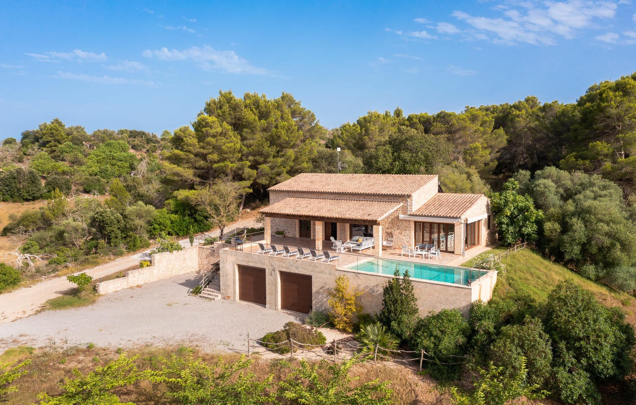 Den nybyggede villa "S'Hort de Carrossa", 5 km vest for middelalderbyen Artà, byder jer velkommen med en stor grund, hvorfra I kan nyde en fantastisk udsigt over øens indre. Llevant-massivet, der er synligt i det fjerne, er ideelt til vandreture, mens naturlige strande som Cala Mesquida eller Cala Torta kan nås i bil på omkring 20 minutter.
