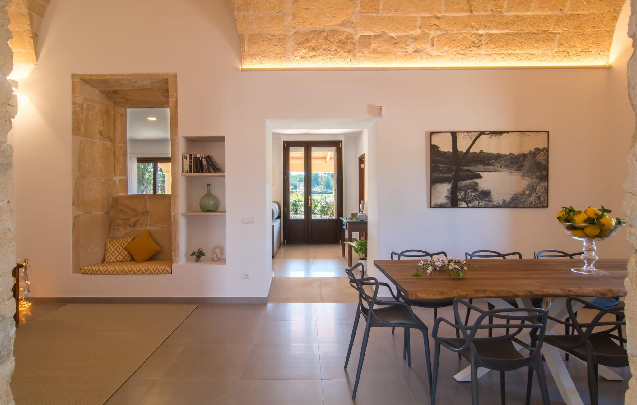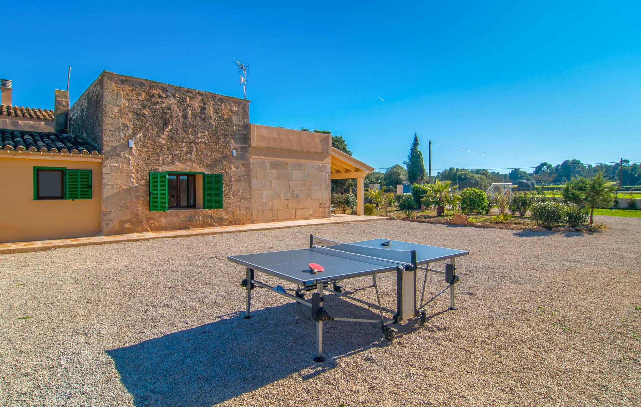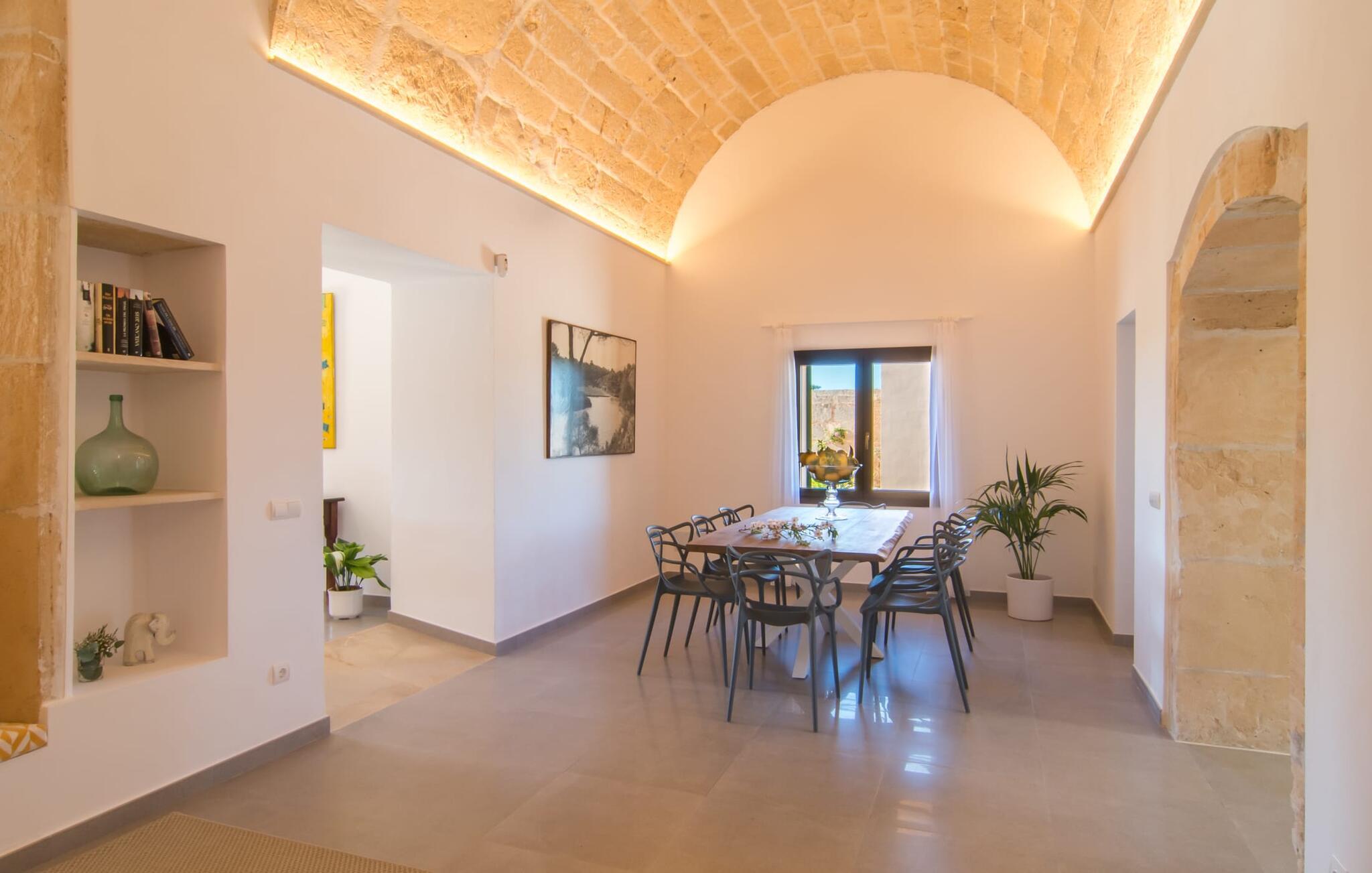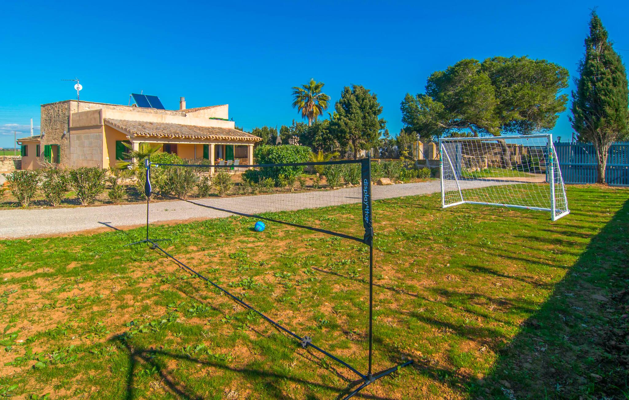 En rustik gammel bygning med masser af plads og en helt særlig charme, smagfuldt renoveret og udstyret med alle de bekvemmeligheder, I kan ønske jer på ferien: det er den uovertrufne kombination af villaen "s'Hort de Marina", ikke langt fra Ses Covetes i den sydlige del af Mallorca har at byde på. Bygningen med sine smukke grønne skodder ligger på en rummelig ejendom og er omgivet af en smukt anlagt have med græsplæner, naturstensvægge og middelhavsgrønt. Her har I fuldstændigt privatliv, uanset om I vil tage en dukkert i poolen, spille bordtennis eller slippe dampen med en omgang fodbold eller volleyball. Men I finder også de bedste forudsætninger for sød lediggang: Hvad med for eksempel en siesta på en af de komfortable liggestole ved poolen, en kølig drink og en lækker snack ved et af de store spiseborde på de forskellige, delvist overdækkede terrasser, eller en god bog i en af de blidt svajende gyngestole? Det moderne interiør skaber en spændende kontrast til det rustikke ydre på jeres villa med aircondition. Her er gamle og nye elementer blevet herligt kombineret med en god sans for smagfuld indretning. Dele af de oprindelige naturstensvægge er stadig synlige i mange rum; Siddepladserne i mursten er særligt smukke og ser meget indbydende ud med deres komfortable hynder. Sofaen, der venter jer i stuen i stueetagen, er hyggelig og chik på samme tid. Om aftenen kan I føle jer godt tilpas foran fjernsynet med behageligt subtil loftbelysning. I spisestuen lige ved siden af springer det lange spisebord med den flotte træbordplade straks i øjnene og byder på et godt sted at sidde sammen, spise og drikke og mindes jeres ferieoplevelser. Stuen i stueetagen suppleres af det moderne køkken, udstyret med højkvalitets hvidevarer, to smagfuldt indrettede dobbeltværelser og to stilfulde badeværelser. På øverste etage finder I yderligere to soveværelser med hvert sit badeværelse. jeres sommerhus er ikke kun perfekt som udgangspunkt for afslappede gåture - nogle af øens smukkeste strande ligger inden for kun 5 km fra jeres villa. I kan tilbringe timevis af solskin ved havet på den lange sandstrand Ses Covetes eller i den lille bugt Es Freu de Ses Covetes, men I bør bestemt også besøge Platja Es Trenc. Det er den længste naturlige strand på Mallorca, med fint hvidt sand og turkisblåt vand, omgivet af et fantastisk klitlandskab. I nogle afdelinger kan man leje liggestole og parasoller, andre er helt urørte. Foretrækker I en tur ind til byen, kan I køre de 11,2 km til Campos ad vejen, hvilket kan høres afhængigt af vindretningen. Den landlige by er præget af smalle, romantiske snoede gader, smukke traditionelle stenhuse og en behagelig ro – Campos er stort set blevet skånet for masseturisme og har derfor bevaret en helt særlig, autentisk flair. Et stilfuldt renoveret hus på en rummelig grund, omgivet af et typisk middelhavslandskab, venter på jer i villaen "s'Hort de Marina" nær Ses Covetes på det sydlige Mallorca. Det velholdte udendørsområde giver ikke kun point med en skrånende pool, men også med forskellige, delvist overdækkede terrassearealer og masser af plads til at lege for eventuelle børn, der rejser med jer. De smukke strande i Ses Covetes og selve byen kan nås med jeres lejebil efter blot 2 km.