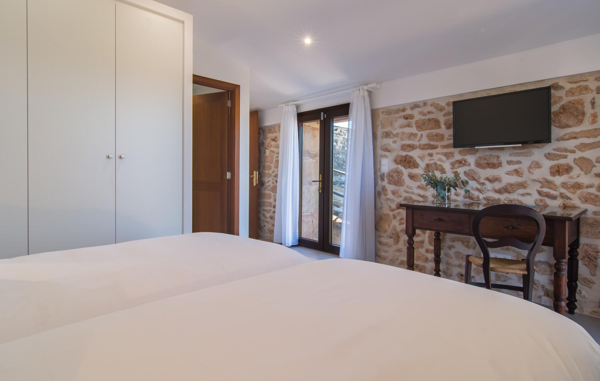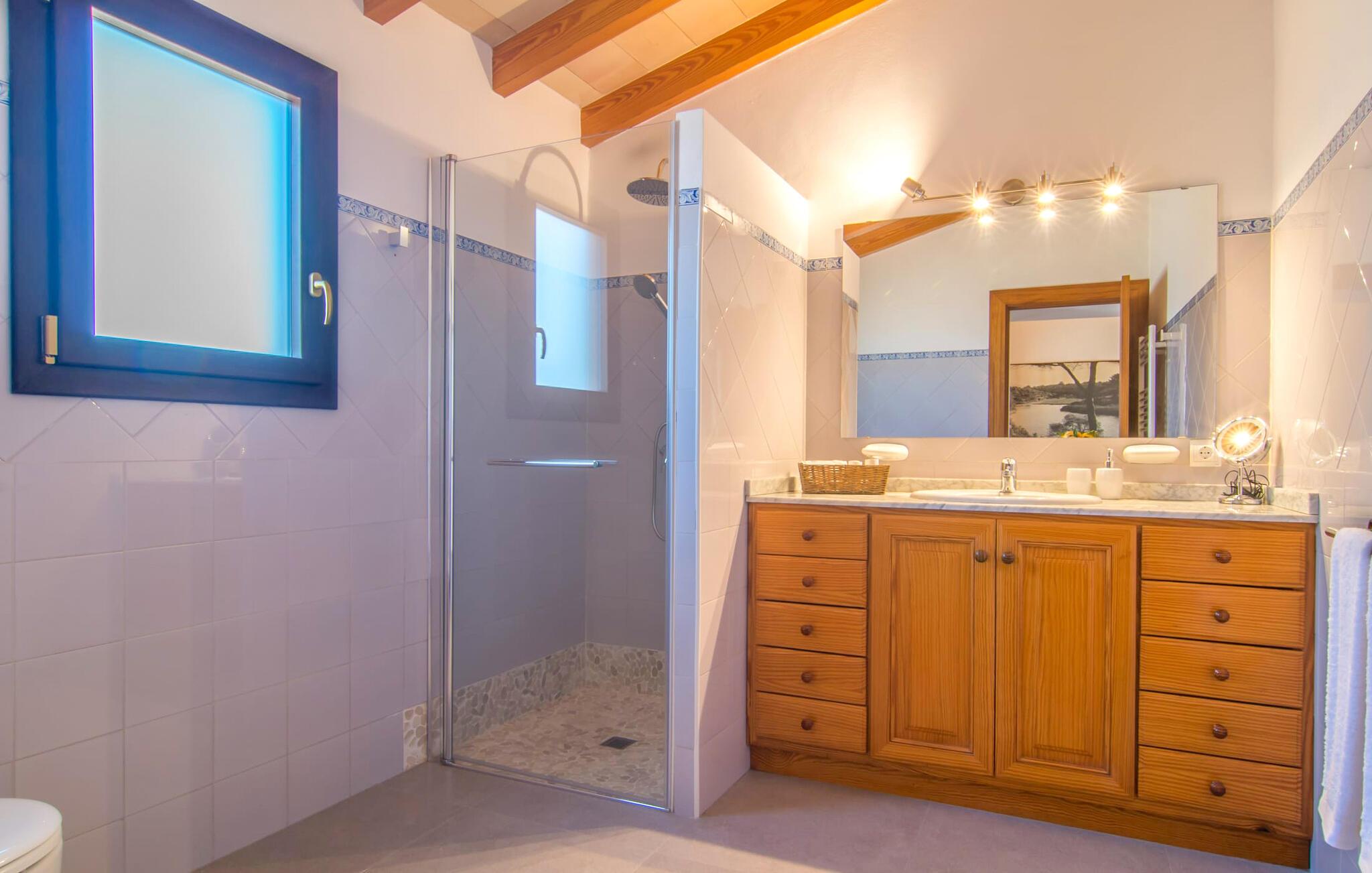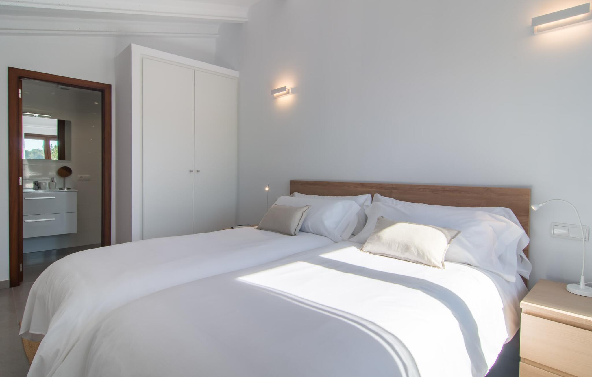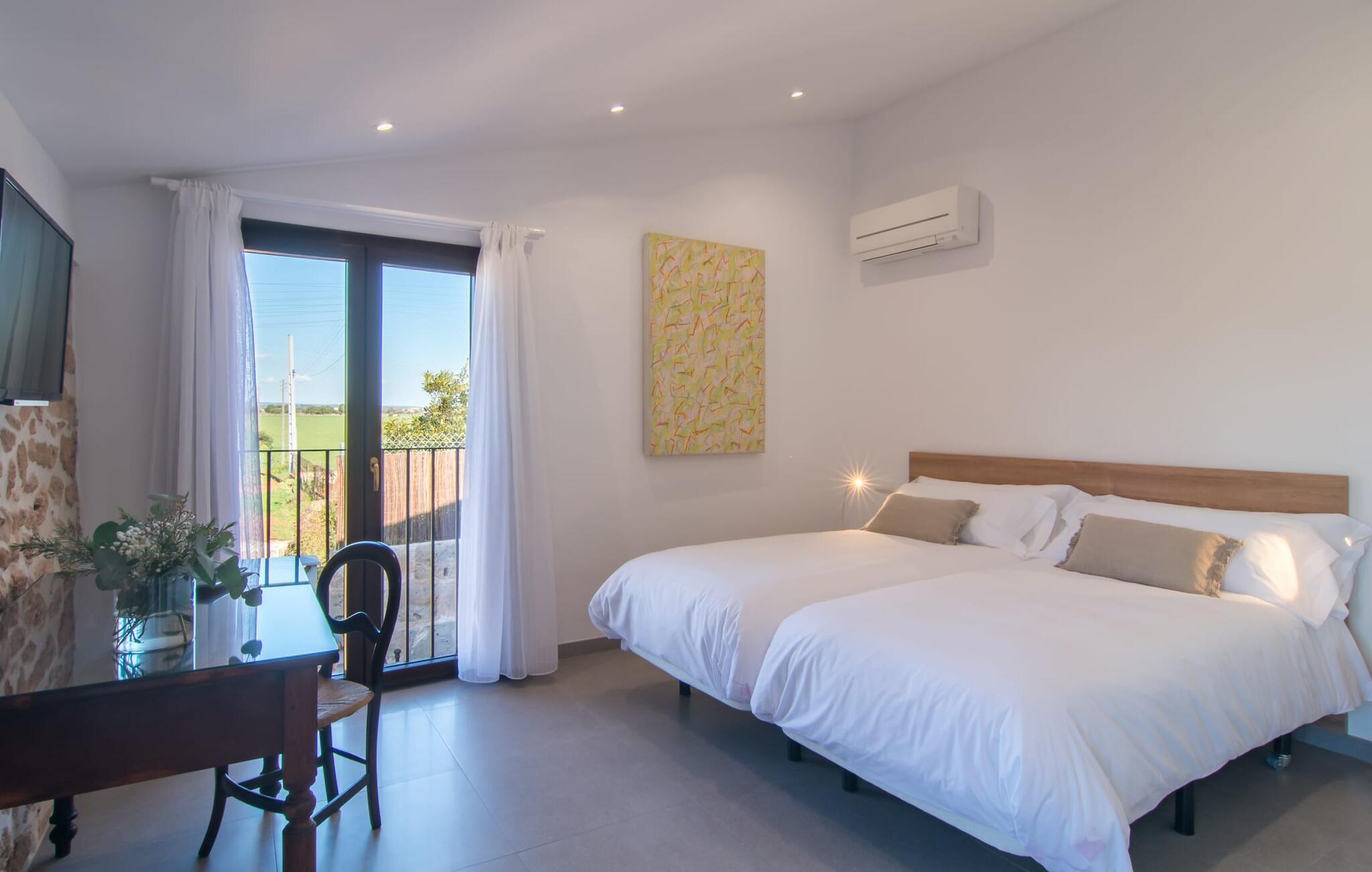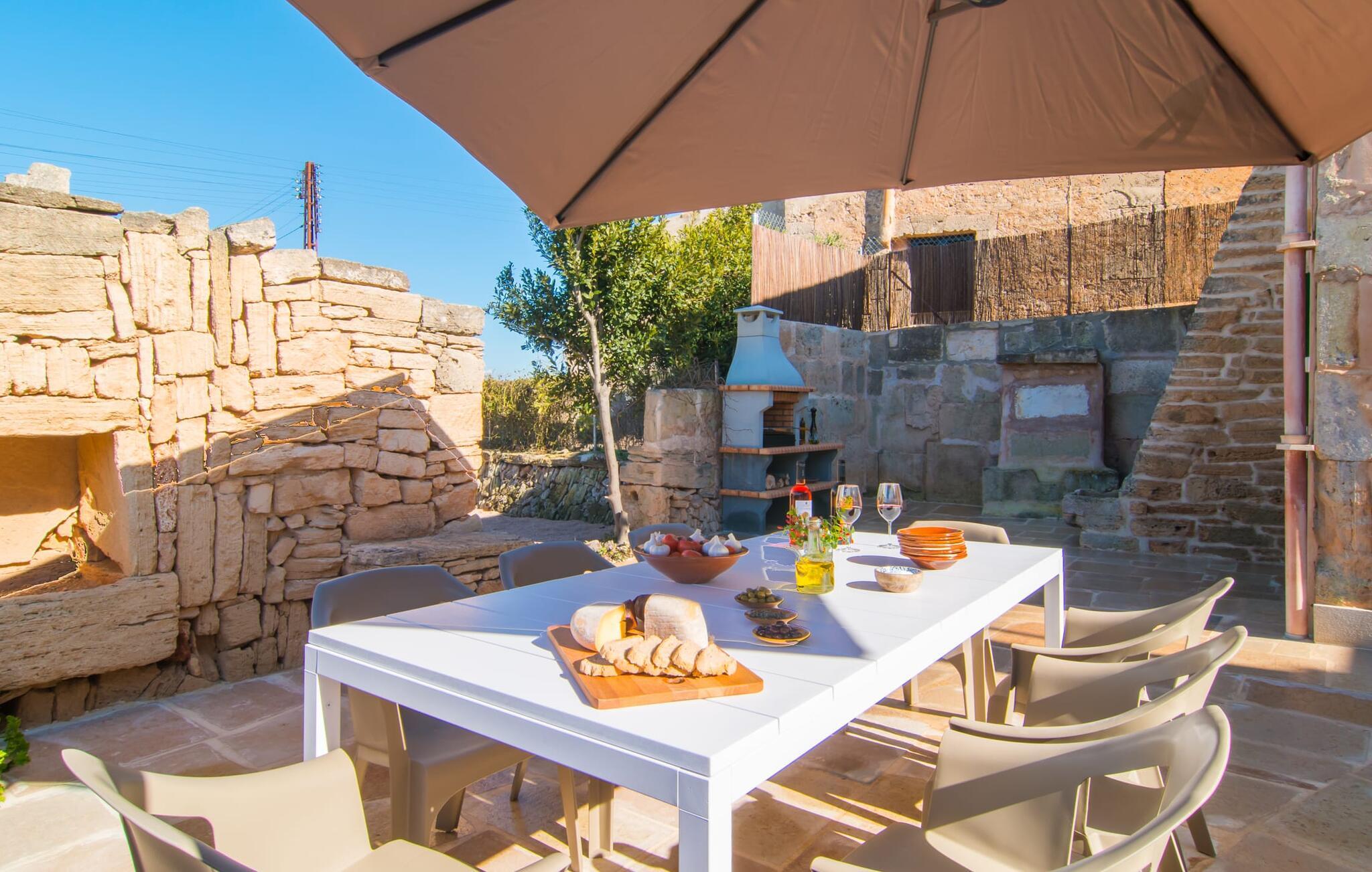 En rustik gammel bygning med masser af plads og en helt særlig charme, smagfuldt renoveret og udstyret med alle de bekvemmeligheder, I kan ønske jer på ferien: det er den uovertrufne kombination af villaen "s'Hort de Marina", ikke langt fra Ses Covetes i den sydlige del af Mallorca har at byde på. Bygningen med sine smukke grønne skodder ligger på en rummelig ejendom og er omgivet af en smukt anlagt have med græsplæner, naturstensvægge og middelhavsgrønt. Her har I fuldstændigt privatliv, uanset om I vil tage en dukkert i poolen, spille bordtennis eller slippe dampen med en omgang fodbold eller volleyball. Men I finder også de bedste forudsætninger for sød lediggang: Hvad med for eksempel en siesta på en af de komfortable liggestole ved poolen, en kølig drink og en lækker snack ved et af de store spiseborde på de forskellige, delvist overdækkede terrasser, eller en god bog i en af de blidt svajende gyngestole? Det moderne interiør skaber en spændende kontrast til det rustikke ydre på jeres villa med aircondition. Her er gamle og nye elementer blevet herligt kombineret med en god sans for smagfuld indretning. Dele af de oprindelige naturstensvægge er stadig synlige i mange rum; Siddepladserne i mursten er særligt smukke og ser meget indbydende ud med deres komfortable hynder. Sofaen, der venter jer i stuen i stueetagen, er hyggelig og chik på samme tid. Om aftenen kan I føle jer godt tilpas foran fjernsynet med behageligt subtil loftbelysning. I spisestuen lige ved siden af springer det lange spisebord med den flotte træbordplade straks i øjnene og byder på et godt sted at sidde sammen, spise og drikke og mindes jeres ferieoplevelser. Stuen i stueetagen suppleres af det moderne køkken, udstyret med højkvalitets hvidevarer, to smagfuldt indrettede dobbeltværelser og to stilfulde badeværelser. På øverste etage finder I yderligere to soveværelser med hvert sit badeværelse. jeres sommerhus er ikke kun perfekt som udgangspunkt for afslappede gåture - nogle af øens smukkeste strande ligger inden for kun 5 km fra jeres villa. I kan tilbringe timevis af solskin ved havet på den lange sandstrand Ses Covetes eller i den lille bugt Es Freu de Ses Covetes, men I bør bestemt også besøge Platja Es Trenc. Det er den længste naturlige strand på Mallorca, med fint hvidt sand og turkisblåt vand, omgivet af et fantastisk klitlandskab. I nogle afdelinger kan man leje liggestole og parasoller, andre er helt urørte. Foretrækker I en tur ind til byen, kan I køre de 11,2 km til Campos ad vejen, hvilket kan høres afhængigt af vindretningen. Den landlige by er præget af smalle, romantiske snoede gader, smukke traditionelle stenhuse og en behagelig ro – Campos er stort set blevet skånet for masseturisme og har derfor bevaret en helt særlig, autentisk flair. Et stilfuldt renoveret hus på en rummelig grund, omgivet af et typisk middelhavslandskab, venter på jer i villaen "s'Hort de Marina" nær Ses Covetes på det sydlige Mallorca. Det velholdte udendørsområde giver ikke kun point med en skrånende pool, men også med forskellige, delvist overdækkede terrassearealer og masser af plads til at lege for eventuelle børn, der rejser med jer. De smukke strande i Ses Covetes og selve byen kan nås med jeres lejebil efter blot 2 km.