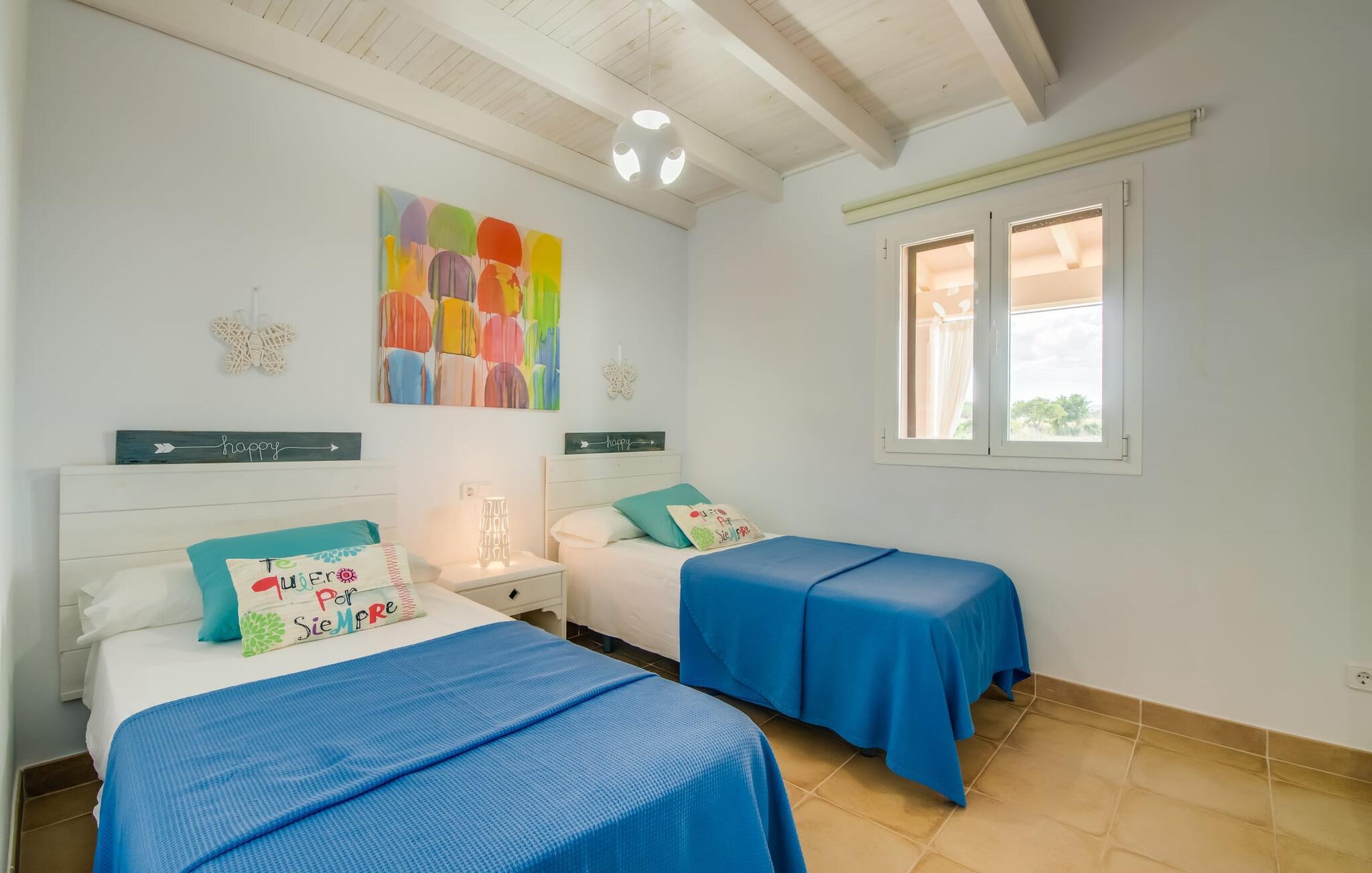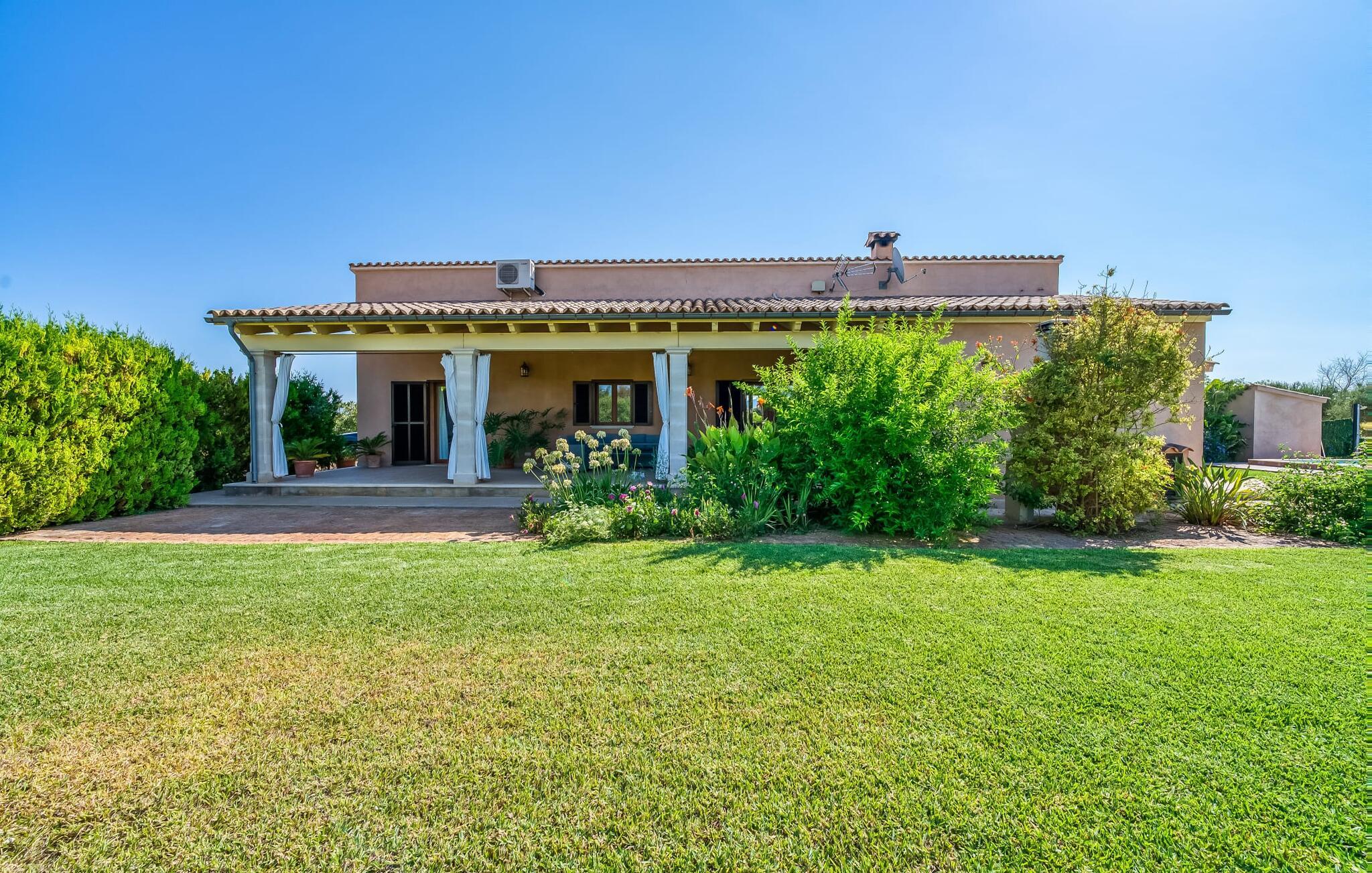 Kom og føl jer godt! Der skal ikke flere ord til for at beskrive den storslåede villa "S'Hortet Gran". Men vi vil selvfølgelig gerne give jer et par gode ting om detaljerne i villaen for at give jer et bedre indtryk af fordelene ved dette familievenlige hus. Lad os starte med en rundvisning i det udendørs område. Den "store have", som navnet på villaen betyder på catalansk, er omgivet af marker i en smuk naturlig beliggenhed. Fra den asfalterede indkørsel forlader vi blot villaen på vores venstre side og går til den overdækkede terrasse foran huset. "Kan vi gå i poolen?" er det første, børnene råber til jer, mens I forestiller jer at sidde her på varme sommeraftener med et glas mallorcansk vin. En forfriskende brise blæser fra den indbyggede grill, I lige har opdaget på det andet hjørne af terrassen, og duften af brændende lampekoteletter suser mod jer. Et par skridt videre - på vestsiden af villaen - og vi er på den næste overdækkede terrasse: et stort, rustikt træbord med to bænke indbyder til at nyde måltider sammen eller en spilleaften. Det varer ikke længe, før I føler jer hjemme i denne villa. Fra vestterrassen er der flere indgange ind i jeres sommerhus. Vi vælger den første dør og kommer ind i køkkenet. "WOW!" - spændingen stopper bare ikke. Det lyse og store rum er et blikfang ikke kun på grund af de mange nænsomt placerede tilbehør, men også fordi det er udstyret med alt, hvad I behøver for selvforsyning. Mens I stadig er forbløffet, lyder et "Se det!" på tværs af den åbne stue. Et familiemedlem opdagede støbejernspejsen, som giver hyggelig varme på køligere aftener. Med sine høje lofter og talrige sofistikerede strejf af farve udstråler den rummelige og lyse lounge hygge hele vejen igennem. Og I tænker: "Vi har truffet et godt valg", for lige pludselig hører I "Jeg sover her!" der styrter ned for at bryde jeres begyndende lyksalighed. En smuk naturstensmur fanger hurtigt jeres opmærksomhed, selvom stemmen stadig kalder. Denne fløj af huset byder på tre lyse hvide dobbeltværelser med aircondition og komfortable senge. Et pletfrit badeværelse og et gæstetoilet fuldender dette område, som er blevet indrettet med en masse kærlighed og omsorg. "Happy" er udsmykket over sengene i et af soveværelserne, og I er sikker på at føle det i det øjeblik. Apropos "glad": I vil glæde jer over, at I har fundet den perfekte beliggenhed til en villa. "S'Hortet Gran" er ideelt placeret for udflugter og ture i det nordlige Mallorca. Fra Cala Ratjada, det mest nordøstlige punkt, til Cap Formentor, øens nordligste top, kan alle seværdigheder og højdepunkter i denne region nemt nås herfra. Den nærliggende MA-13, som forbinder Alcúdia med Palma, tager jer også til øens hovedstad på cirka en time. De to store bugter Alcúdia og Pollença med deres kilometerlange strande ligger lige uden for døren. På kysten af Victoria-halvøen er der mindre skjulte bugter, der også byder vandrere velkommen på naturskønne ture. Den "store have" er simpelthen en lille drøm! Kom og føl jer godt! Godt 3 km fra smukke Alcúdia kunne Villa S'Hortet Gran næppe ligge bedre, når det kommer til at udforske hele øen. Alcúdia og dens havn, kendt som Port d'Alcúdia, tilbyder det perfekte altomfattende tilbud til en individuel villaferie: flere supermarkeder og to ugentlige markeder til hverdagens behov, trendy butikker og butikker til shopping og restauranter og barer for kulinariske lækkerier. På de kilometerlange strande i Alcúdia-bugten vil alle finde deres eget personlige sted at bade i solen og havet.