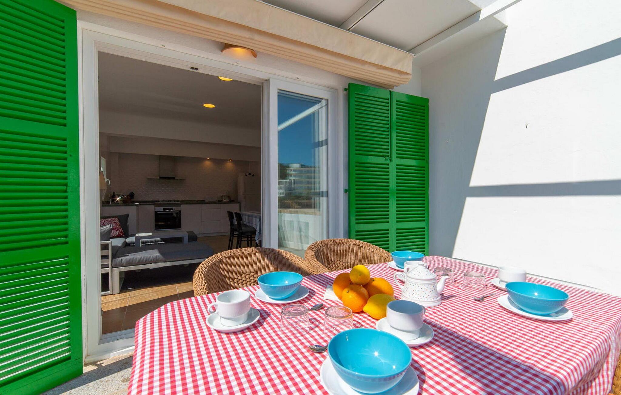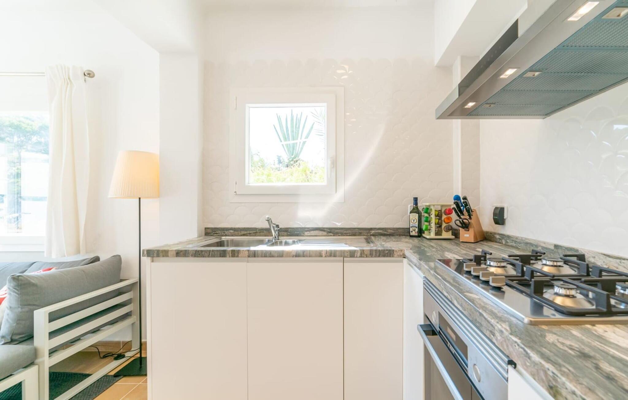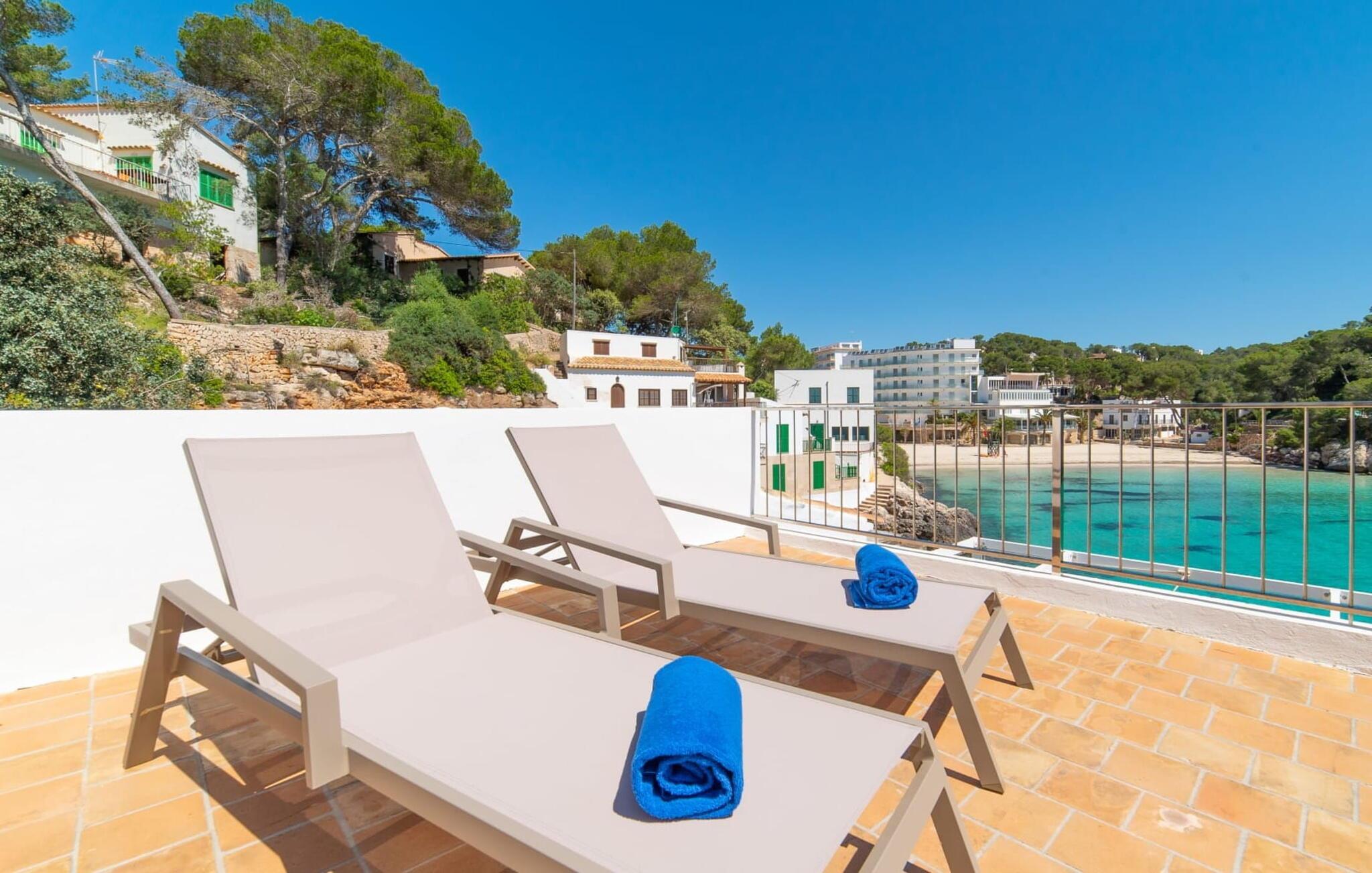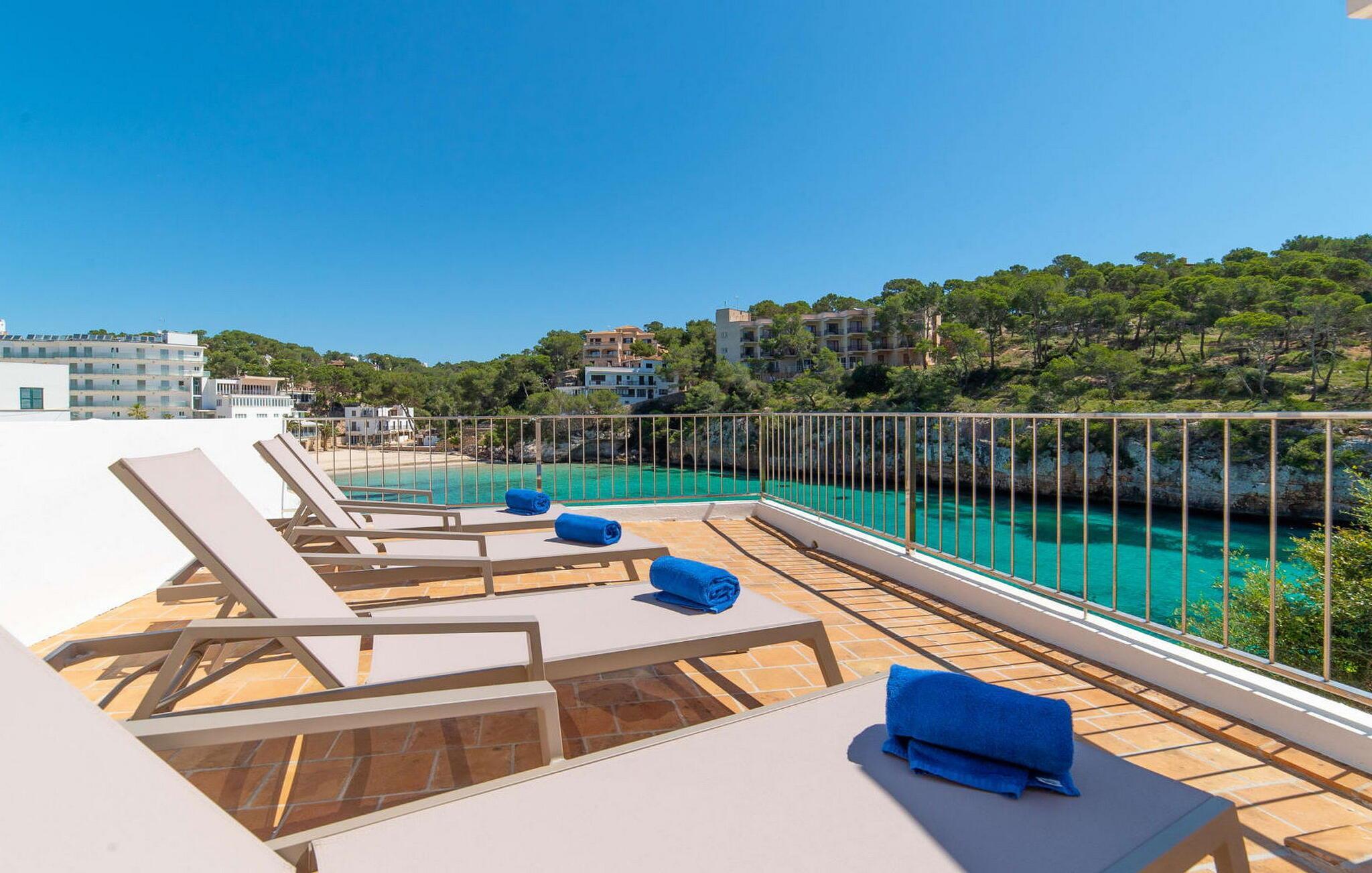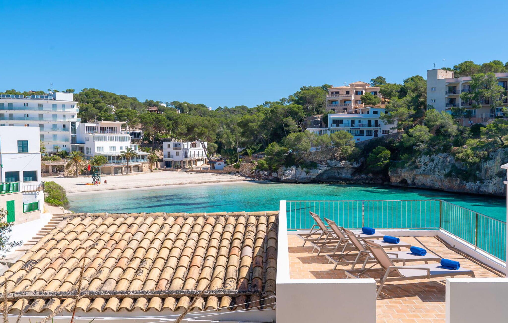 Taget er blevet omdannet til en spektakulær tagterrasse, der byder på en betagende udsigt over lagunen, der strækker sig ud foran. Nedenfor fører terrasserne direkte til havet, hvor det krystalklare vand afslører en sandet havbund og stimer af småfisk. Snorkling i Cala Santanyí er et absolut must, da der er meget at opdage langs klipperne.