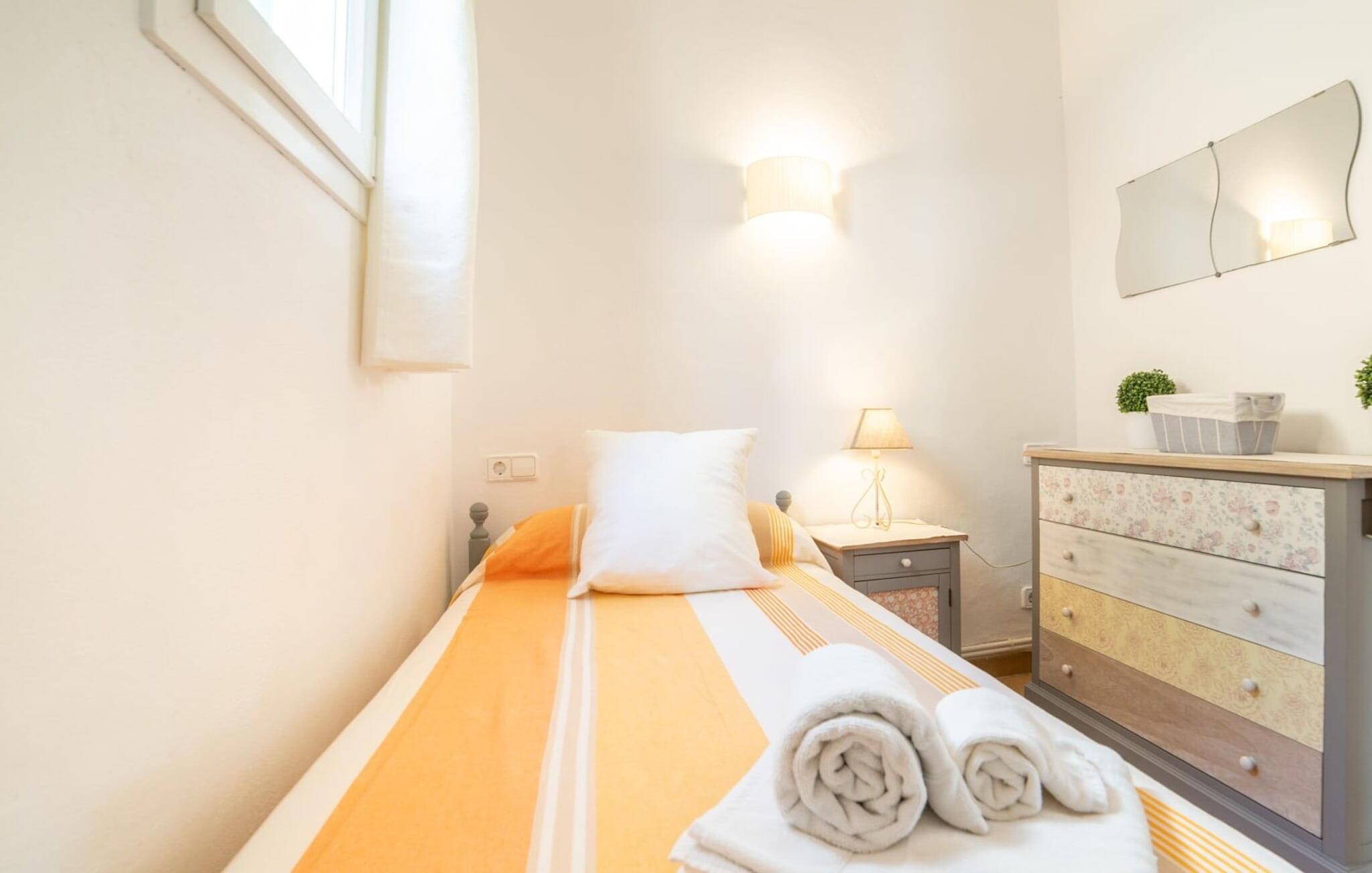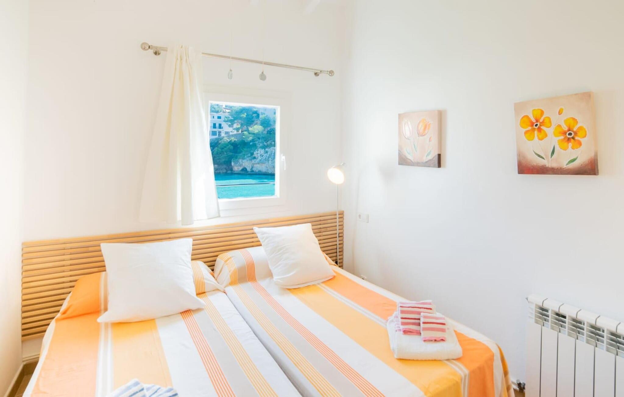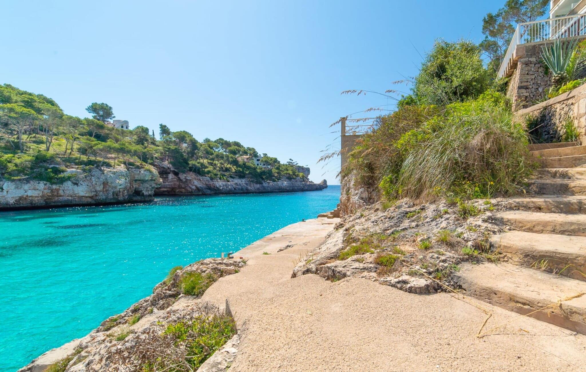 Denne tidligere fiskerlejlighed, charmerende beliggende direkte på Cala Santanyí, hedder "Sa Barca" og har privat adgang til den turkise sandlagune lige foran den. Det ligger ved foden af en 800 m² stor grund dækket med fyrretræer og palmer. Herfra kan du faktisk svømme til sandstranden. Barer, restauranter og supermarkeder kan nås meget hurtigt til fods.