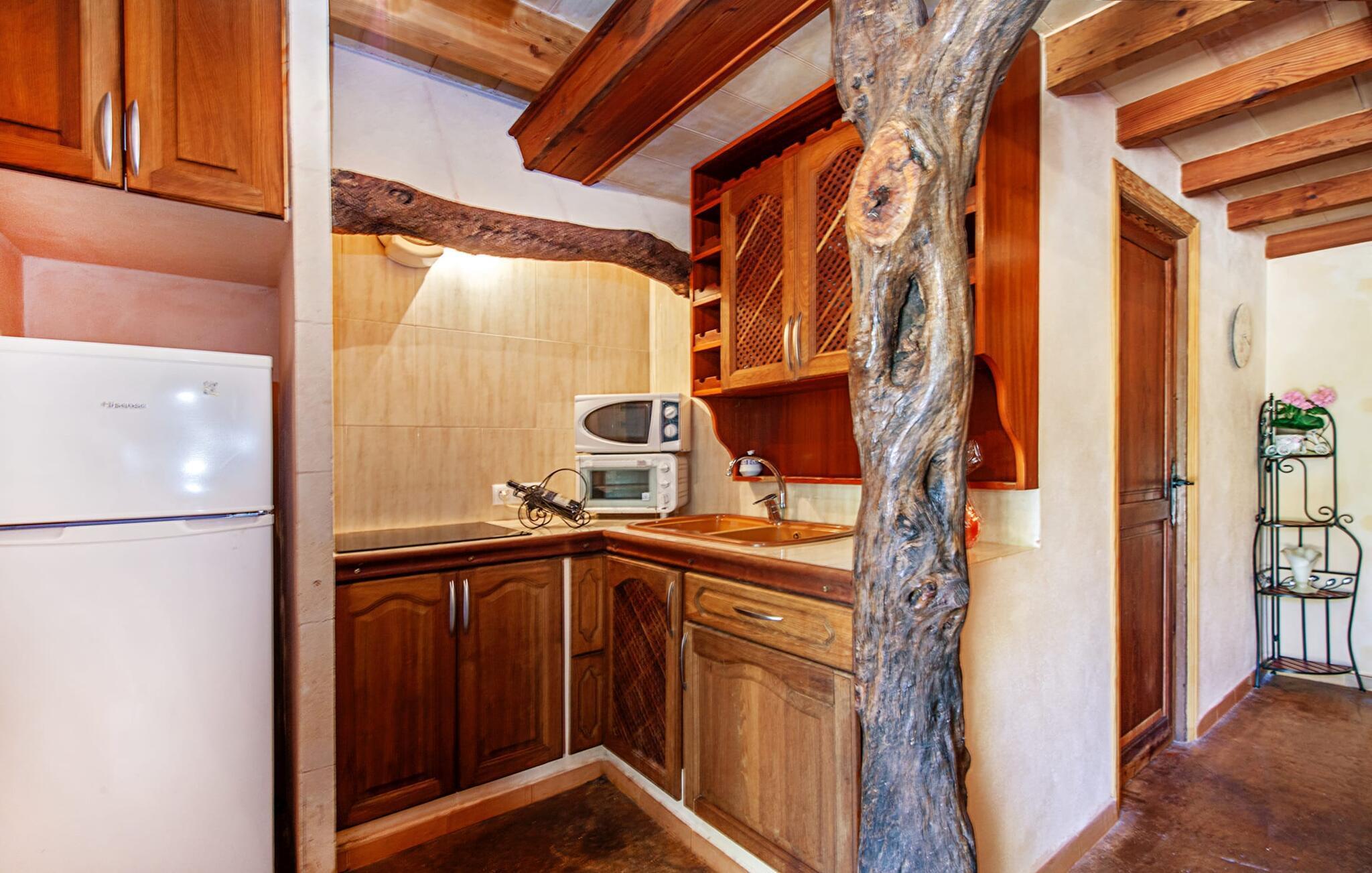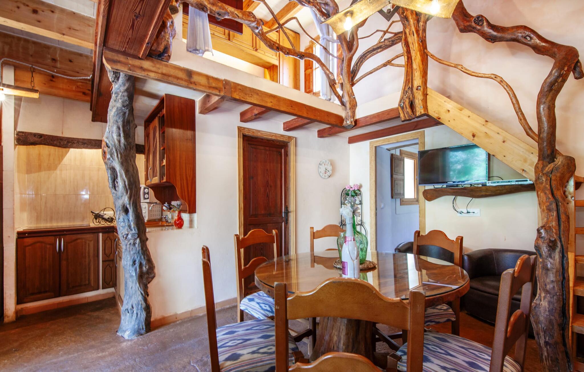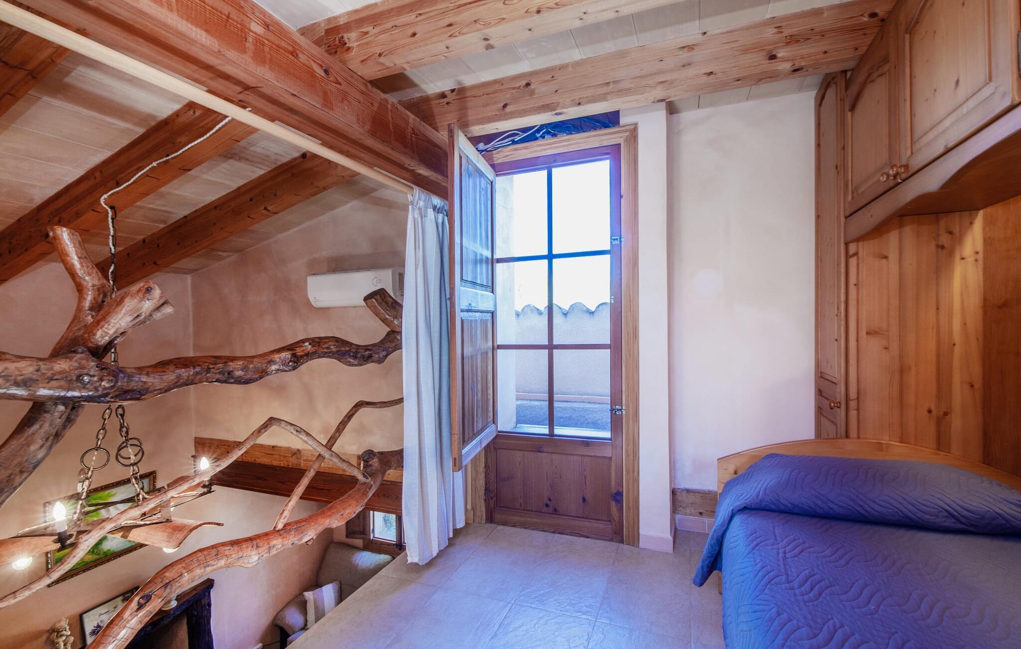 Original, original, "Sa Barraqueta des Cazador"! Denne finca er et absolut højdepunkt, fordi ingen anden ejendom udstråler så meget personlighed så hurtigt. Knisede oliventræer dekorerer den omfattende ejendom med masser af græsplæne - 100% privat! - omkring det imponerende byggede naturstenshus på Mallorca. En åben terrasse foran og en bagved huset samt en stor tagterrasse giver mange muligheder for at gøre det rigtig hyggeligt i det fri. Området omkring den murede grill er vidunderligt rustikt - her kan du nyde et solidt måltid på træbænkene. Et rigtigt hit er poolområdet, som ikke kun scorer point med en pool med smukke mosaiksten og en trappe for nem adgang, men frem for alt med sjældenheden af en rutsjebane, hvorigennem du kan kaste dig ud i det kølige vand med ekstra sjov og handling. Adgang til den tilhørende trappe er forsynet med port. Man har ikke rigtig lyst til at forlade udearealet, men indersiden af huset er på ingen måde ringere end udearealerne. Hvad mere er: originaliteten af indretningen er simpelthen en drøm! Hvad er her med stort: træ. Udover brugen af dette naturmateriale i form af vinduer, døre og møbler, kan du her også finde helt usædvanlige implementeringer, såsom rækværket lavet af forskellige olivengrene eller træstammen, der rejser sig op midt i køkkenet. Opholdet her er vidunderligt hyggeligt og rustikt. Ud over det åbne køkken-alrum er der i stueetagen af denne finca på Mallorca et badeværelse med natursten og et soveværelse med dobbeltseng med integreret spabad og badeværelse en suite. Den åbne trappe fører til det øverste (åbne) soveværelse med to enkeltsenge (hvoraf den ene er en udtræksseng). Fincaen "Sa Barraqueta des Cazadors" er virkelig unik på Mallorca. Det ligger i et vidunderligt roligt område mellem Campos (ca. 6 km), hvor du kan gøre dine daglige indkøb, og Santanyí (ca. 8 km). På vej mod syd kan du besøge smukke kystlandsbyer. Fantastiske strande som Cala Santanyí og selvfølgelig drømmestranden par excellence – Es Trenc – er let tilgængelige med lejebil. OPMÆRKSOMHED! Ingen dyr er tilladt på denne finca. Dette er et Fincallorca feriehus.