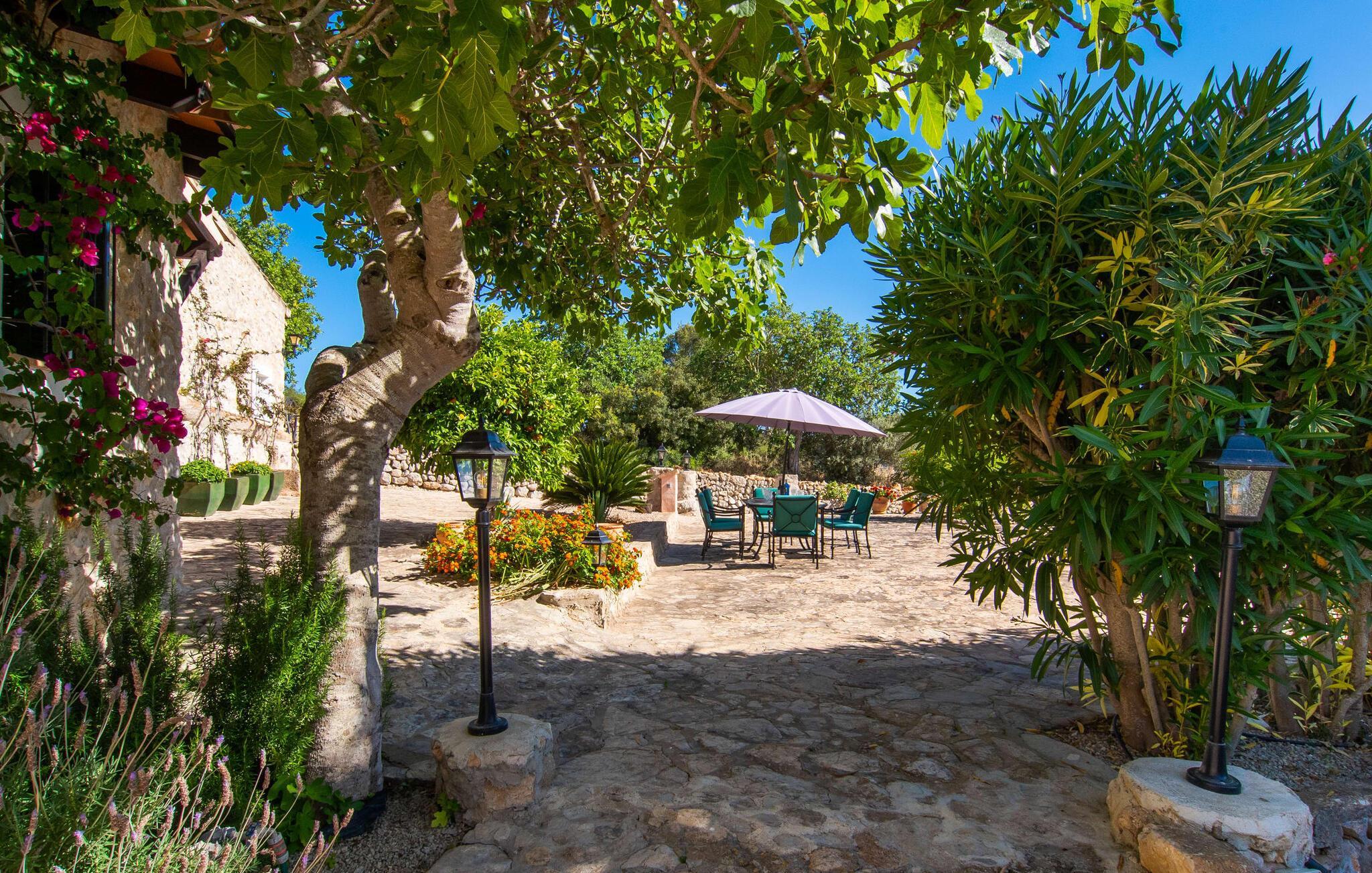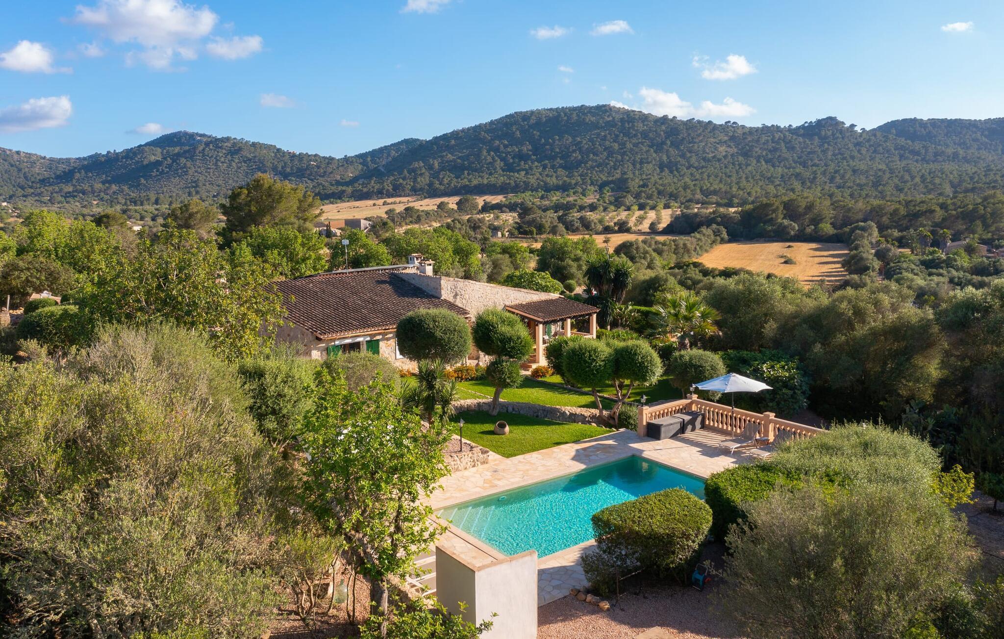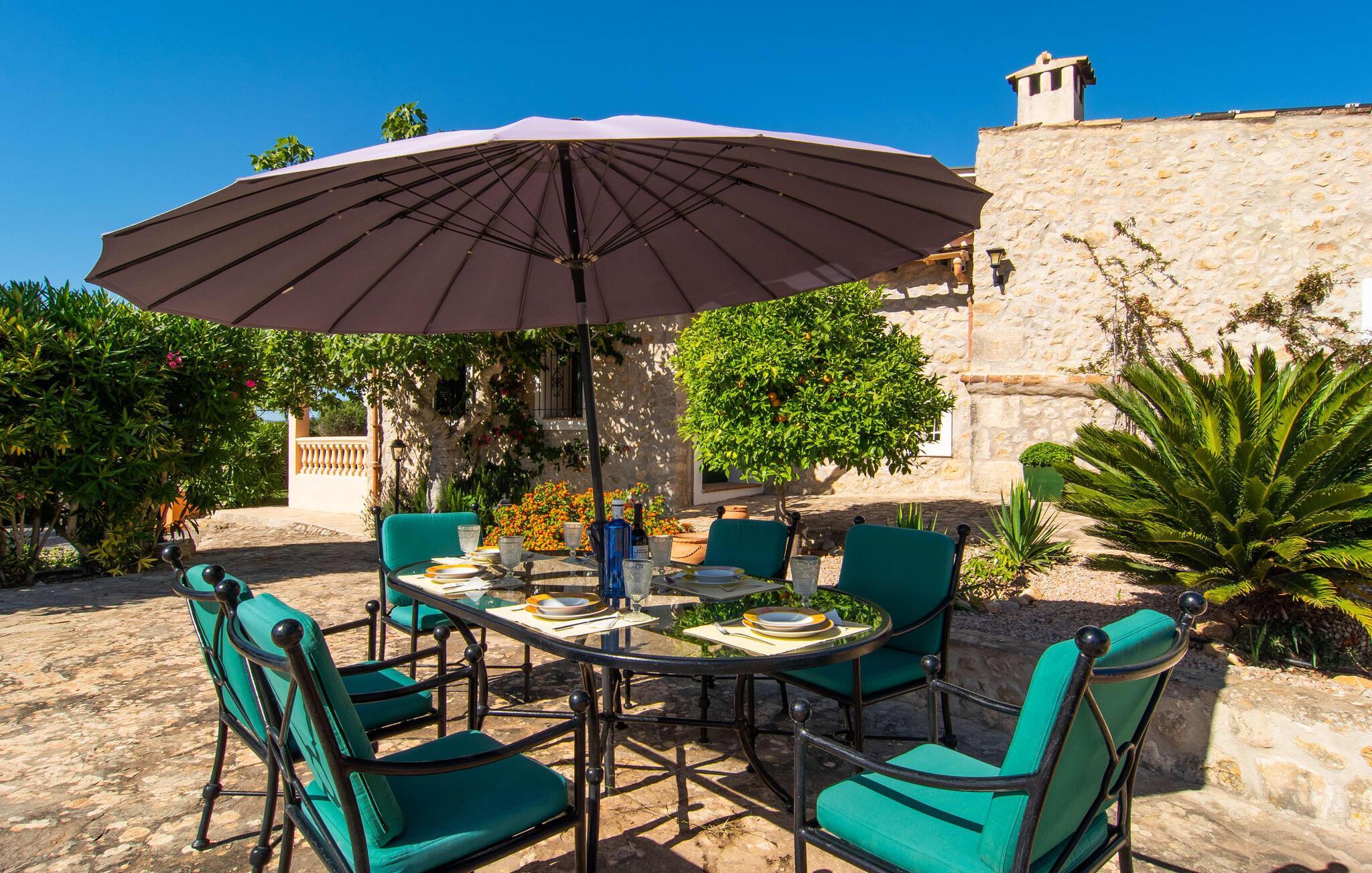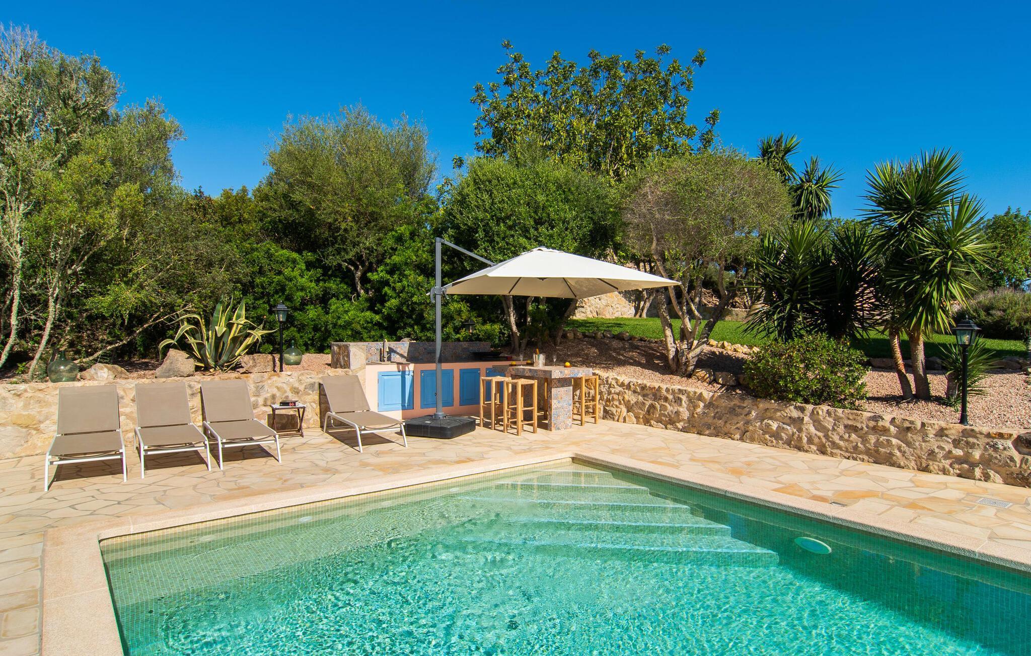 Velkommen til Villa "Sa Cabana Ampola"! Glæd jer til en uforglemmelig ferie, for I vil aldrig glemme denne eksklusive, rummelige og utrolige ejendom med 33.000 m² grund og en utrolig panoramaudsigt. Middelhavshaven byder på flere terrasser og siddeområder: Nyd en solid morgenmad i skyggen af ??lysthuset med udsigt over de sydvestlige foden af ??Llevant, mens I kigger ud over frugtbare marker, bølgende bakker og bjerge samt maquis af mastiks og gyvelbuske...? Den daglige slid vil snart være glemt! En anden terrasse med komfortable loungemøbler giver jer en utrolig udsigt over den spektakulære solnedgang. Det er det perfekte sted at trække sig tilbage med en spændende bog. Tilføj en café con leche... livet kunne ikke være smukkere. Den overdækkede terrasse og grillen er det ideelle sted at tilbringe en underholdende aften. Et grillområde giver jer yderligere kulinariske muligheder, så I kan overraske jeres gæster med frisk grillet fisk eller en traditionel paella. Trænger I til at køle af? Det rummelige poolområde er afsondret og sikrer absolut privatliv. Der er flere komfortable liggestole. Den 9 x 5 m store pool med et niveaudelt dæk og en maksimal dybde på 2 m sikrer masser af sjov for alle aldre. Små børn under 4 år bør dog ikke lades uden opsyn. At dase ved poolen er en dejlig afslappende måde at afslutte dagen på: Hvorfor ikke svømme et par baner i måneskinnet med børnene i sengen og nyde lidt tid alene sammen under den stjerneklare mallorcanske himmel? Hvis I ser et stjerneskud, vil I helt sikkert ønske jer et ønske...