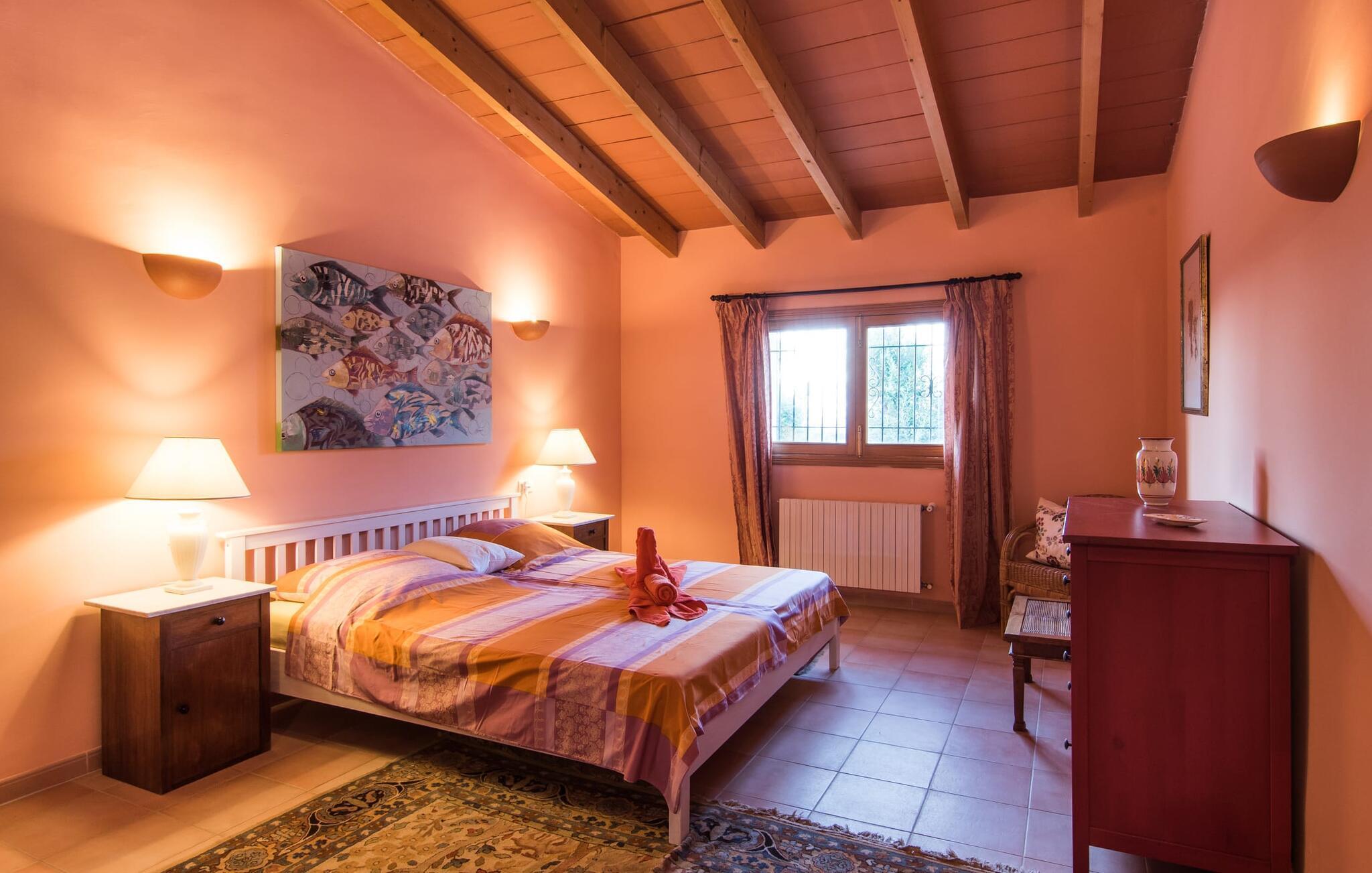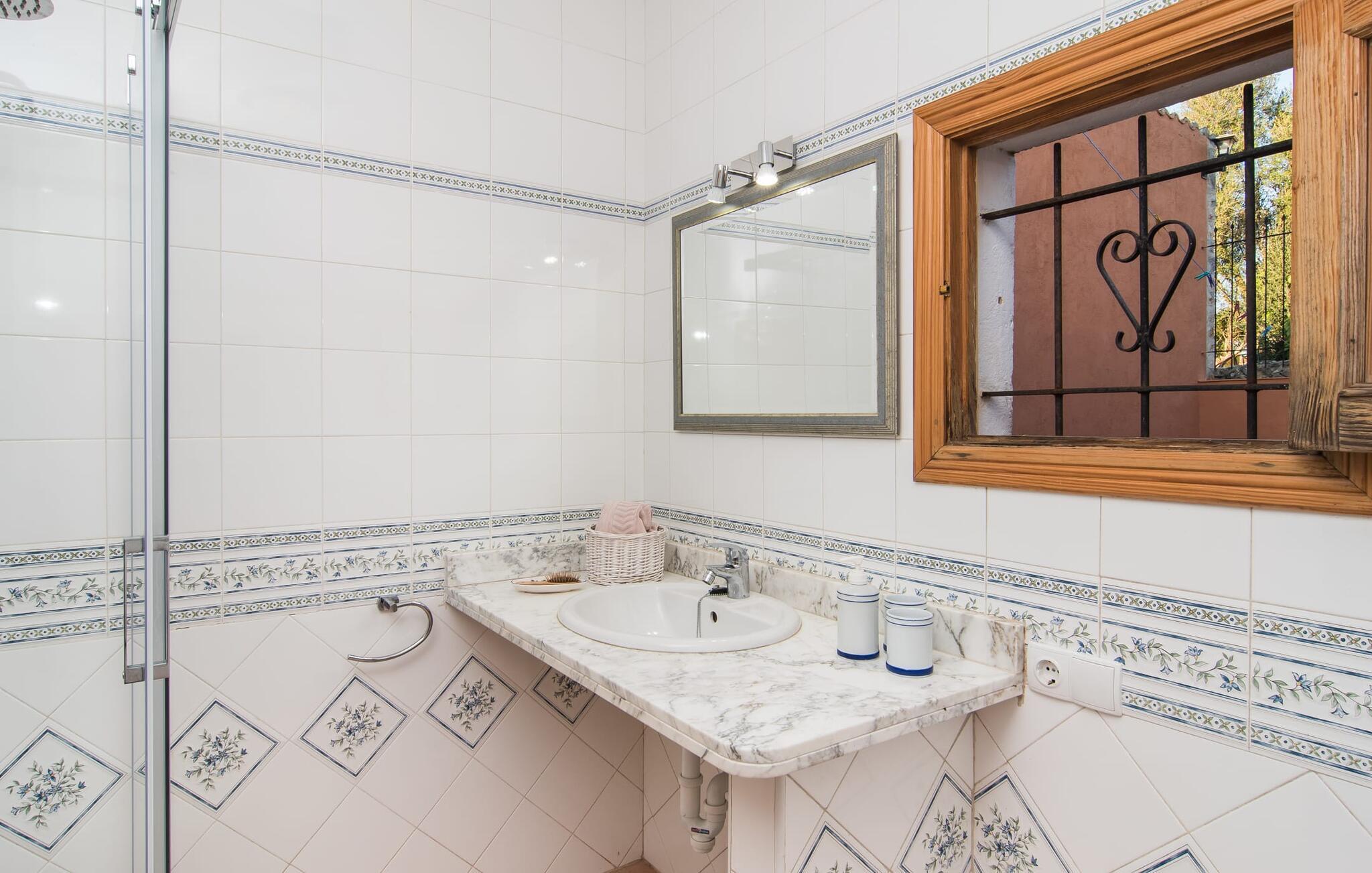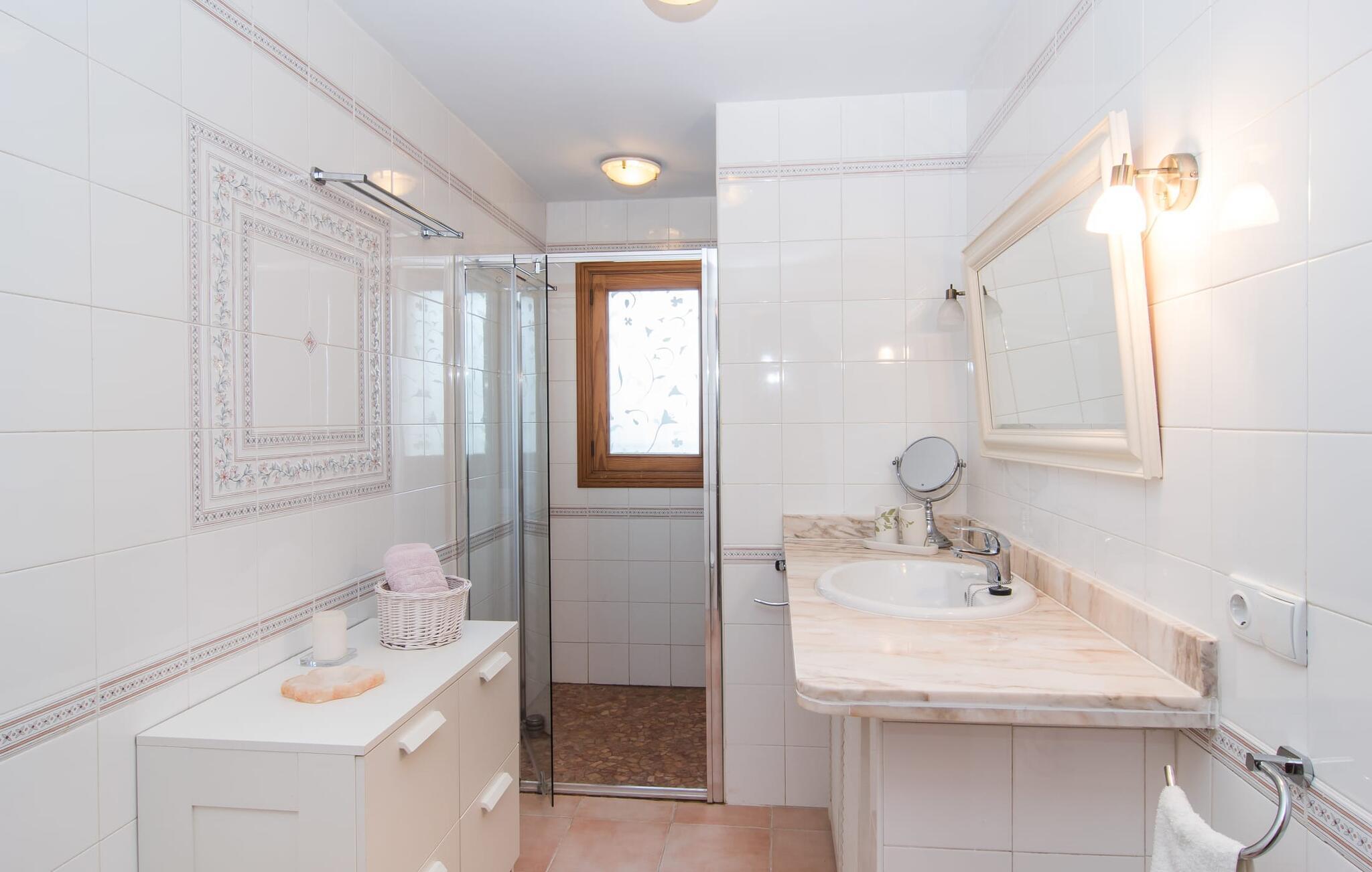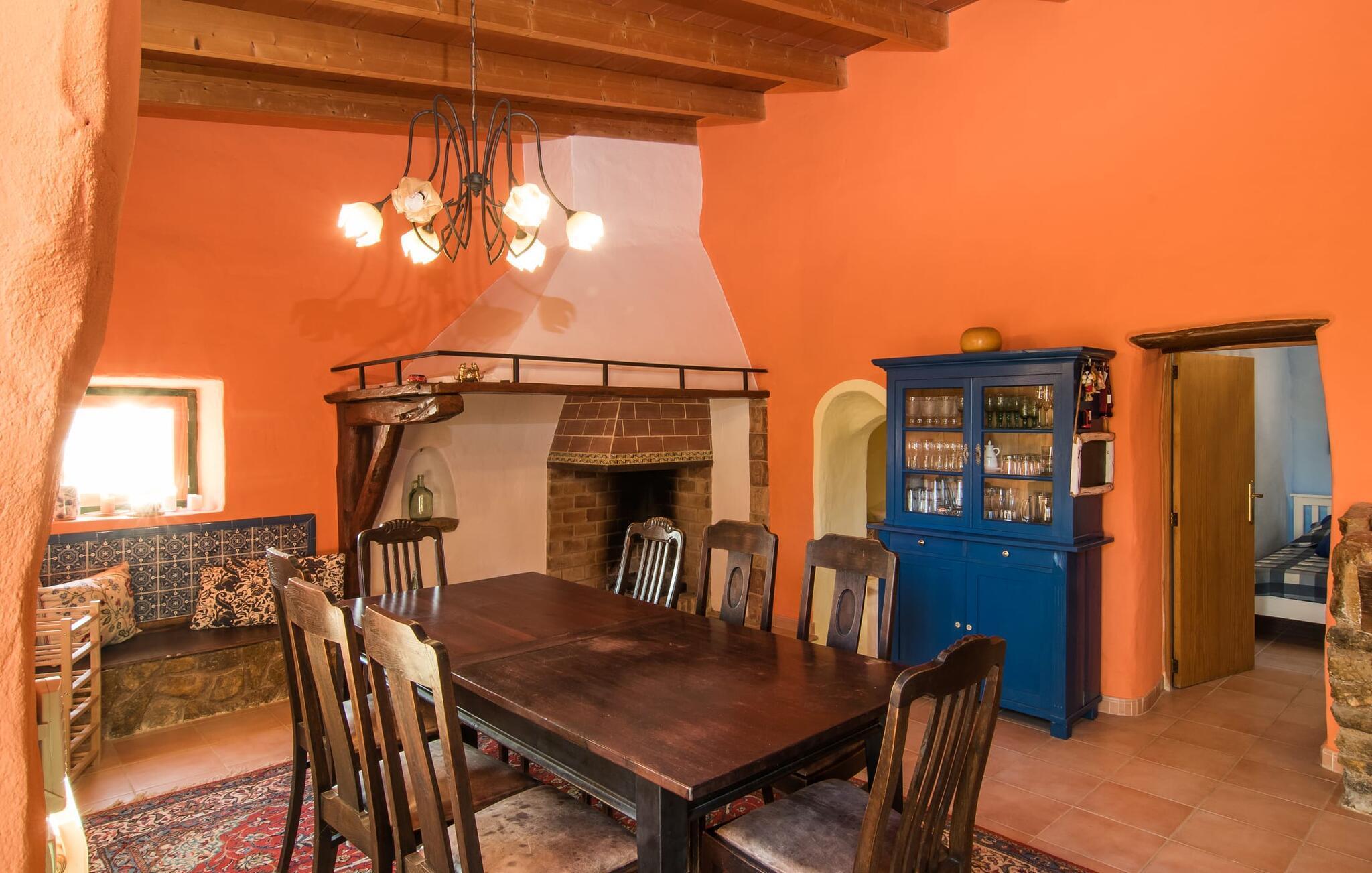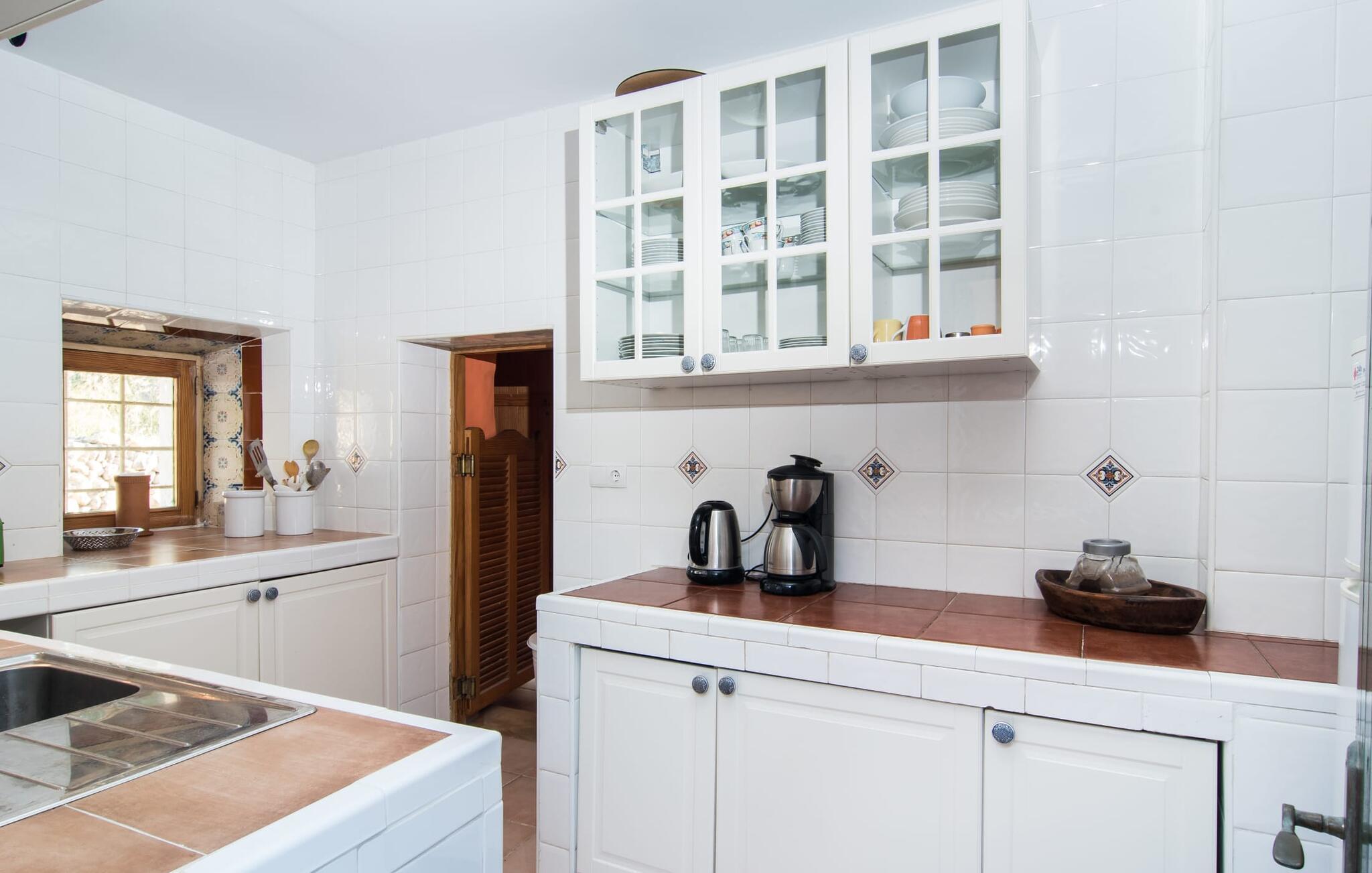 Varme, venlige farver dominerer det 180 m² store interiør; hele indretningen er omhyggeligt udvalgt for at sikre en hyggelig effekt. Opholdsstuen med sin store, komfortable sofa, fladskærms-tv og åbne pejs skaber en hyggelig atmosfære og lægger op til at slappe af hele året rundt. De jordfarvede kalkstensvægge og loftsbjælker skaber en hyggelig overgang fra ude til inde: De med god smag vil straks føle sig hjemme. Spisestuen har også en åben pejs; det store træbord giver jer rigelig siddeplads til seks personer. I det veludstyrede køkken med gaskomfur og ovn kan I virkelig forkæle jer selv med jeres kulinariske kreationer: Pa amb oli, arroz a la marinera, frito mallorquin... uanset om I laver typiske lokale opskrifter eller jeres egne kreationer, er det kun fantasien, der sætter grænser. Den hyggelige, rustikke stil i Villa "Sa Cabana Ampola" fortsætter i de tre soveværelser, hvoraf to har dobbeltsenge (180 x 200 cm). Hvert værelse har sin egen charme; søde drømme er garanteret! De to lyse badeværelser har store håndvaske og spejle samt bruseniche. Hvad mere kan man ønske sig?
