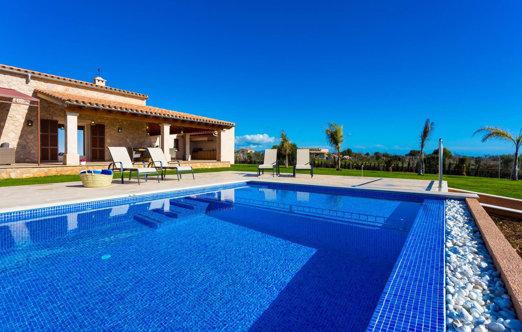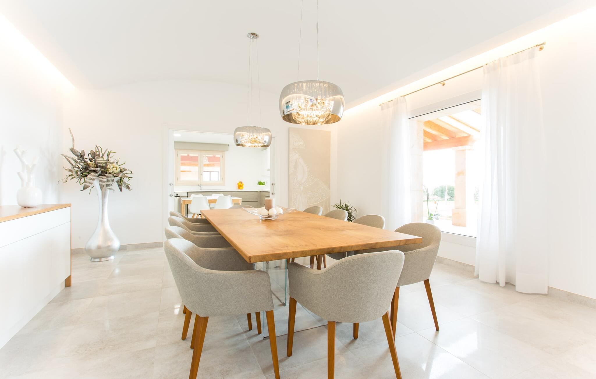 Tiltrækningen til denne ejendom er bevis nok på, at du ikke kun har høje standarder for komfort, men også en skarp følelse af ekstravagant æstetik, som få villaer kan matche så omfattende som denne. Derudover har denne ejendom en attraktiv beliggenhed nær havet og et rummeligt udeområde. Sidstnævnte passer perfekt til husets rum og terrassen og byder på mange muligheder for at hygge sig udendørs. Uanset om du slapper af på en af de moderne stole i loungeområdet eller nyder et måltid sammen ved det store træbord, vil du med garanti opleve den helt særlige Mallorca-følelse! Hvad kunne være hyggeligere end at sidde her om morgenen, byde den nye dag velkommen, nyde en aromatisk kop kaffe og se ud over den omkringliggende have? Varme sommerdage bliver forsødet af poolen, der hele er 12 m stor, flisebelagt med blå mosaiksten og nemt kan nås via trapper. Bekvemt er der et udendørs badeværelse, så du ikke behøver at gå rundt i huset med våde fødder. Den murede BBQ-grill inviterer til gastronomiske grillaftener, måske under Middelhavets stjernehimmel. Grillen integreret i udekøkkenet giver dig mulighed for ikke kun at have alle dine måltider udendørs om sommeren, men også at tilberede dem udendørs. Dette er et Fincallorca feriehus. Flere massive dobbeltdøre sikrer god ventilation af huset selv i de varme sommermåneder. Samtidig er det meget lyst, hvilket forstærkes yderligere af de hvide vægge, de stilrene møbler og de elegant matchende gulvfliser. Stuen/spisestuen er helt åben, hvilket især fremhæver interiørets yndefulde elegance. Alle møbeldetaljer passer perfekt ind i husets retlinede indretning - såsom den store pejs, de smagfulde lamper og de nøje udvalgte kunstgenstande på væggene. Køkkenet, som kan adskilles eller åbnes med skydedør, er fuldt udstyret og har et enkelt, enkelt udseende. Villaen har i alt fire rummelige og elegant indrettede dobbeltværelser og fire meget stilfulde badeværelser (hvoraf tre er en-suite). Uden mange dikkedarer imponerer disse soveværelser med deres klarhed og lyse farver, smart kombineret med behageligt kontrasterende farvestænk hist og her. Husets tekniske udstyr er imponerende: udover et stort fladskærms-tv, iPod-dockingstation, cd-stereoanlæg, aircondition og DSL-internet afrunder dygtigt den all-round ubekymrede pakke. Villaen "Sa Carrotja Nova" imponerer sine kræsne gæster med et rummeligt udendørsområde, en meget stilfuld atmosfære og nærheden til kysten og Porto Cristo. I havnebyen kan du gøre dine indkøb, hvilket virkelig er det værd om søndagen på det farverige bondemarked på Passeig de la Sirena. Nogle få strande, den såkaldte Calas de Mallorca, er meget tæt på: for eksempel Cala Petita, en afsidesliggende naturstrand. Bemærk venligst, at denne ejendom ikke accepterer ungdomsgrupper eller polterabender. En ungdomsgruppe på denne ejendom består af personer under 30 år. Book ikke denne ejendom, hvis du er en ungdomsgruppe eller polterabend, da din reservation vil blive afvist, når den er booket, hvilket også kan være tilfældet ved ankomst til ejendommen eller under dit ophold, og du vil ikke modtage en refusion