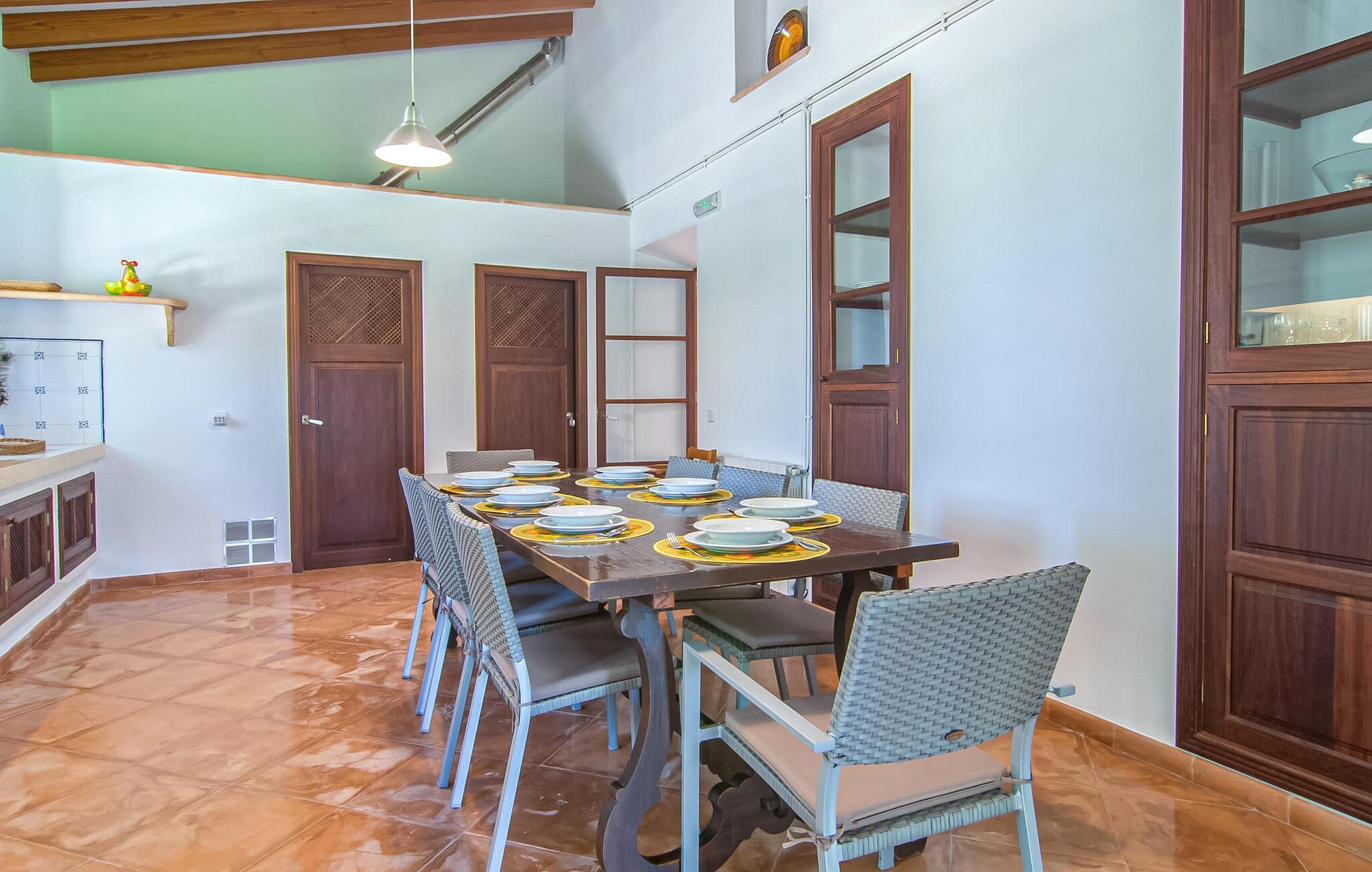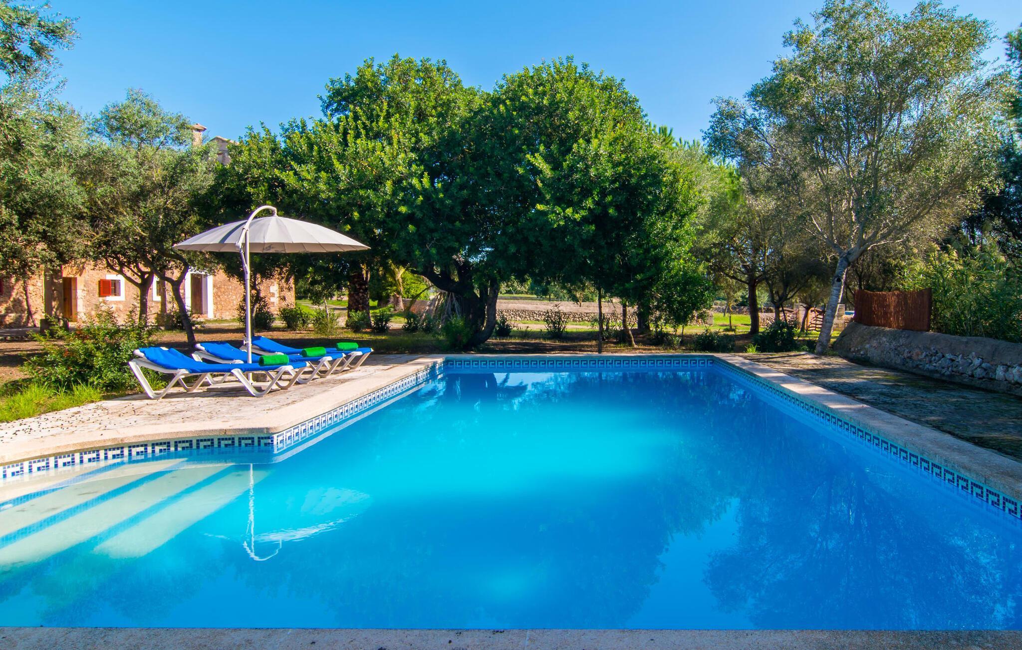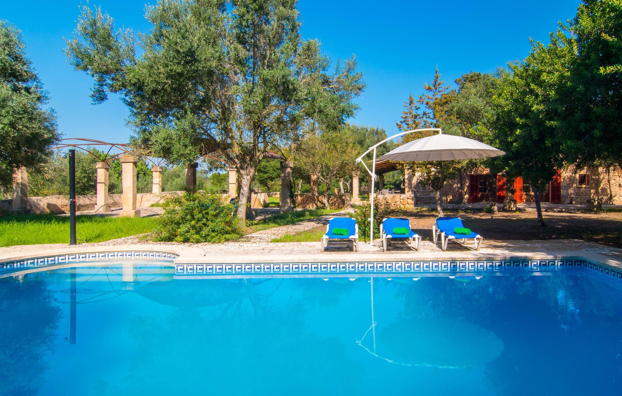 Den melodiske "Ca Carrotja Vella" hentyder til dens karakter med sit navn - et tidligere bondehus på en imponerende, enorm 180.000 m² stor ejendom. Landstedet byder sine besøgende og gæster hjerteligt velkommen, indlejret i det uforlignelige smukke landskab på den østlige del af øen, simpelthen perfekt til vandreture. Inden vi udforsker det omkringliggende område, tager vi dig med på en lille opdagelsestur i eventyrhuset inde og ude. Haven med sine gamle træer af oliven- og johannesbrødtræer, imponerende græsplæner, små stier og naturstensvægge fremstår helt naturlig og passer problemfrit ind i den tilsyneladende uendelige natur vidt omkring. Det kunne næsten ikke tilbyde mere privatliv. Du vil helt sikkert føle dig tryg ved at slappe af ved den serpentinmosaikbeklædte pool. Helt ubemærket kan du tage en forfriskende svømmetur, slappe af på en af de komfortable liggestole eller endelig forkæle dig med en god bog på det hemmelige sted i skyggen under forteltet. Føler du dig lidt sulten, skal du blot tænde grillen lige ved siden af den overdækkede udendørs terrasse, hvor der er to tilstrækkeligt store spisepladser med trendy polyrattanmøbler - det perfekte sted at spise sammen på alle tidspunkter af dagen. Dette er et Fincallorca feriehus. Det statelige brostensbelagte murværk og vindmølletårnet fortæller en historie, der spænder over 100 år. Det er så meget desto mere imponerende, at ejeren har formået at bevare og endda forstærke det historiske aspekt af ejendommen gennem udsøgte møbler i rustik-moderne stil. Hvad ville det være uden en stor stue-spisestue med en hyggelig pejs, der sikrer maksimal komfort? Takket være de mange døre til terrassen fremstår indretningen ikke kun særligt lyst og indbydende, men giver dig også mulighed for nemt at skifte mellem ude og inde. Dette er også særligt praktisk for selvforplejning, da det smukke åbne køkken med langbord fører direkte ud på terrassen. Murstensskabe med trædøre, blå og hvide keramiske fliser på væggene og terracotta farvede fliser på gulvet tilføjer et strejf af tradition til dette ekstremt moderne køkken. Antikke møbler kombineret med moderne kunst, fritlagte brosten og tagbjælker af træ bidrager til hjemmets intime og trygge fornemmelse, når man er vært for hele familien. Det gælder også de fem rummelige soveværelser, der er fordelt på to etager, mens det runde tårnværelse emmer af en helt særlig atmosfære. De fire individuelt designede badeværelser er en kærkommen tilføjelse til det høje komfortniveau, der afspejles i hele huset uden at være påtrængende. Med charme og en følelse af enkelhed tilbyder "Sa Carrotja Vella" en utrolig varm atmosfære, hvor man simpelthen kan føle sig godt tilpas og godt tilpas. Med denne følelse af tryghed kan du frit begive dig ud på en opdagelsesrejse. De lokale i Porto Cristo er stolte af deres lille by, hvis navn går tilbage til det 13. århundrede. Og sådan skal det være, for det charmerende feriested har bevaret sin unikke charme som lille fisker- og havneby. En flåde af fiskerfartøjer er yderligere bevis på feriestedets fortid, mens den moderne lystbådehavn afspejler dens klasse. I dag ligger restauranter i verdensklasse langs promenaden med udsigt over stranden, som flyder problemfrit ud i havnen. Selv mere ensomme strande er fristende på østkysten, "Calas de Mallorca". Takket være den centrale beliggenhed nær den delvist hørbare motorvej kan du hurtigt og nemt nå frem til din destination. Du bør bestemt ikke gå glip af det naturlige vidunder ved de underjordiske grotter, Coves de Drac. Livlige byer som Manacor, smukke strande med turkisblåt vand, bølgende grønne bakker og masser af natur – det er mangfoldigheden, der gør Mallorca til den ø, den er. Du kan se frem til alt dette og en afslappende tid med venner og familie under dit ophold på "Sa Corrotja Vella". Den historiske villaejendom "Sa Carrotja Vella" har en imponerende stor ejendom og have i vidunderlige landlige omgivelser. Samtidig ligger det også lige uden for den populære kystby Porto Cristo. Gå en tur langs anløbsbroen, gå ind på en venlig restaurant med udsigt over havnen eller nyd det livlige ugentlige marked, mens du gør dine indkøb. Udover den velholdte sandstrand er der andre naturlige bugter i umiddelbar nærhed, hvoraf nogle er helt uberørte.
